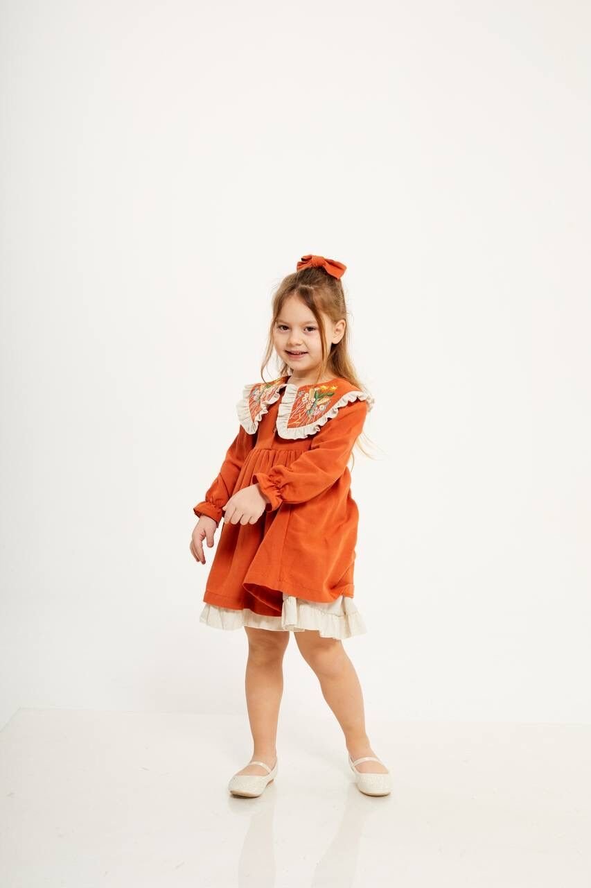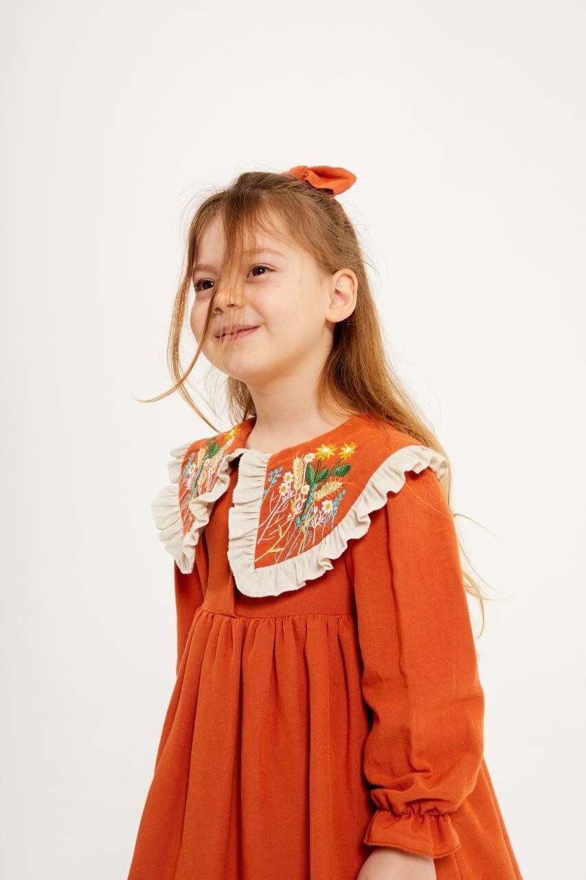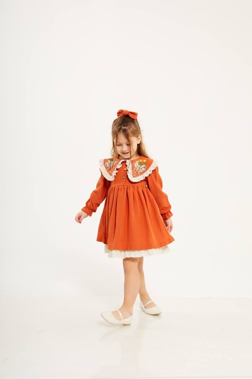 Alaçatı Nakış İşlemeli Elbise - Kiremit (toka hediyelidir)
