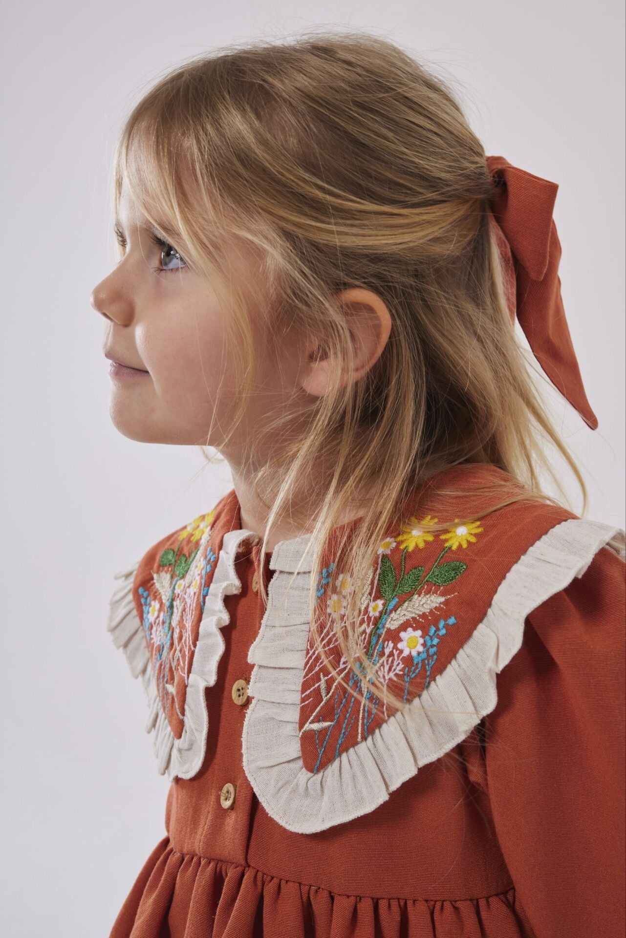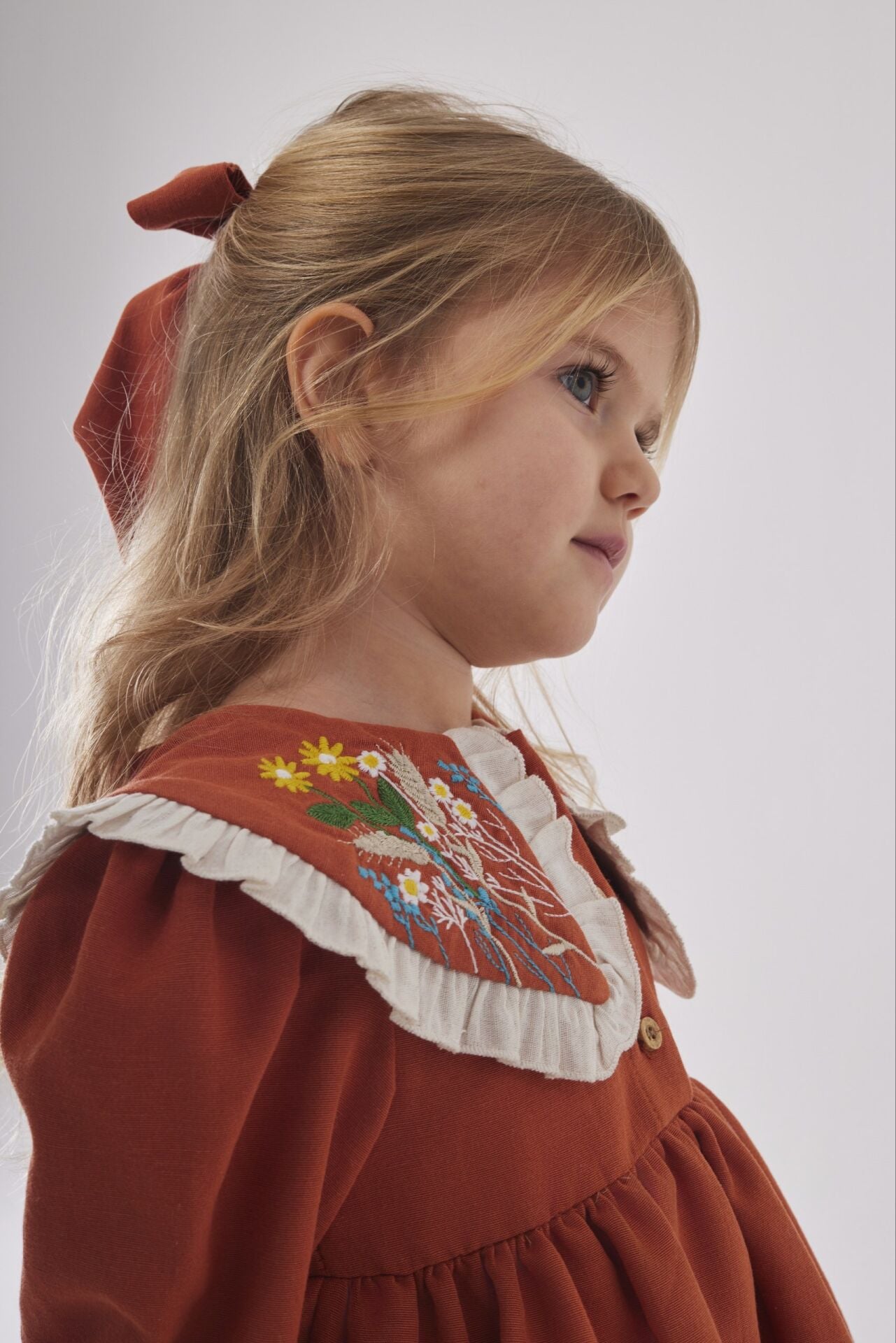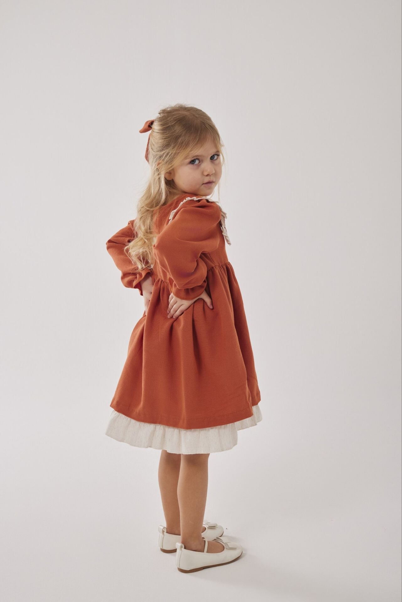 Asar Kids Alaçatı Yaka Nakış Elbise - Turuncu
