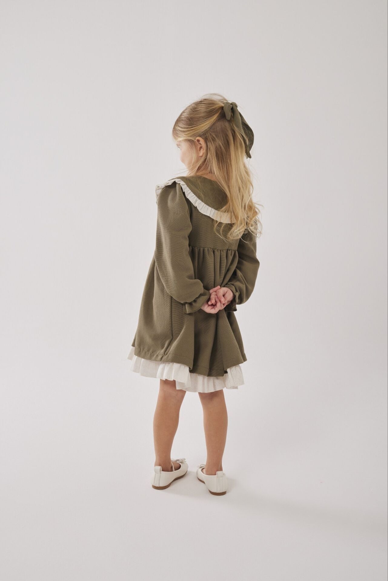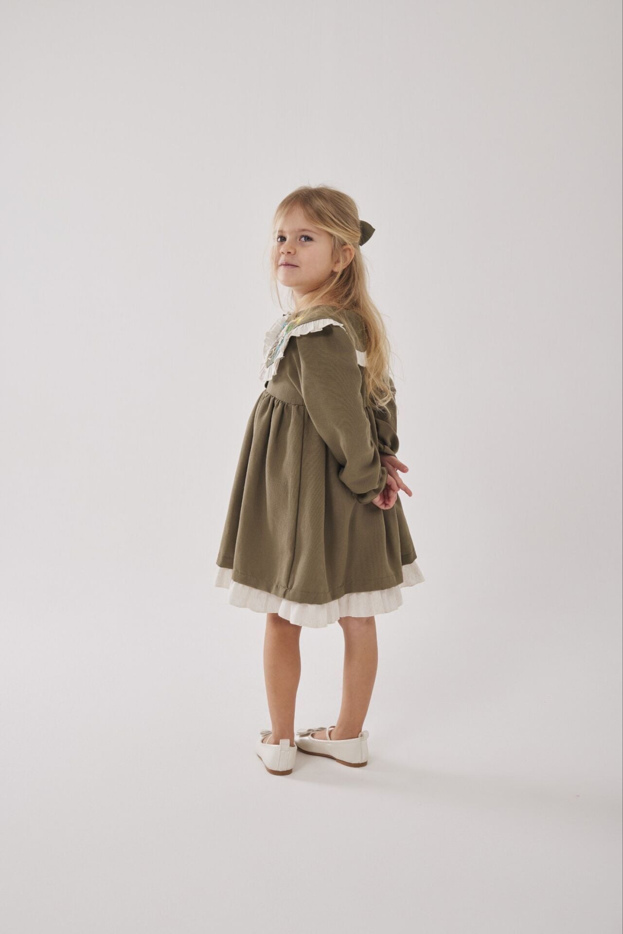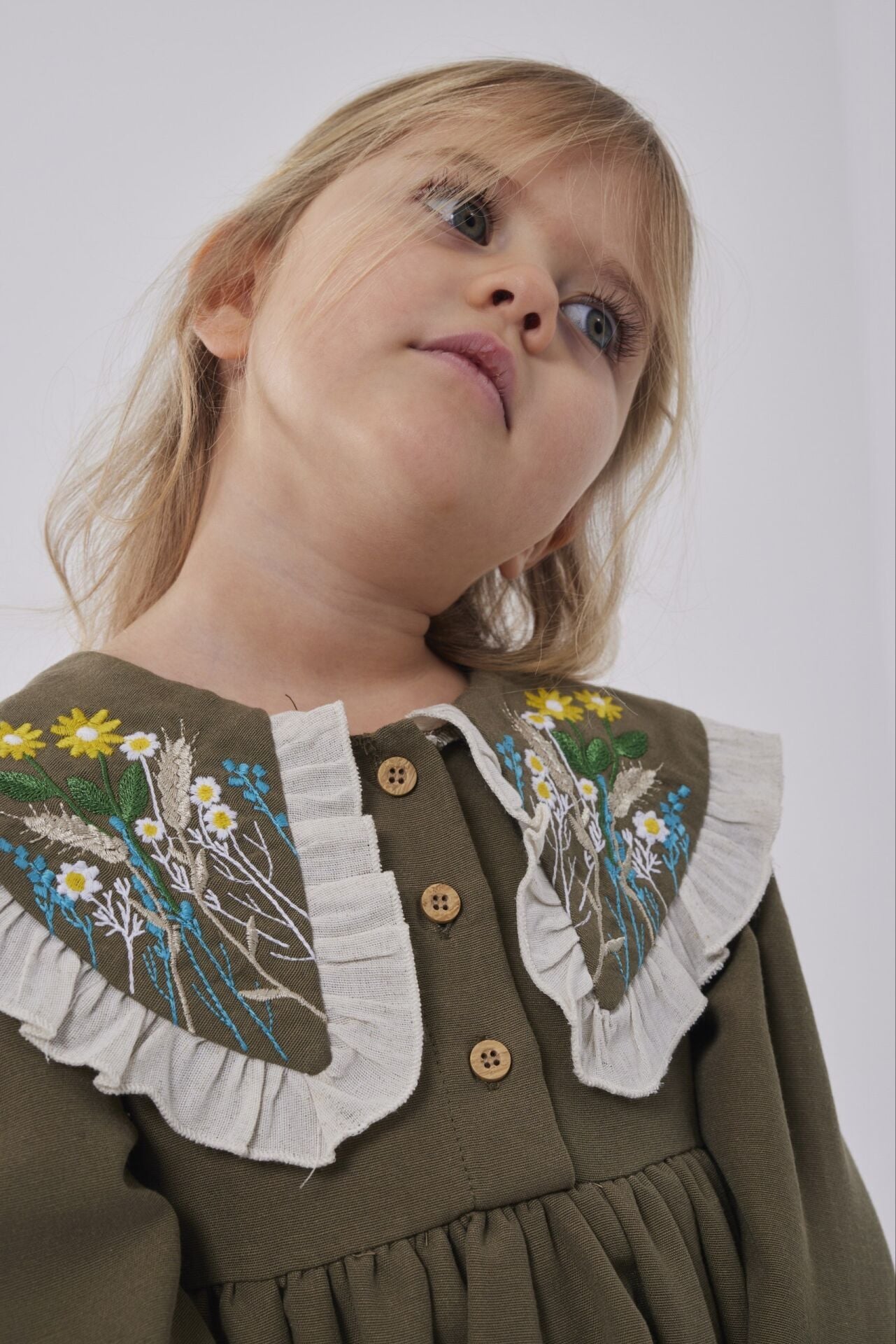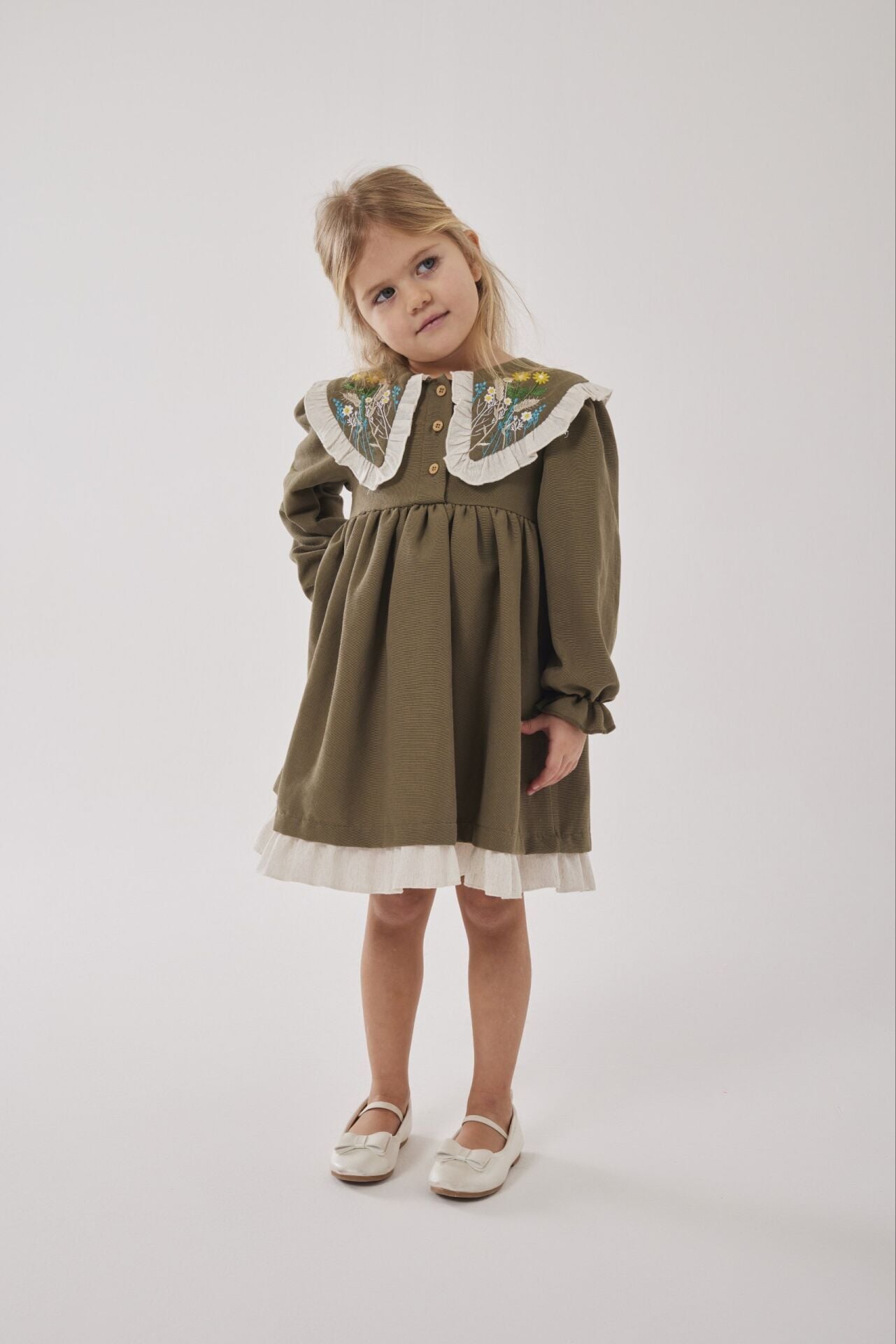 Asar Kids Alaçatı Yaka Nakış Elbise - Yeşil