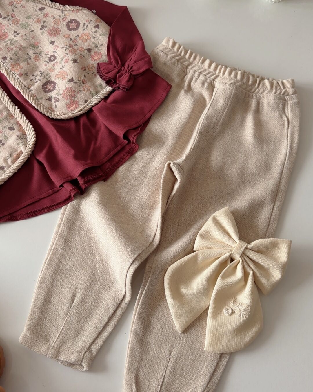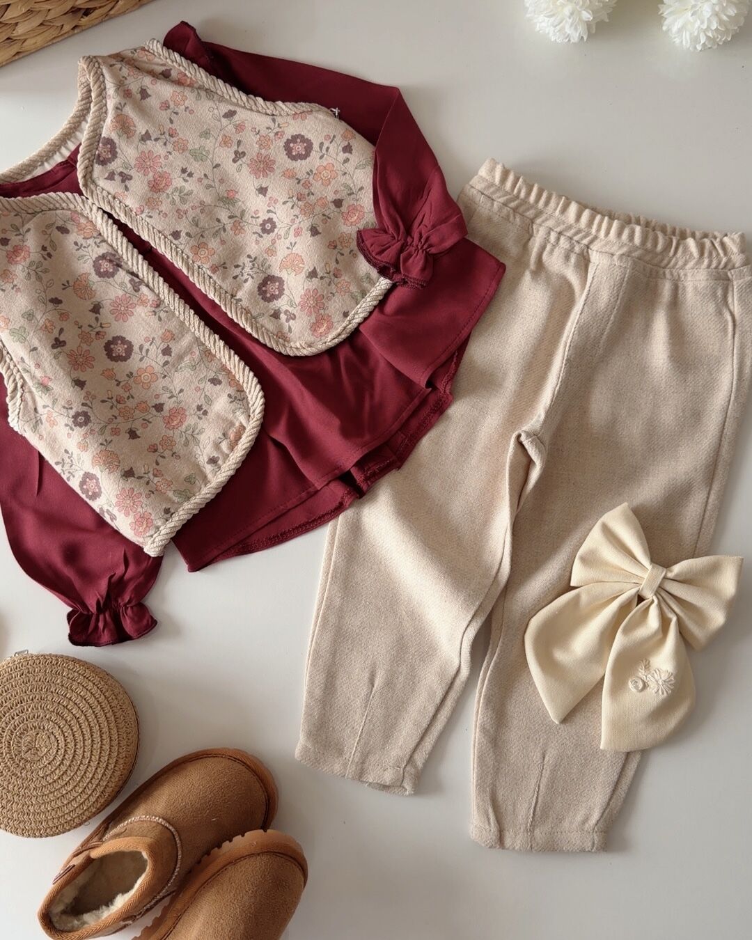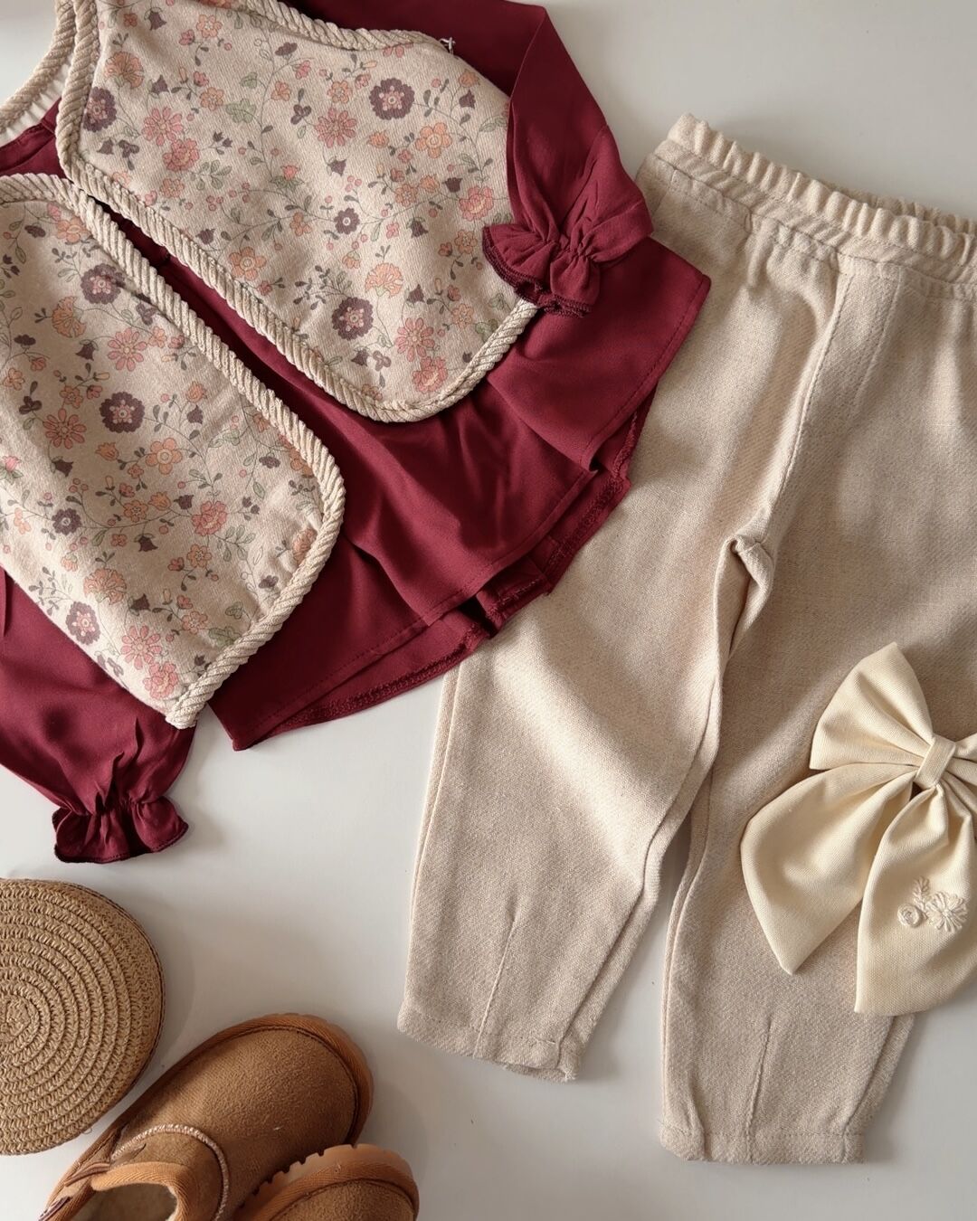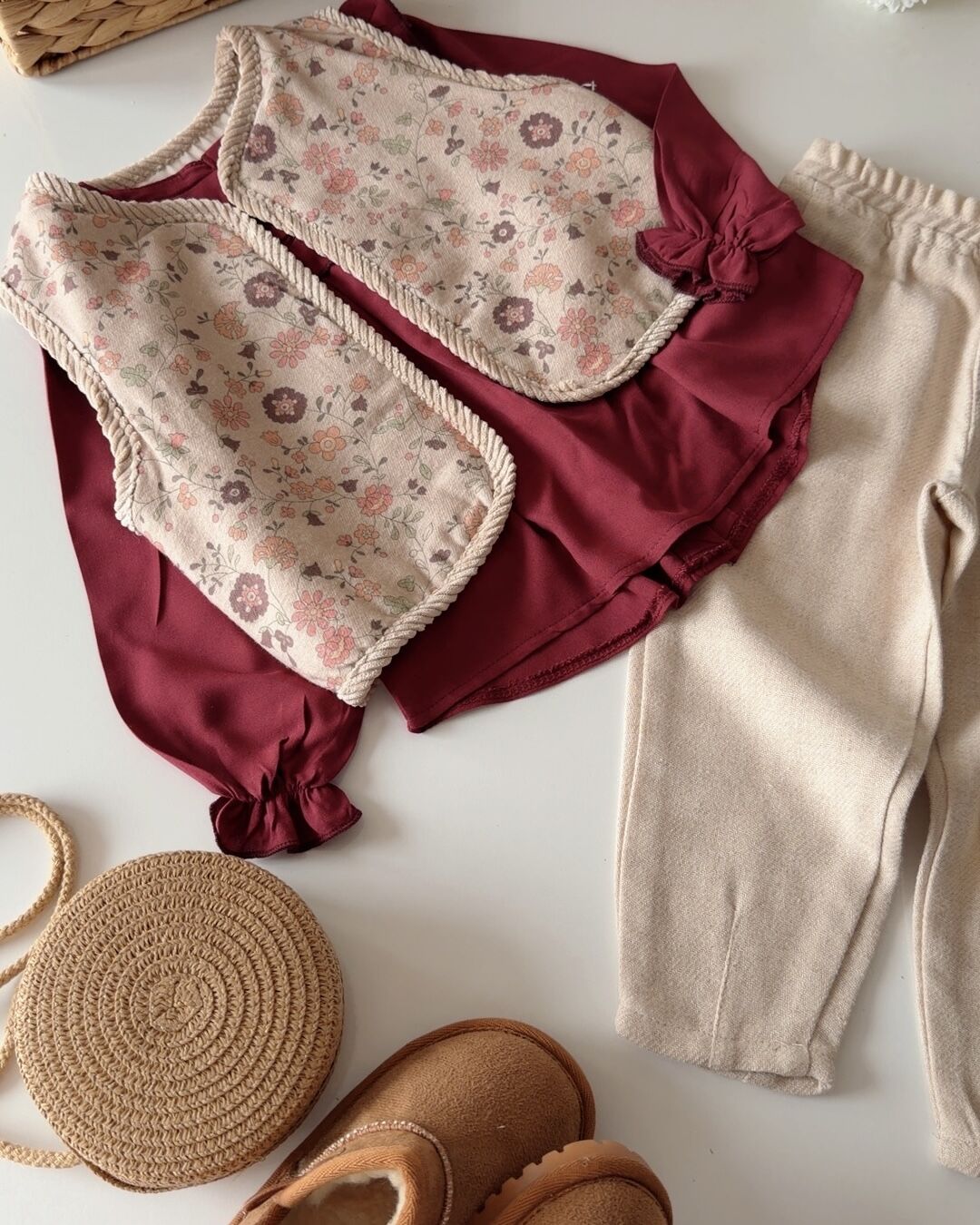 Asar Kids Etnik Desen Yelekli 3'lü Takım - Bordo