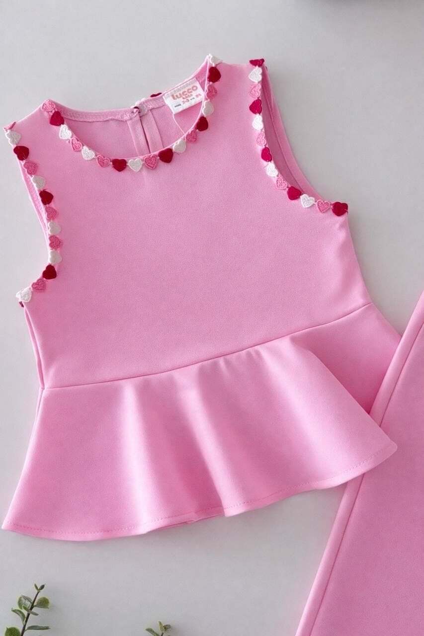 Asar Kids Kalp Nakışlı 2'li Takım - Pembe