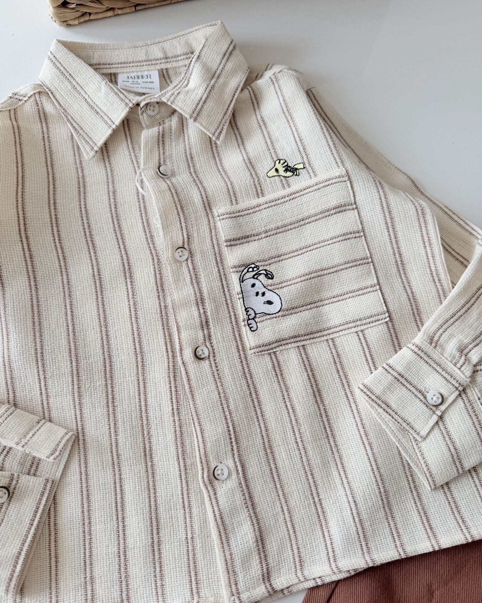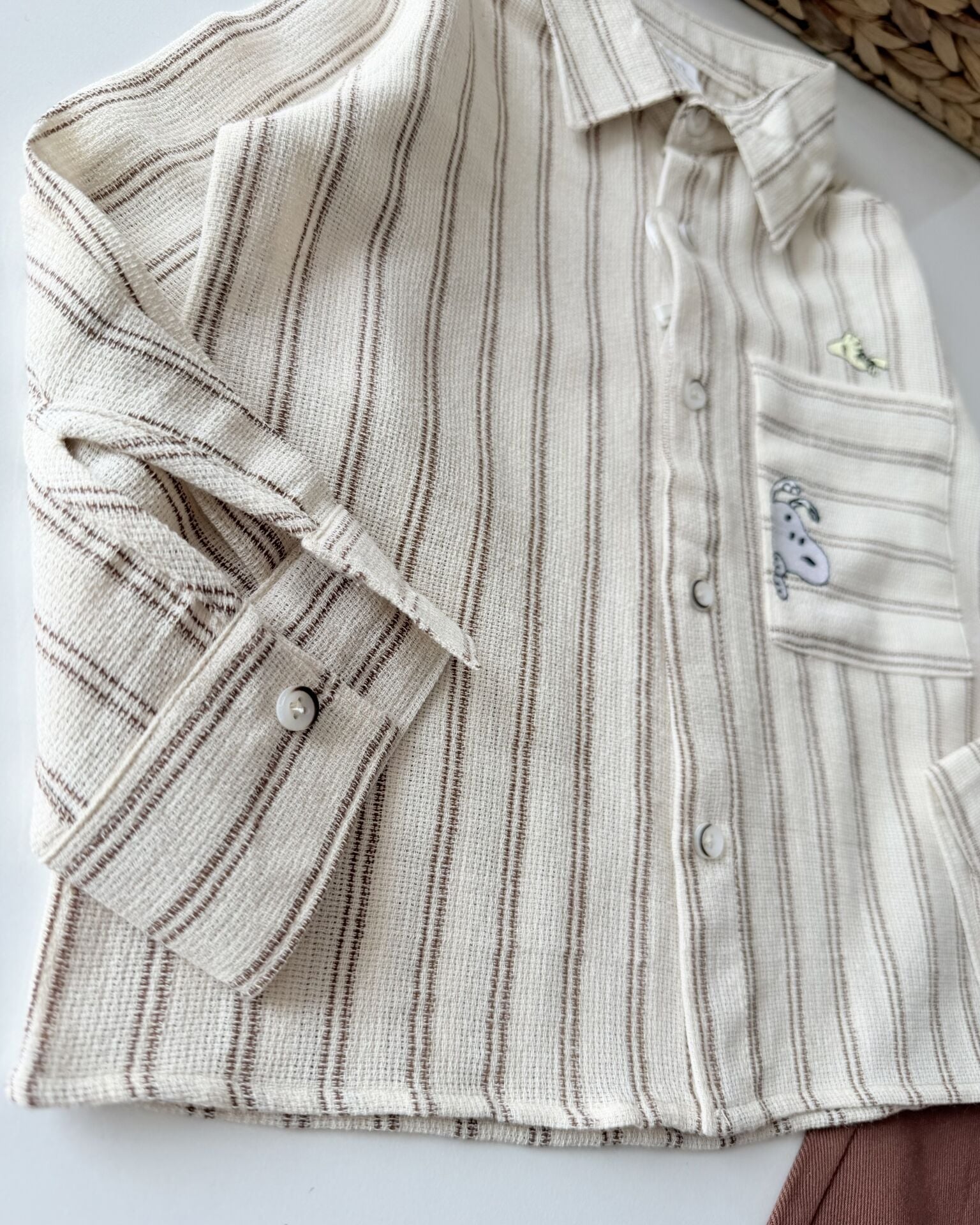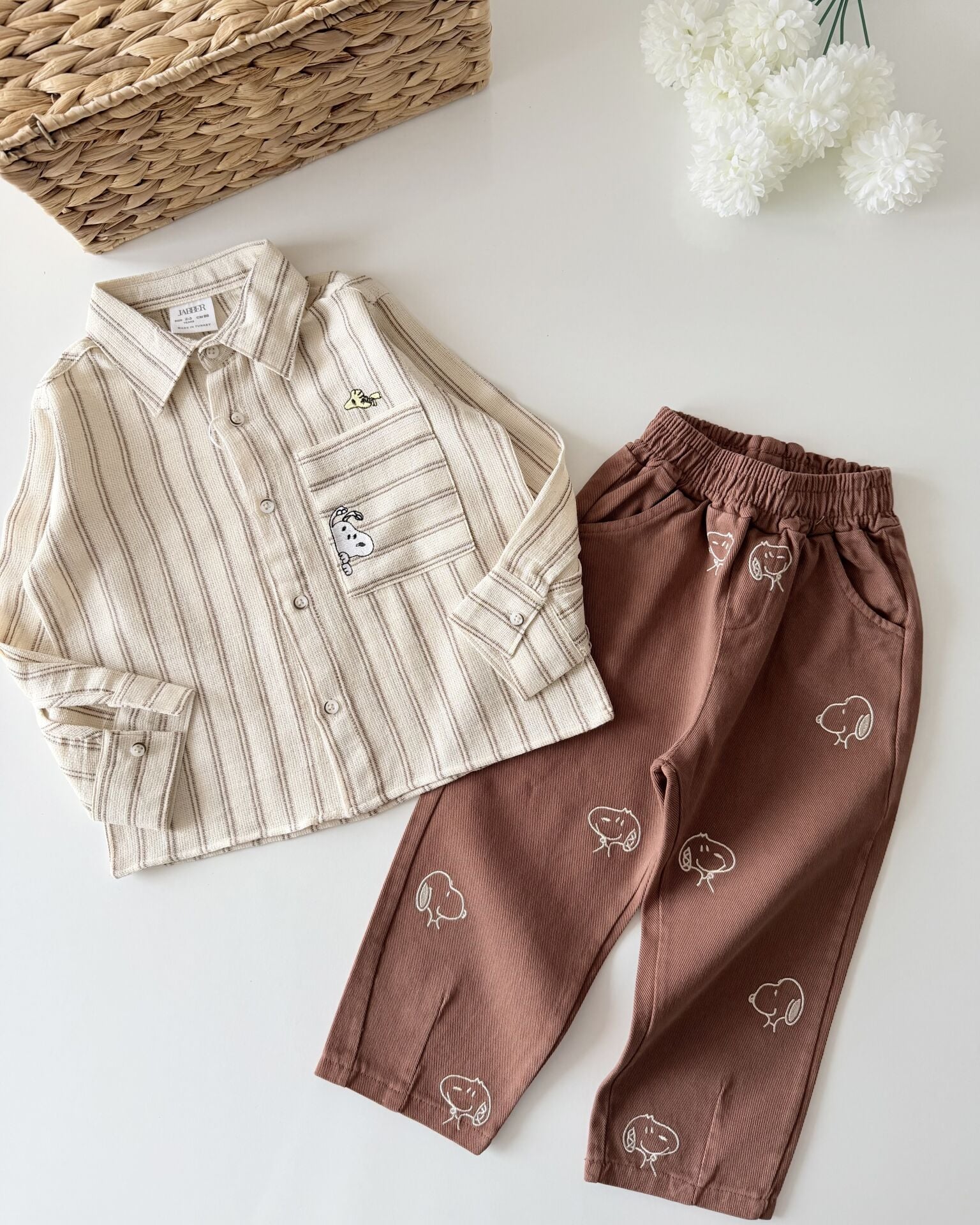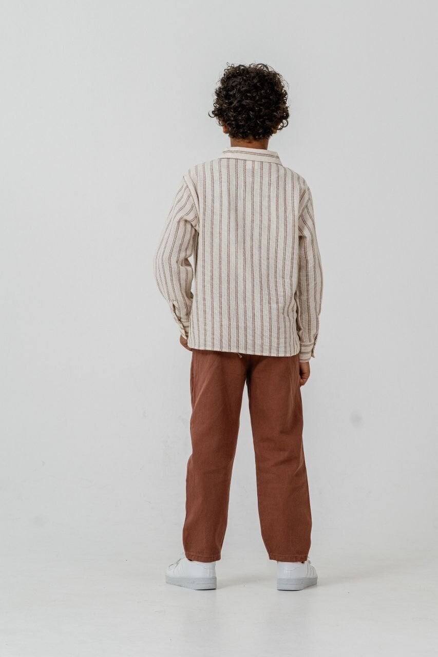Asar Kids Karakter Baskılı Gömlek Pantolon Takım - Kahve Çizgili