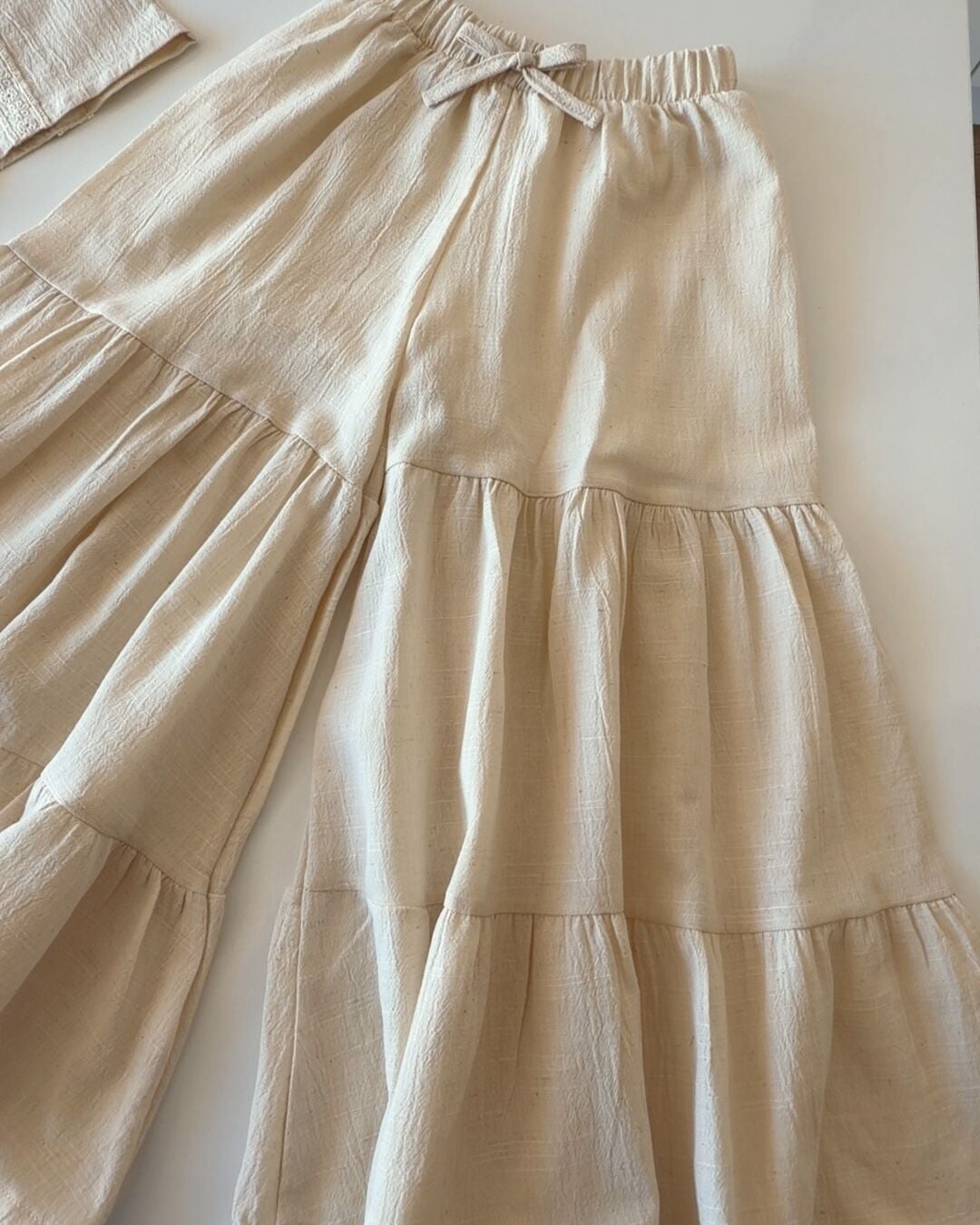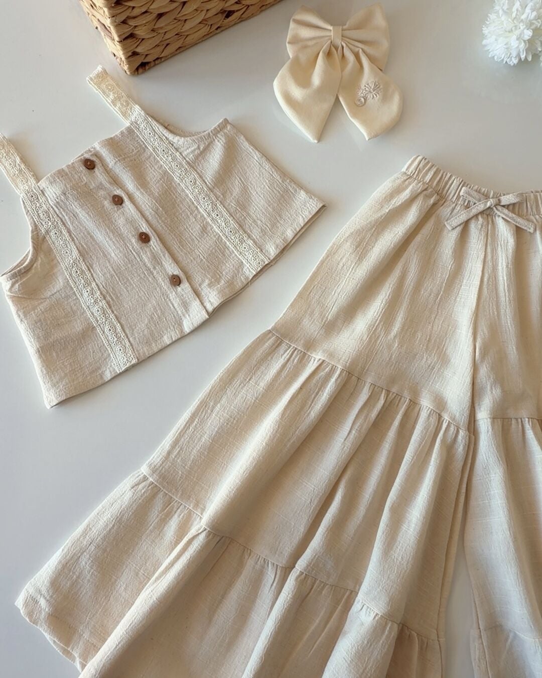 Asar Kids Keten Bol Paça Pantolonlu Askılı 2'li Takım - Krem