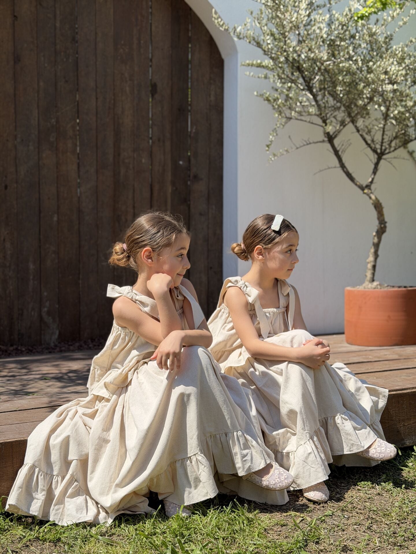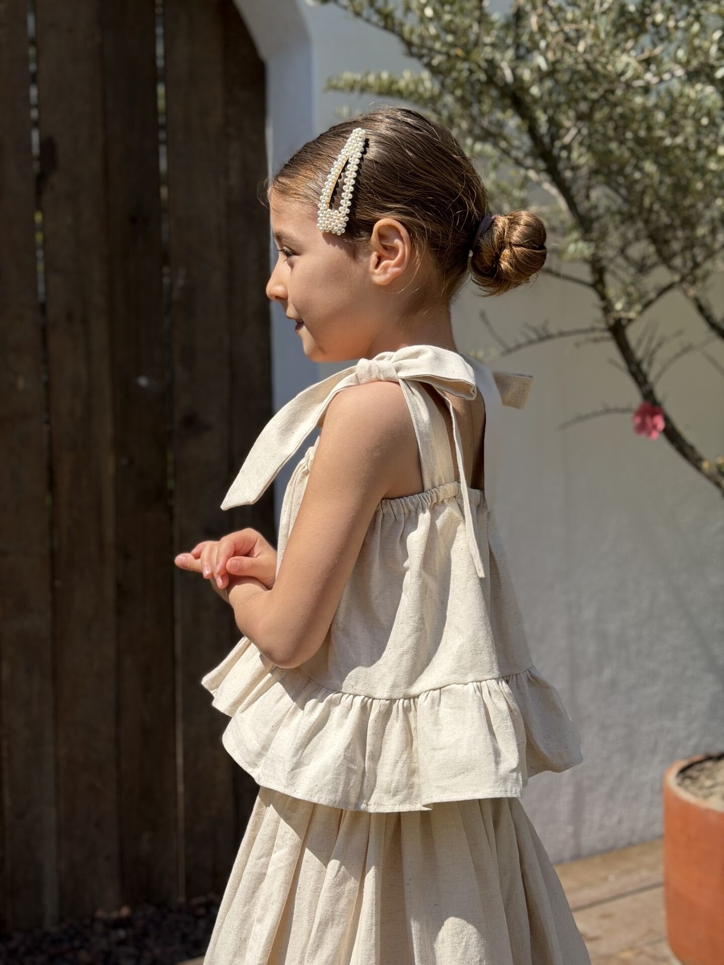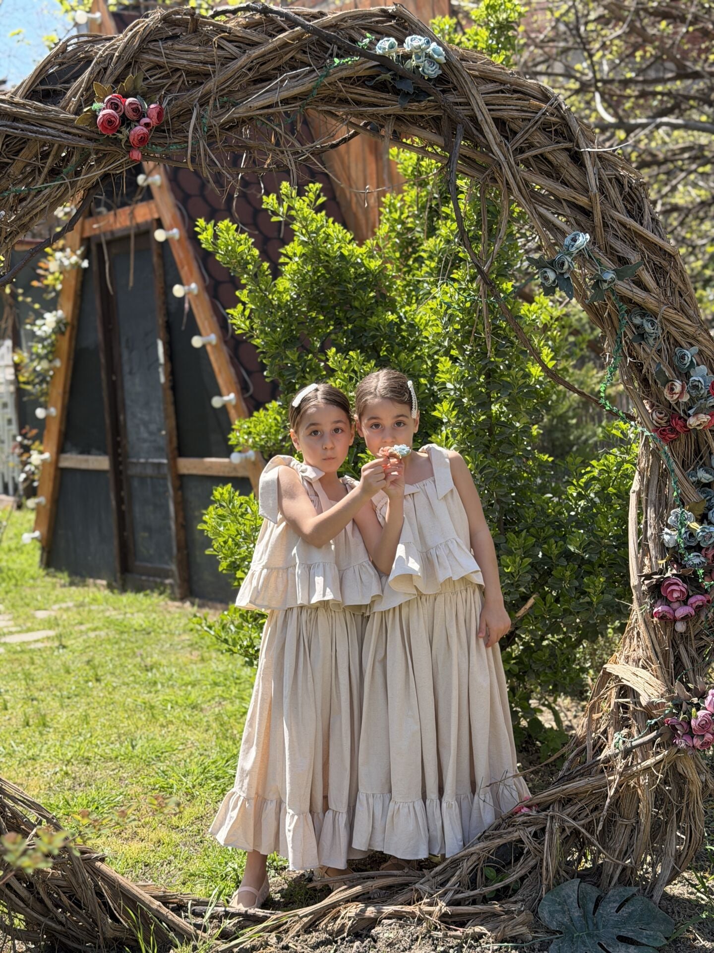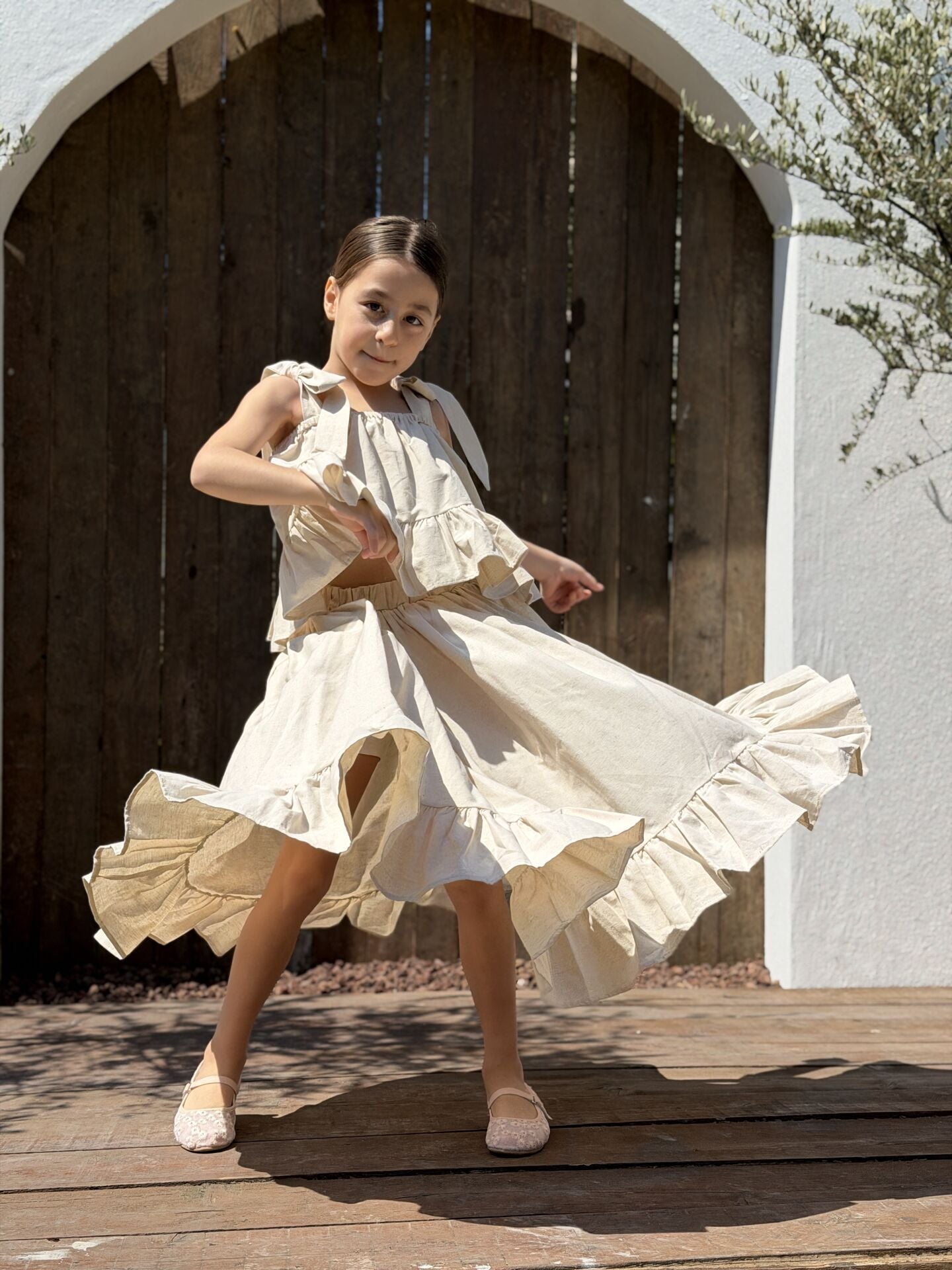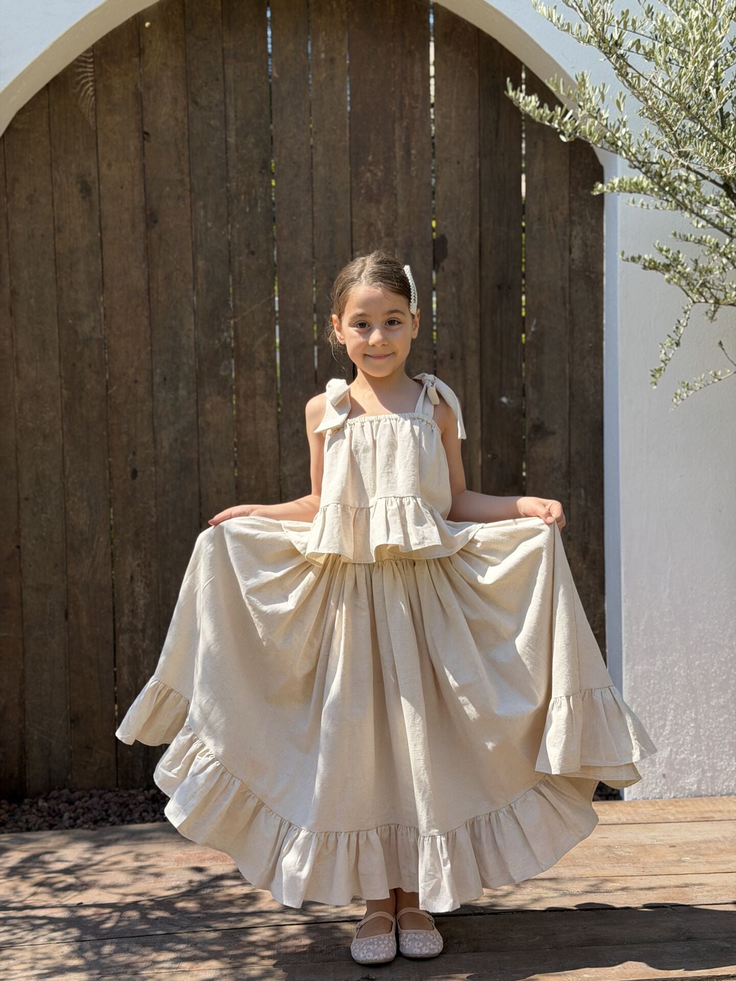 Asar Kids Keten Uzun Etekli 2'li Takım - Bej