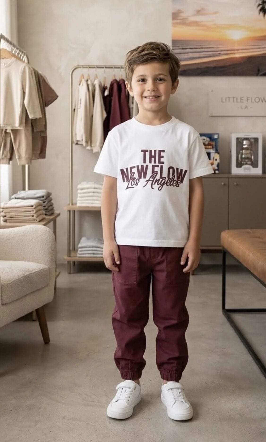 Asar Kids Los Angeles Sloganlı Eşofman Takımı - Beyaz Bordo