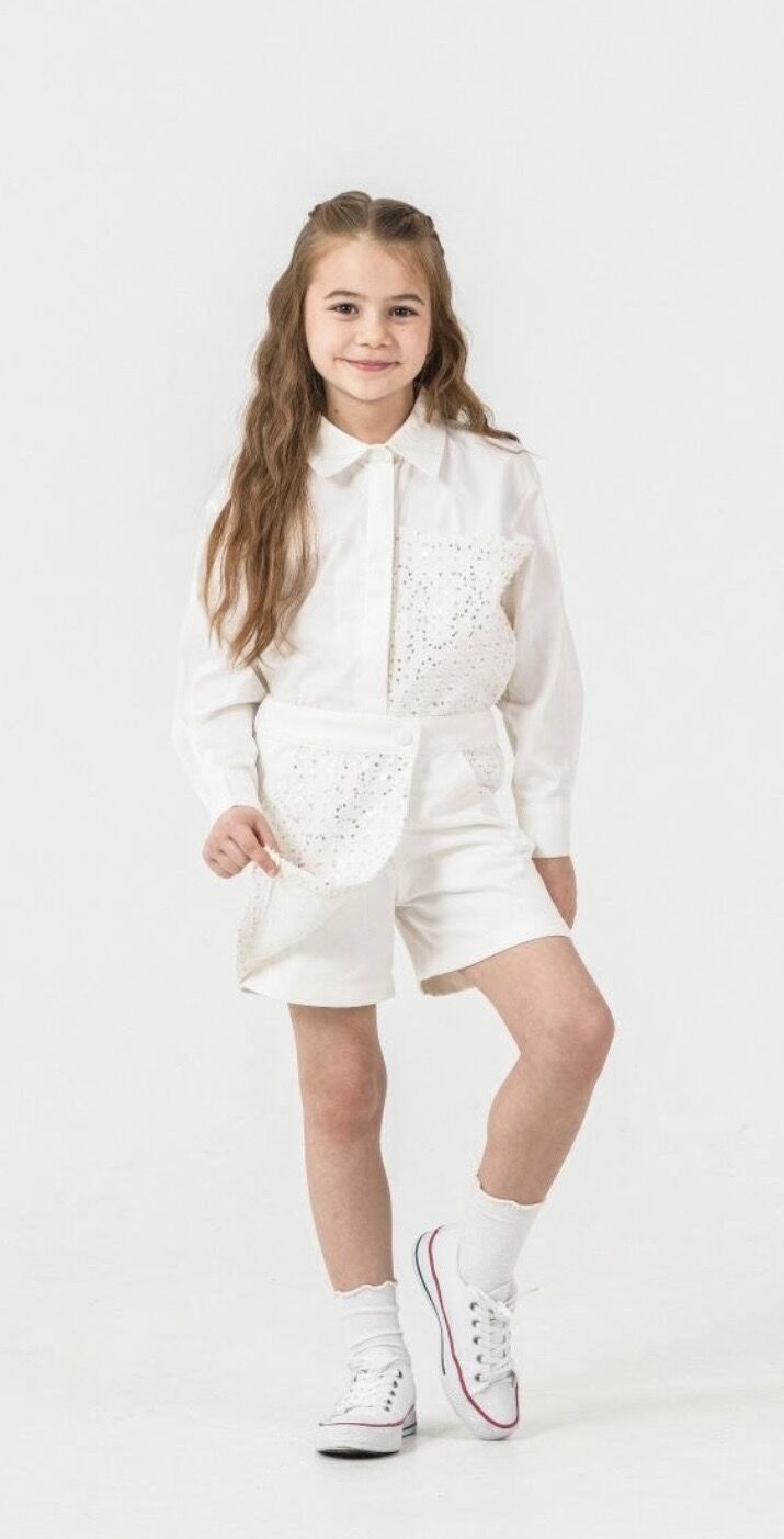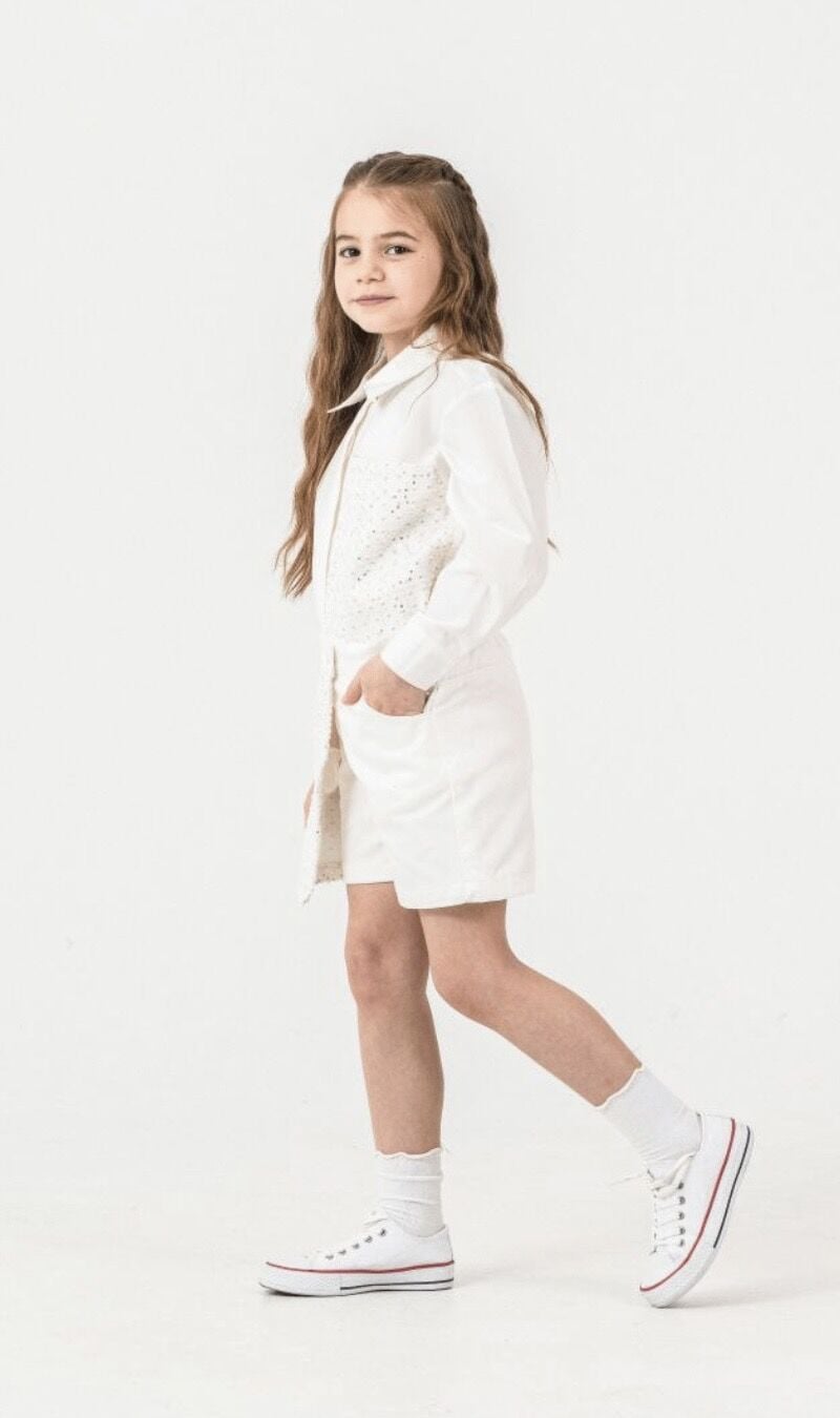 Asar Kids Pul Baskılı Gömlek ve Şort Etek - Beyaz Gümüş