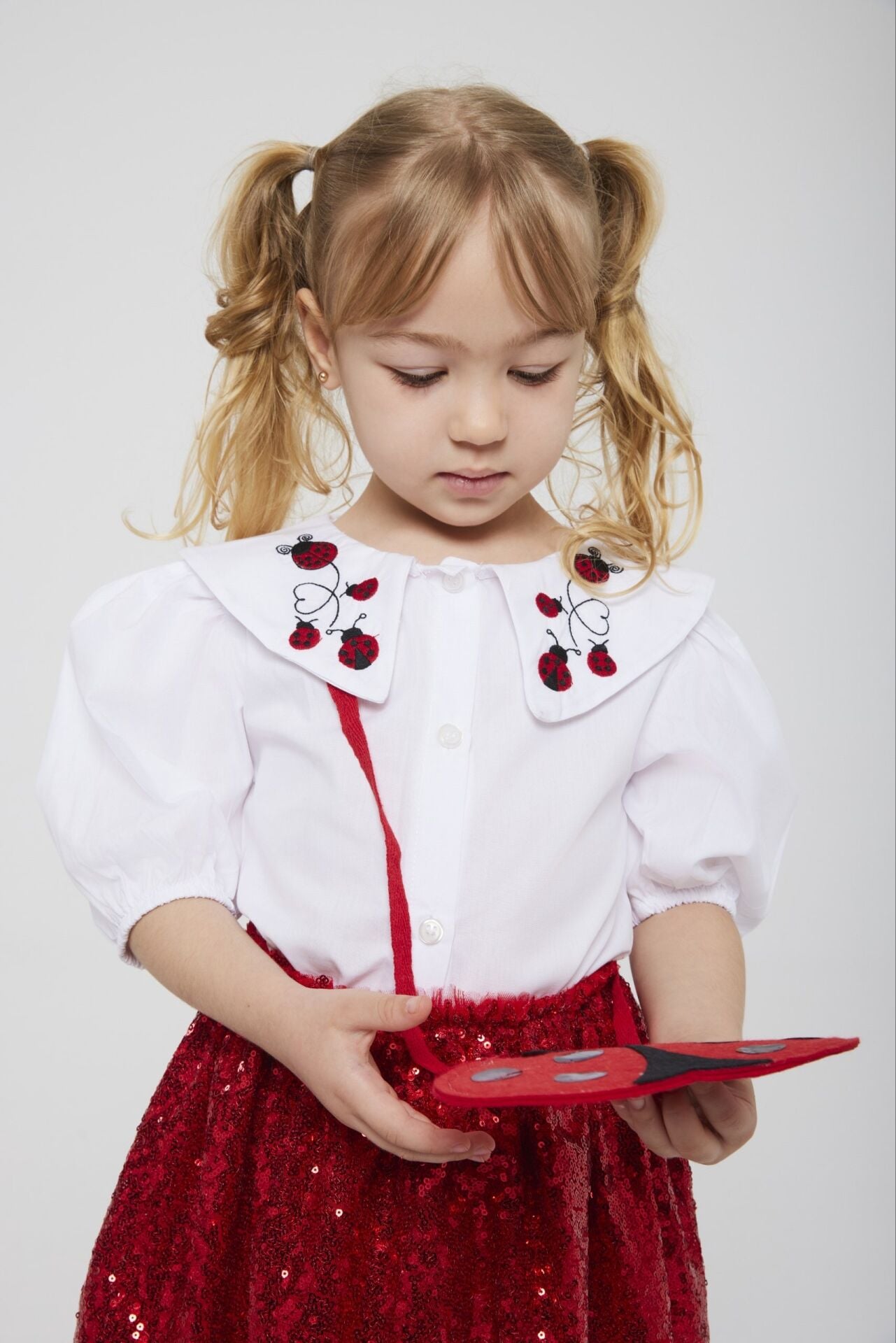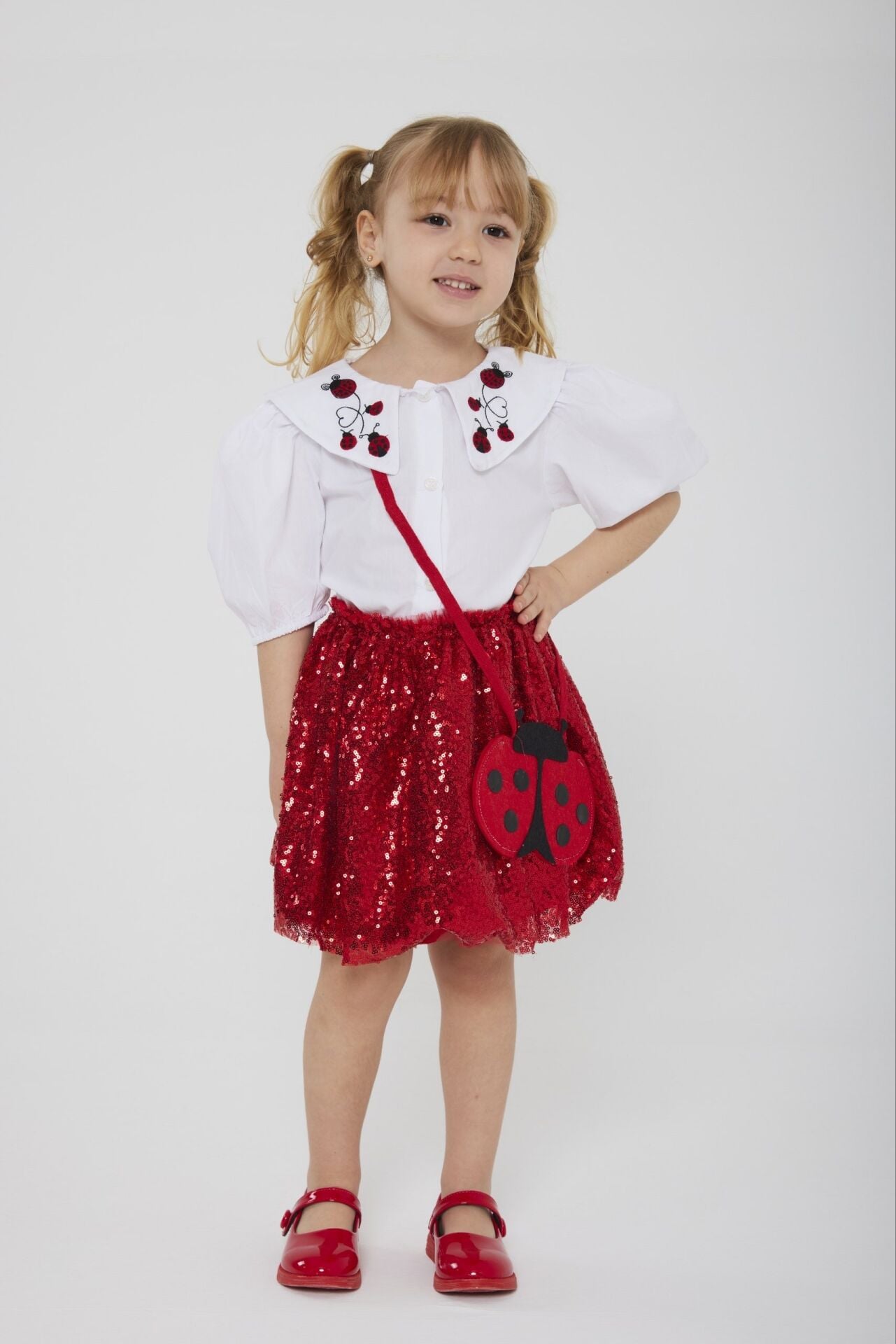 Asar Kids Pul Payet Uğur Böceği Nakışlı 2'li Takım - Kırmızı Beyaz