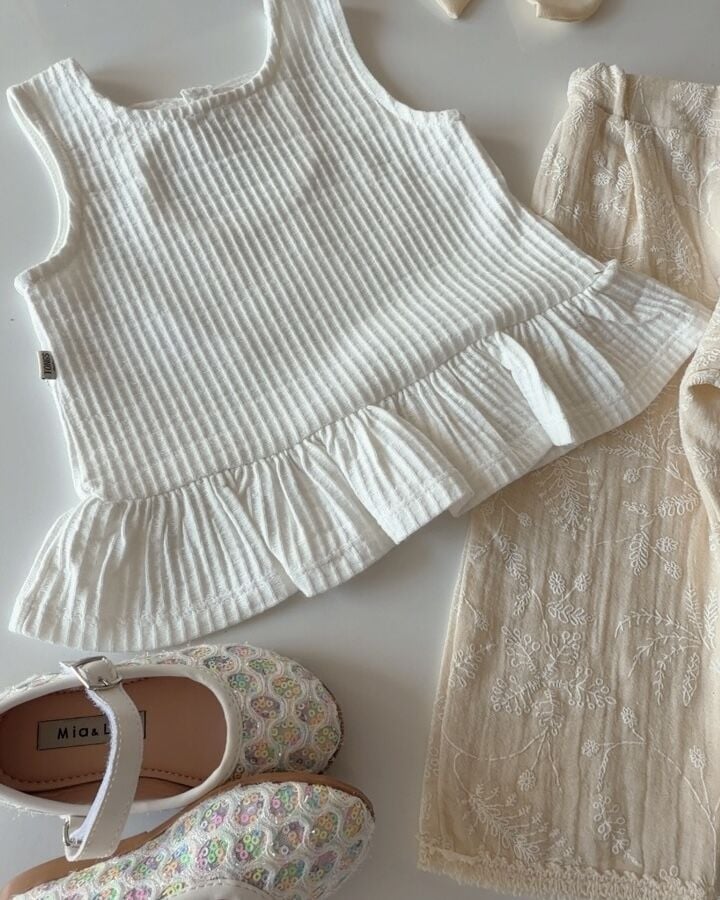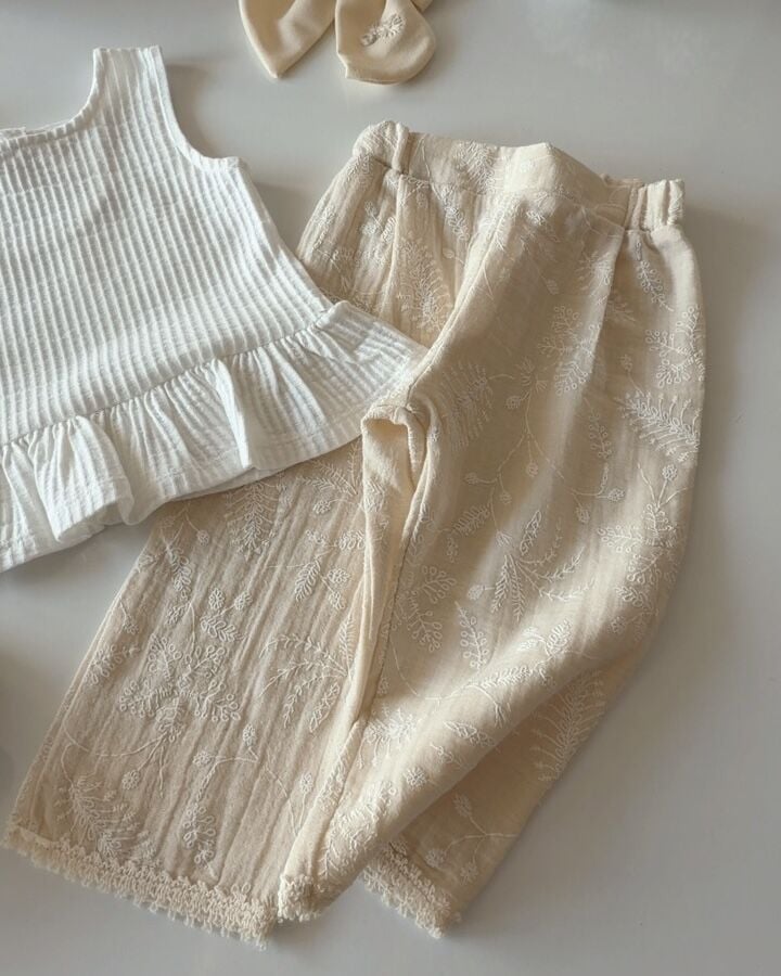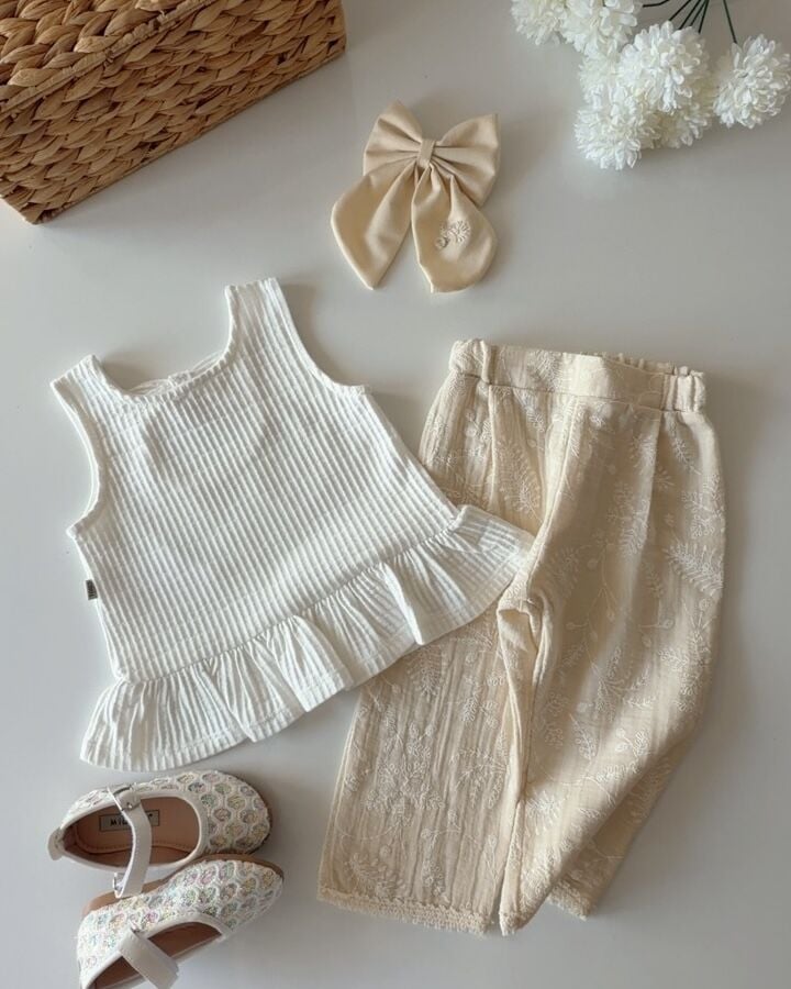 Asarkids Brode Nakışlı 2'li Takım - Beyaz Krem