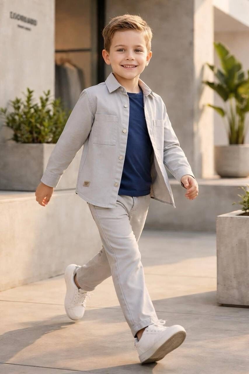 Asarkids Ceket ve Pantolon 3'lü Set - Gri
