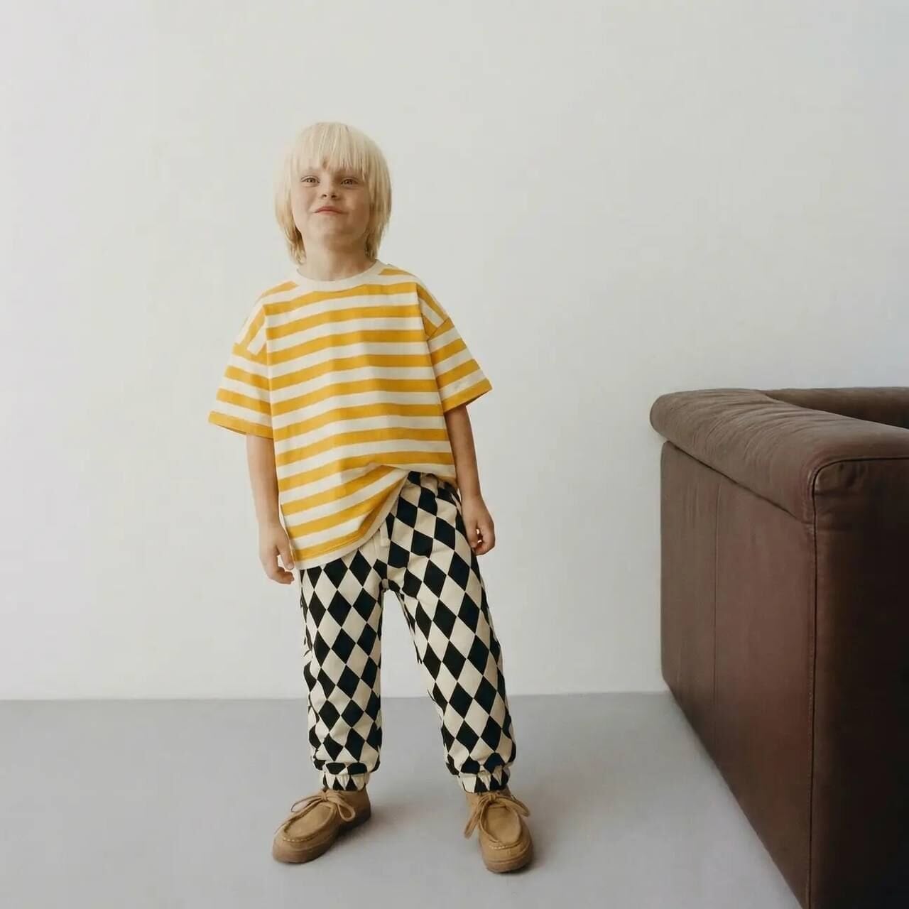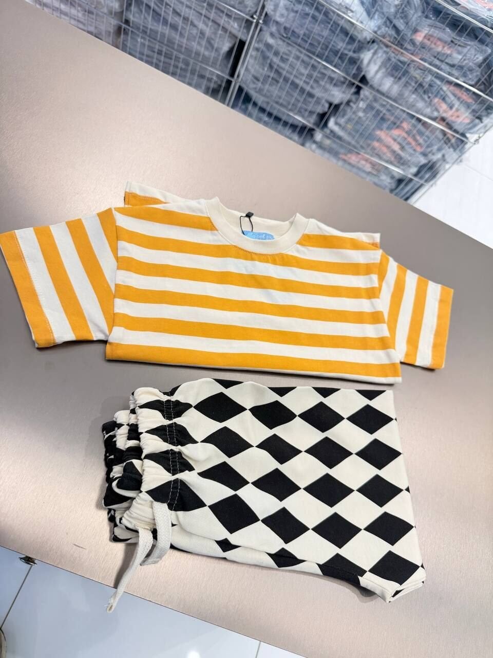 Asarkids La'ciel Paris Damalı Pantolon Çizgili Tişört 2'li Set - Sarı