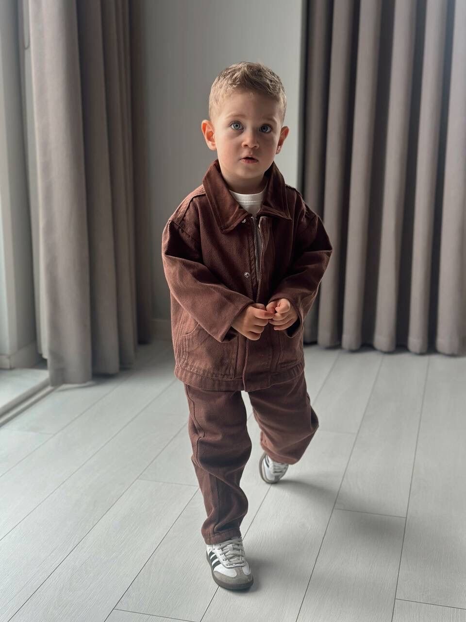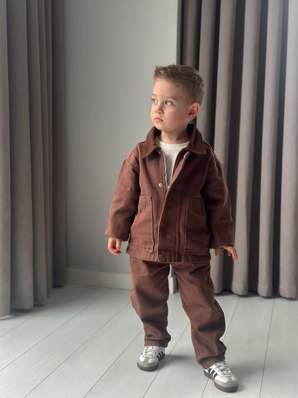 Asarkids Denim Ceketli Pantolonlu 2'li Takım - Kahve