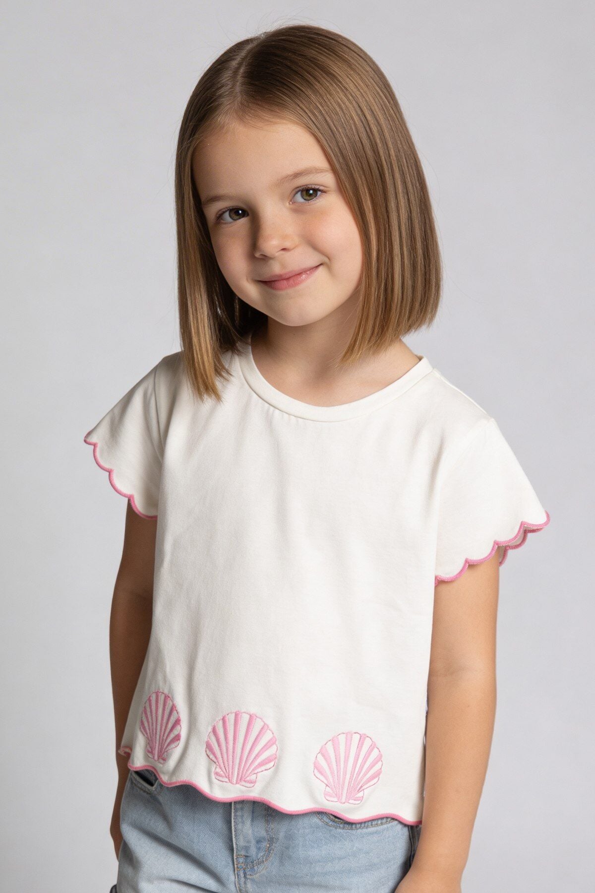 Asarkids Deniz Kabuğu Nakışlı Tişört - Pembe