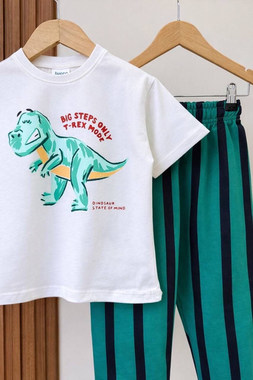Asarkids Dinozor Çizgili 2'li Takım - Yeşil Beyaz