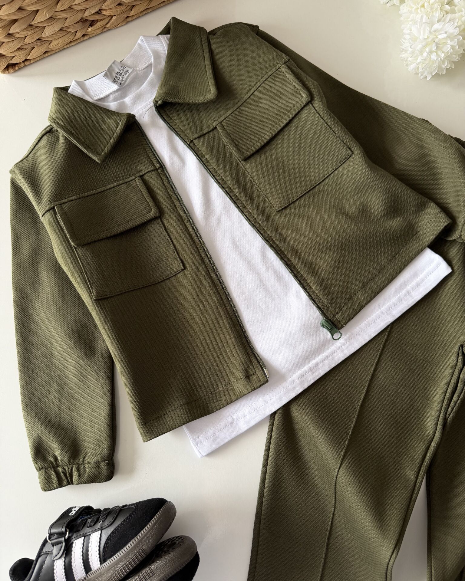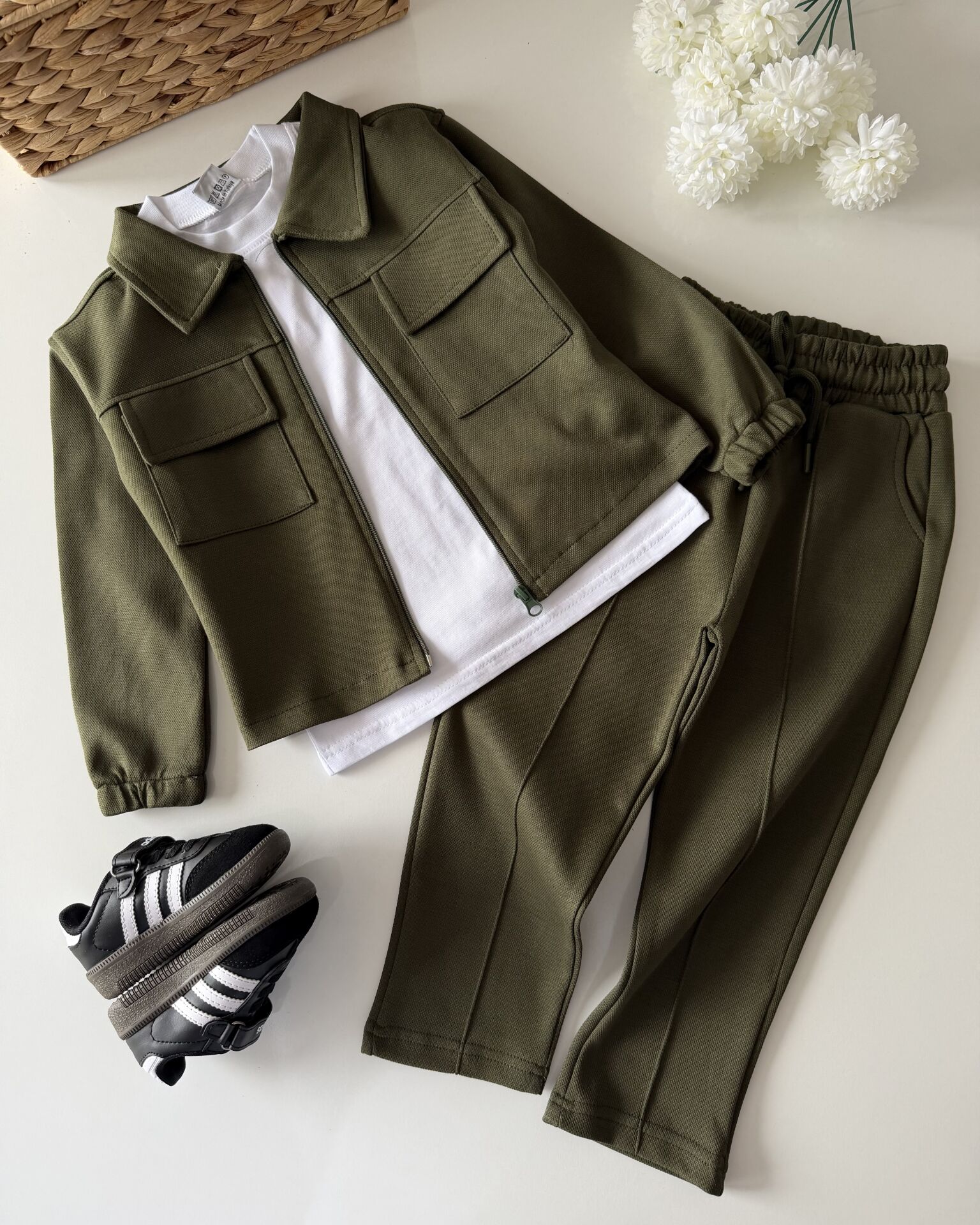 Asarkids Dokulu Ceketli 3'lü Takım - Yeşil