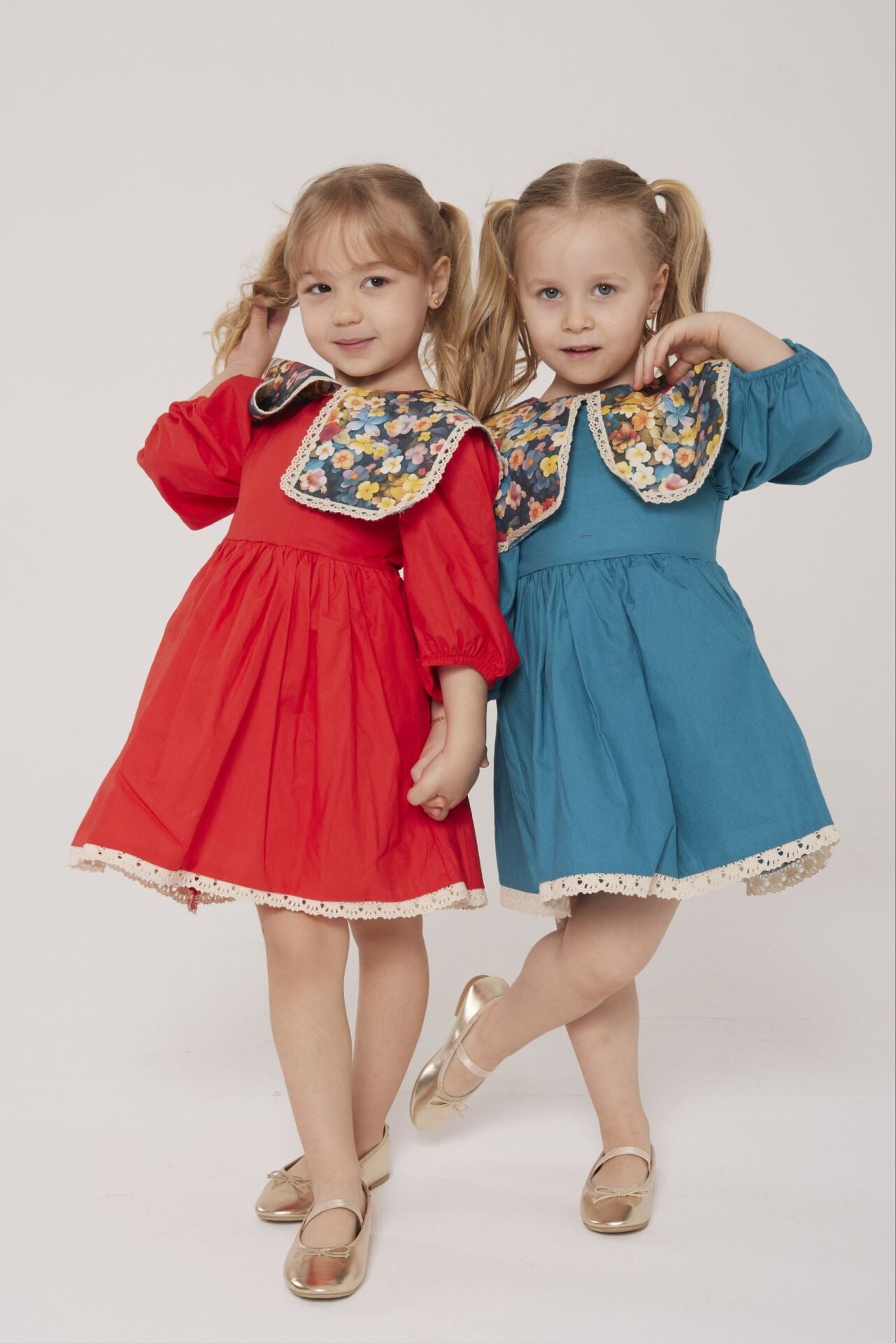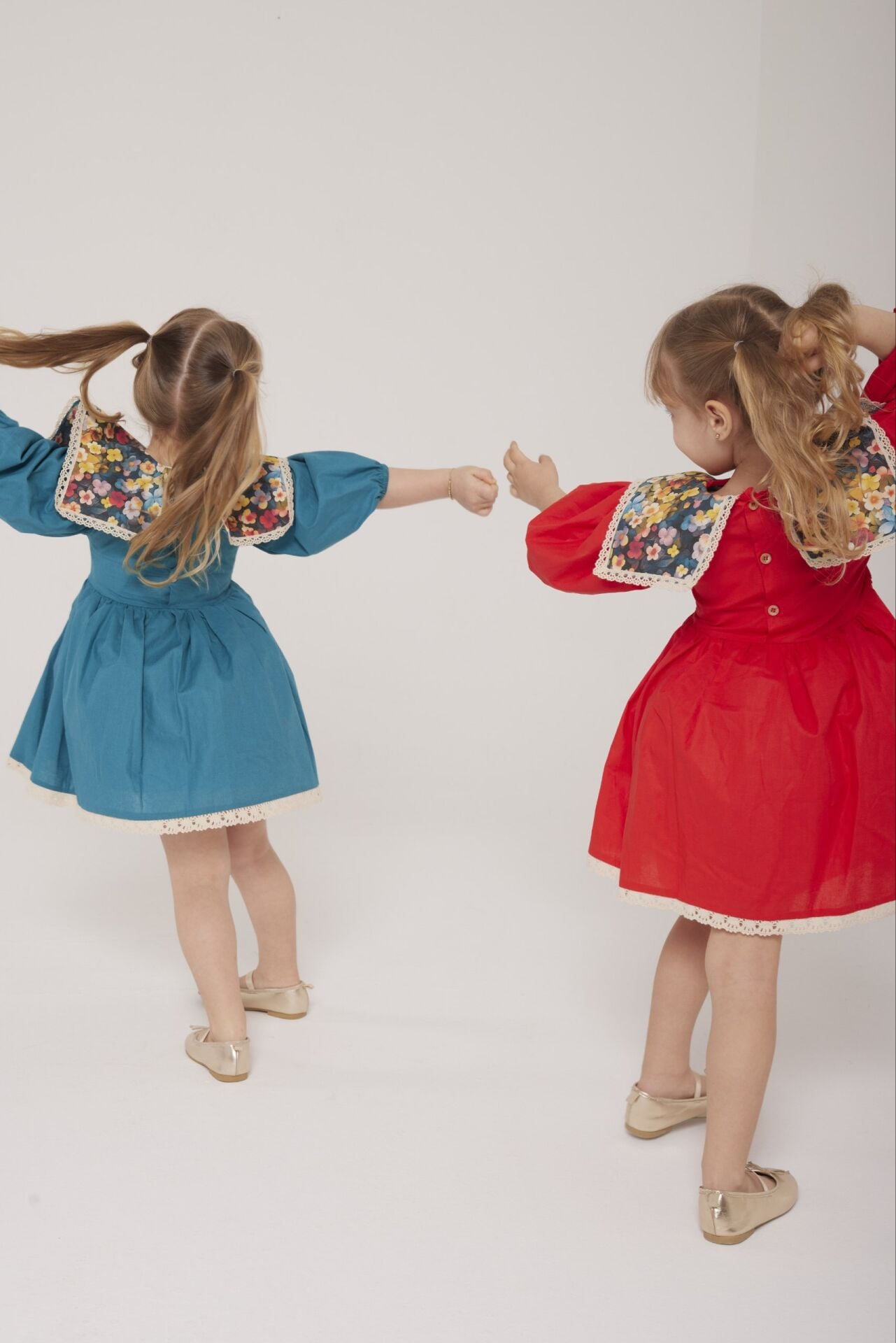 Asarkids Etnik Desen Yakalı Elbise - Kiremit