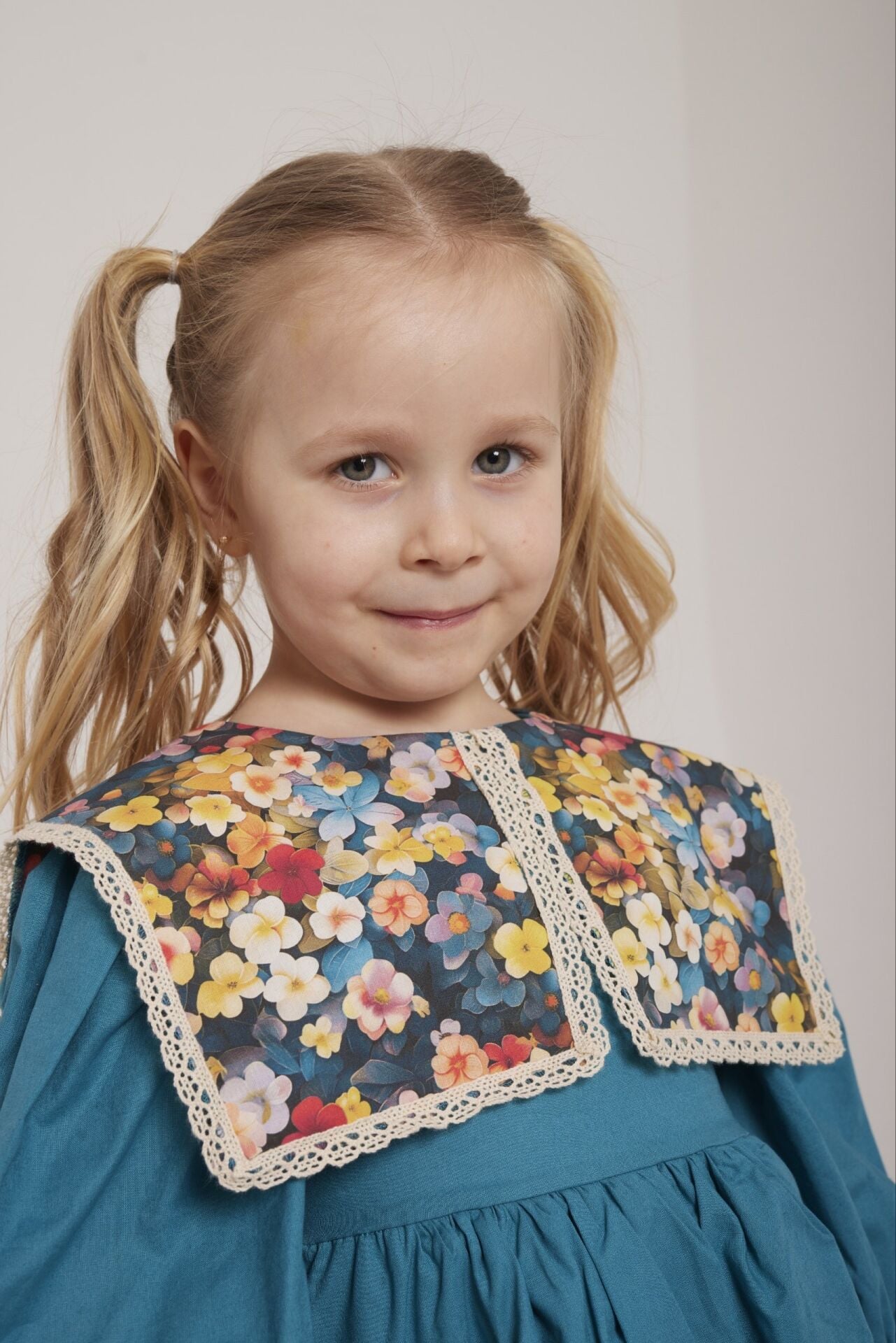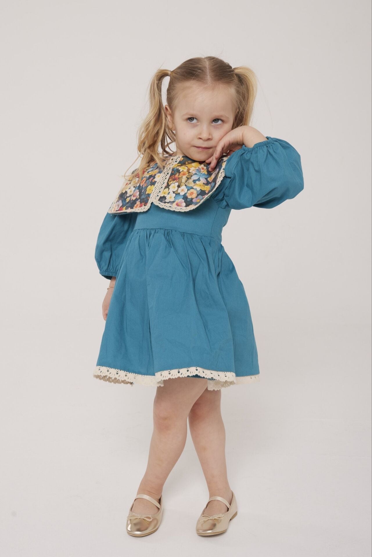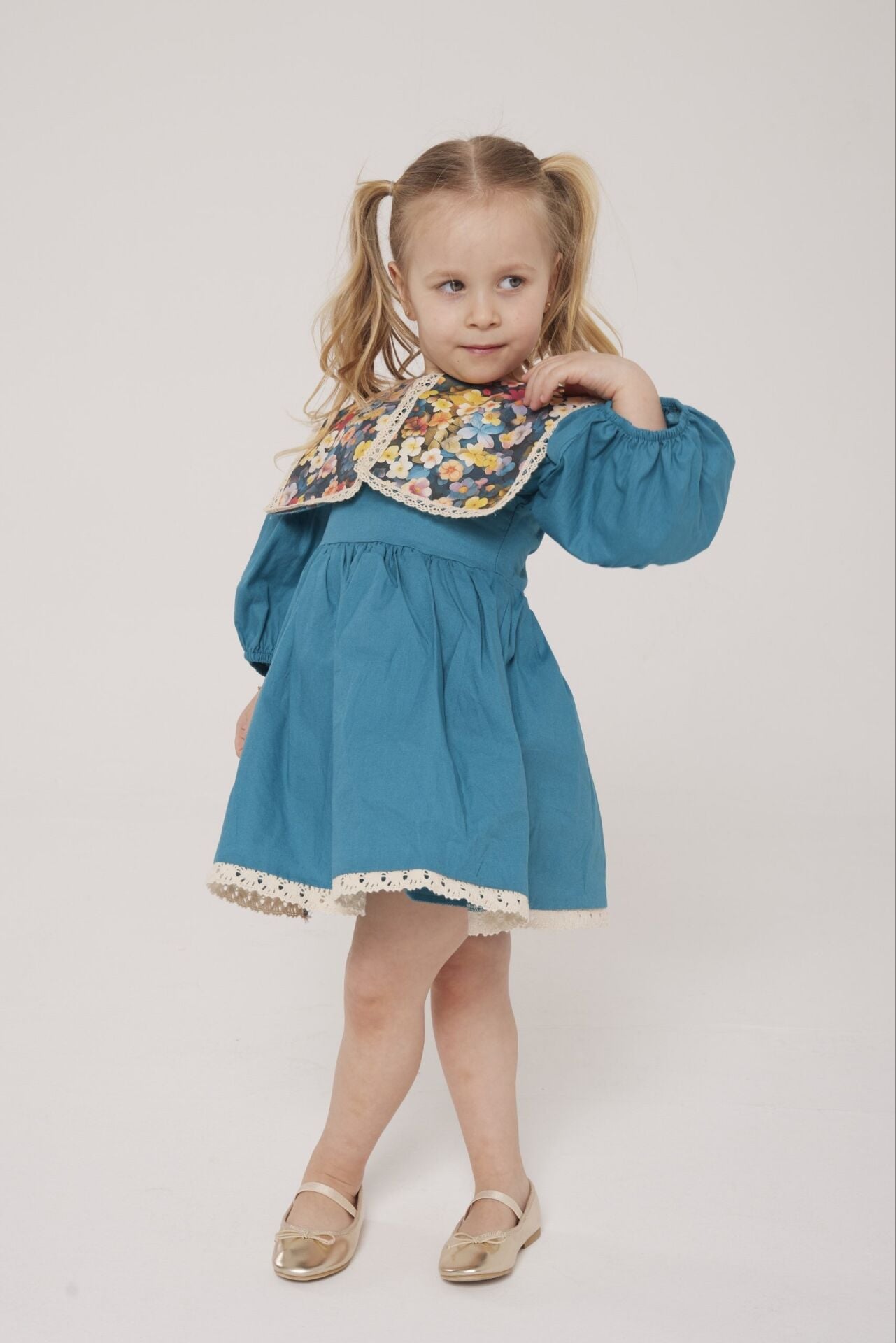 Asarkids Etnik Desen Yakalı Elbise - Mavi