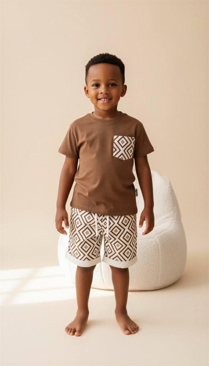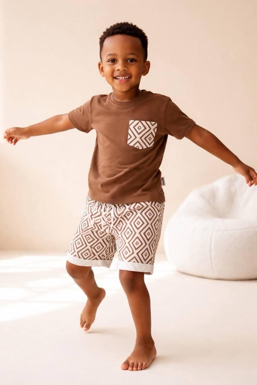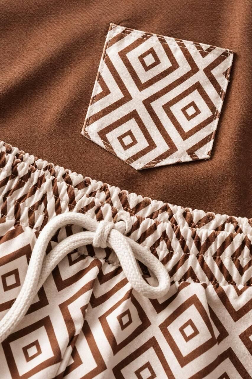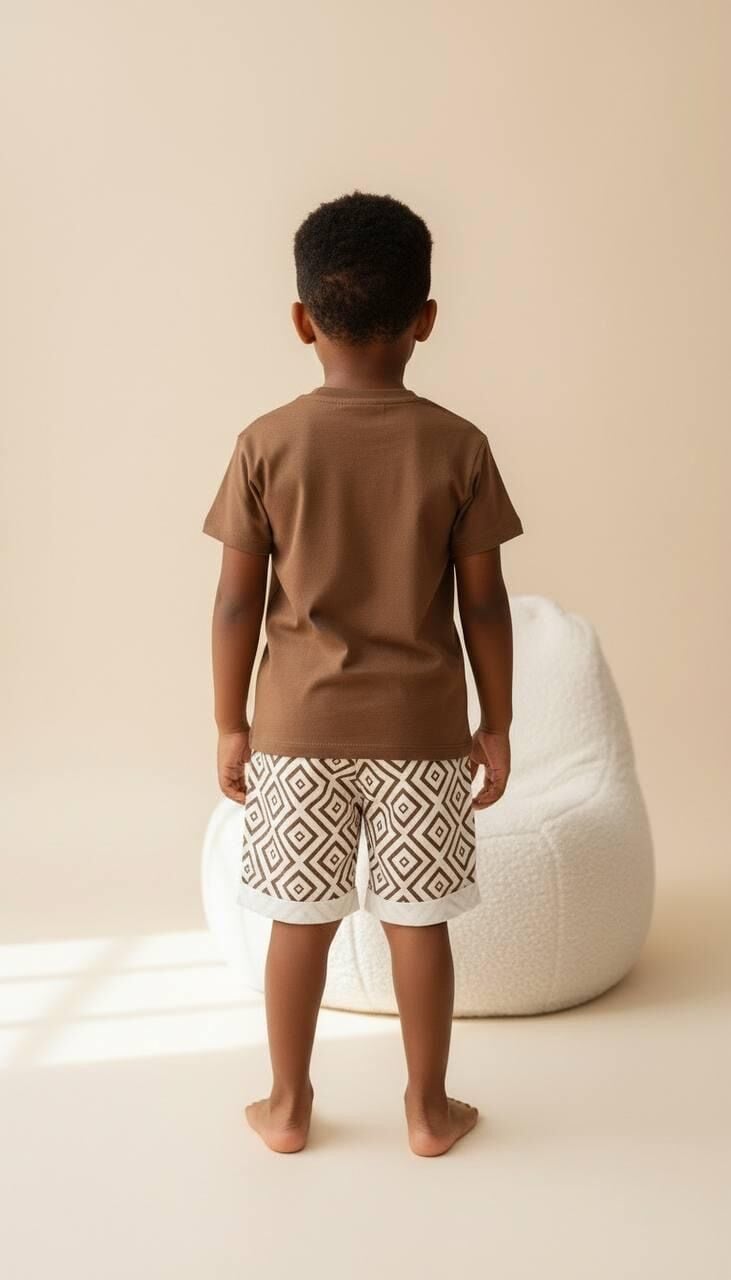 Asarkids Etnik Desenli Şortlu Takım - Kahve
