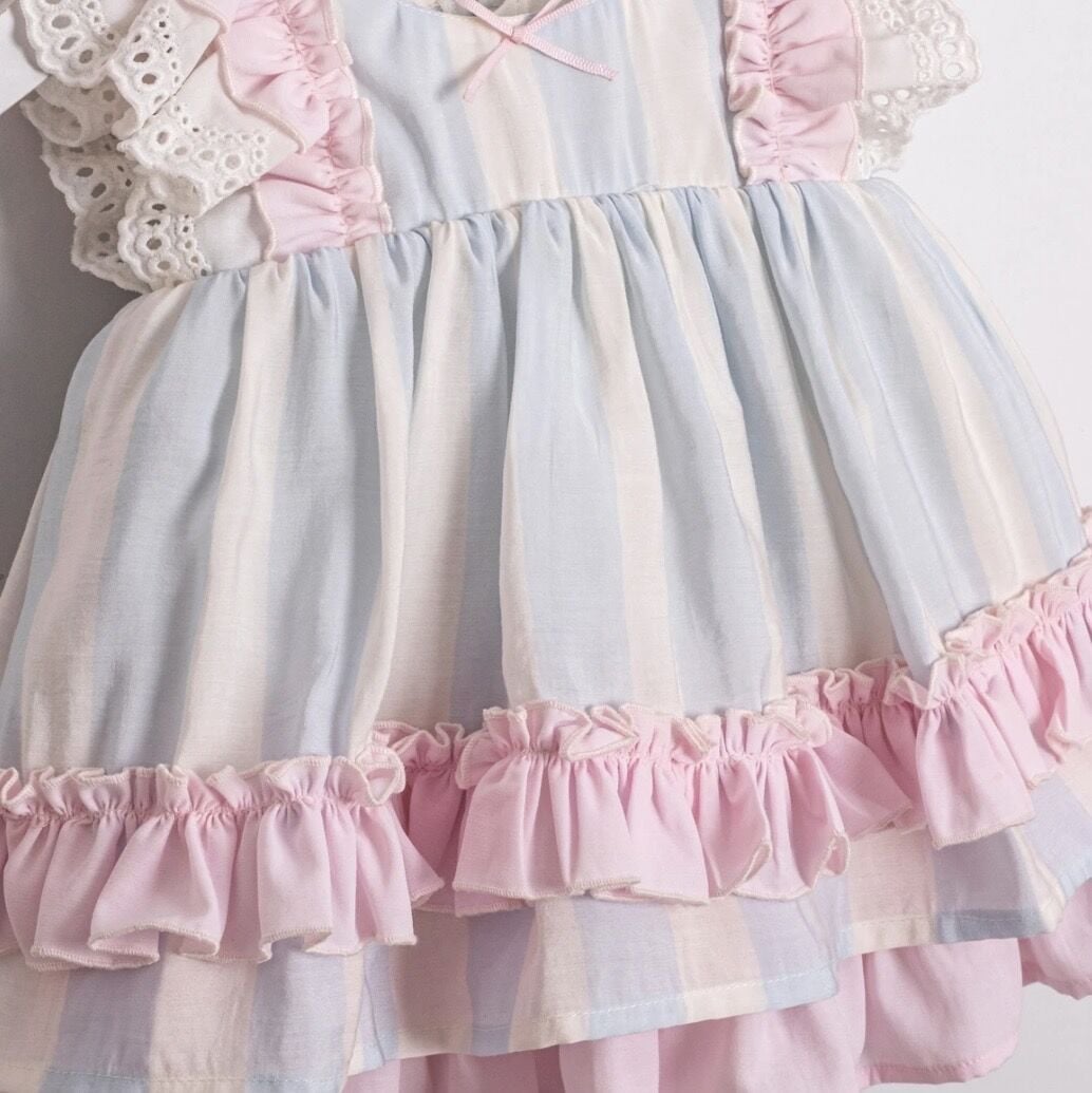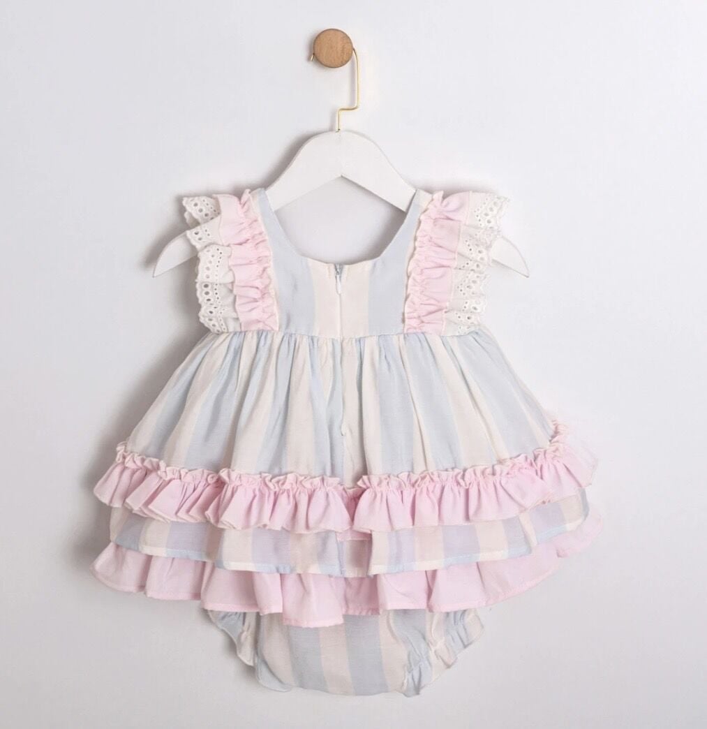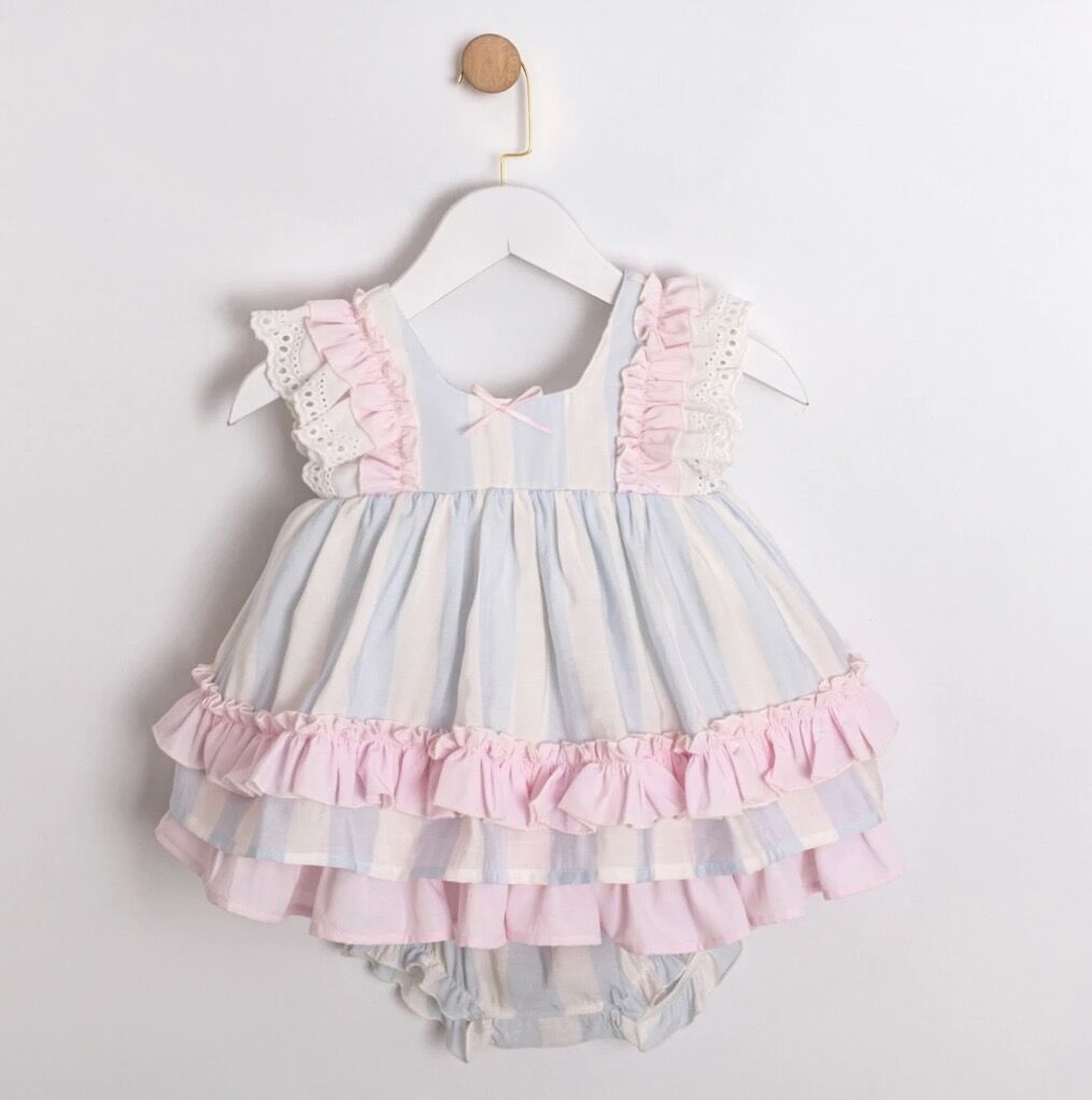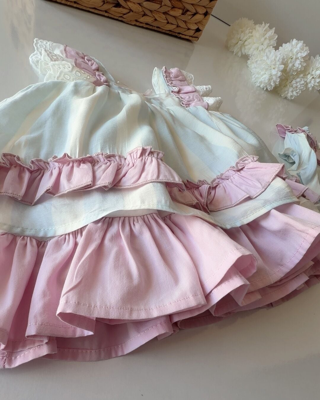 Asarkids Fırfırlı Fiyonk Detaylı Elbise ve Külot 2'li Takım - Pembe Mavi