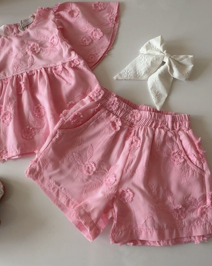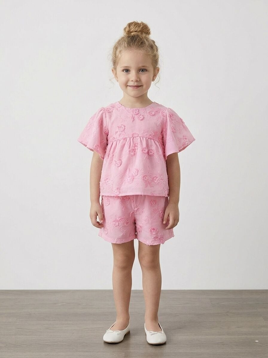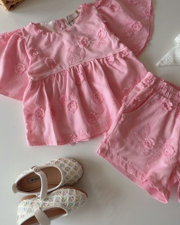 Asarkids Fistolu Bluz Şort 2'li Takım - Pembe
