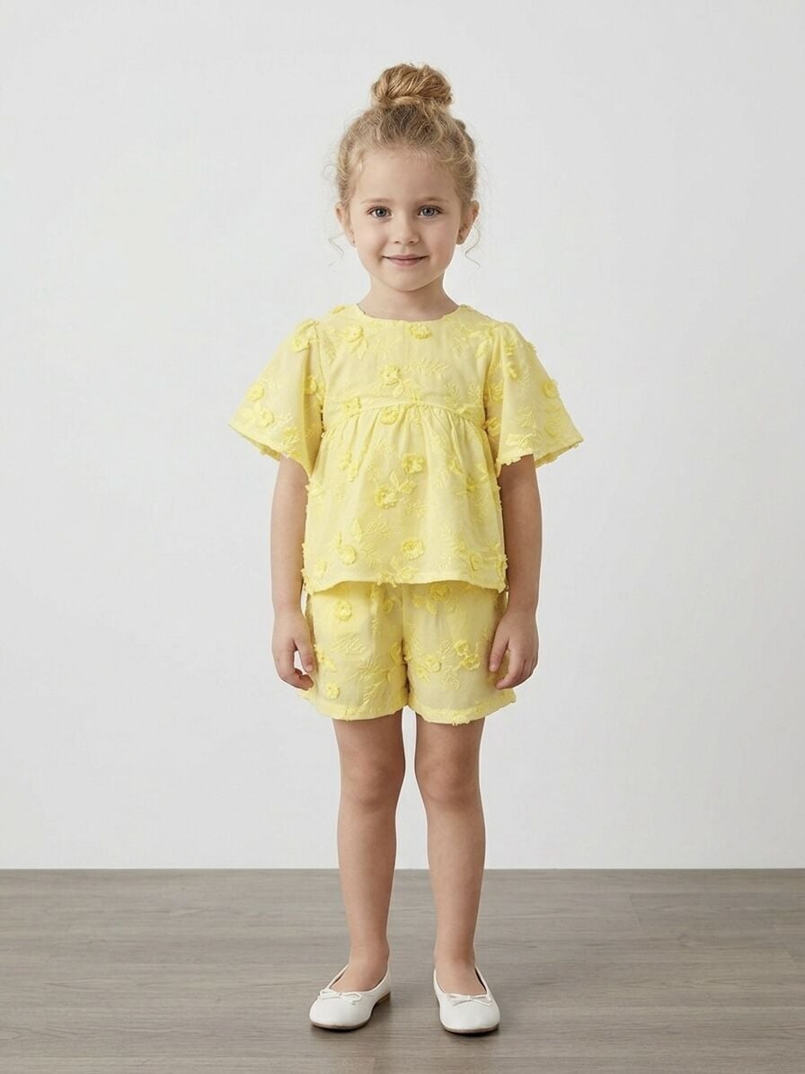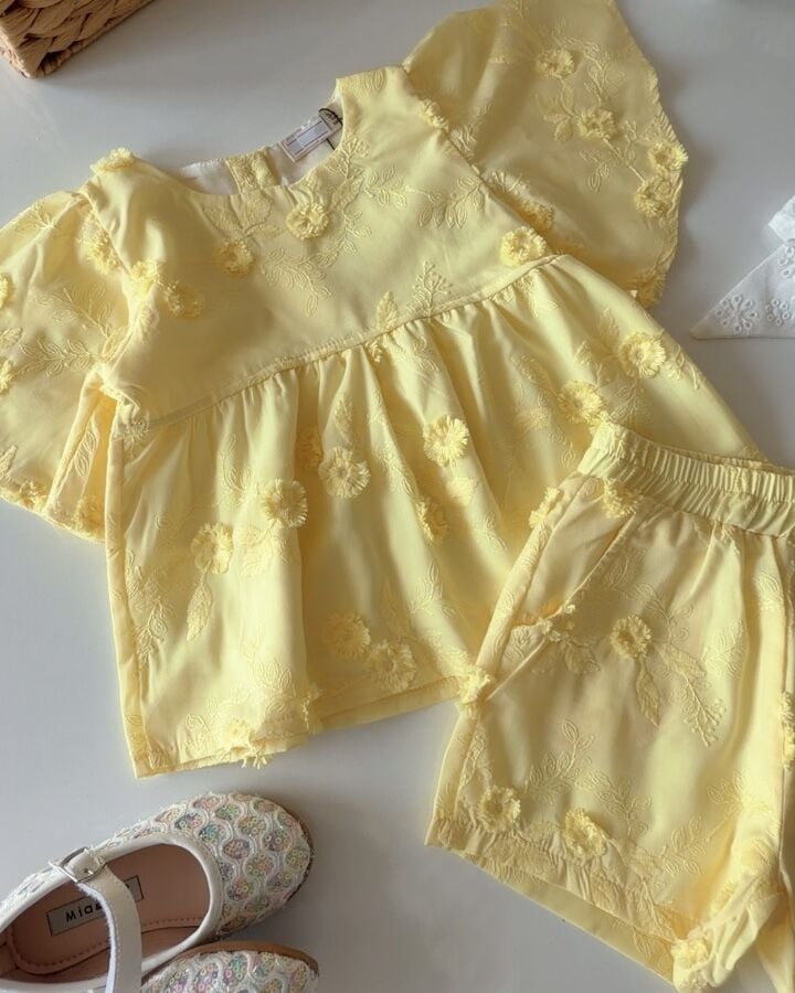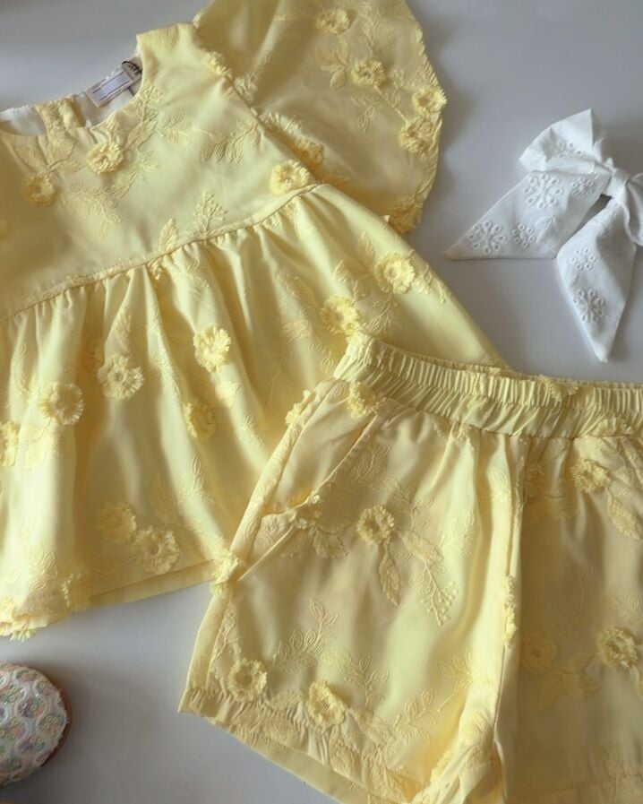 Asarkids Fistolu Bluz Şort 2'li Takım - Sarı