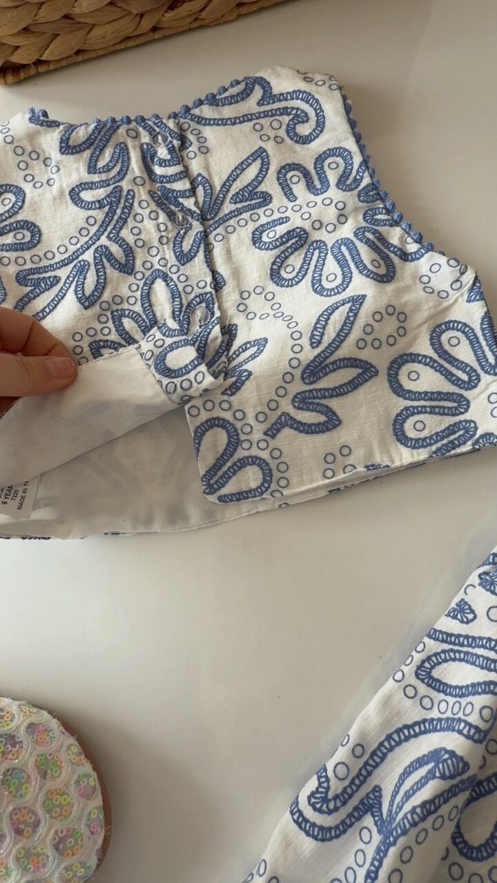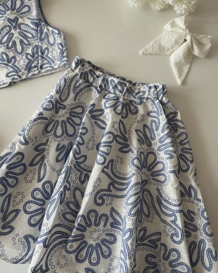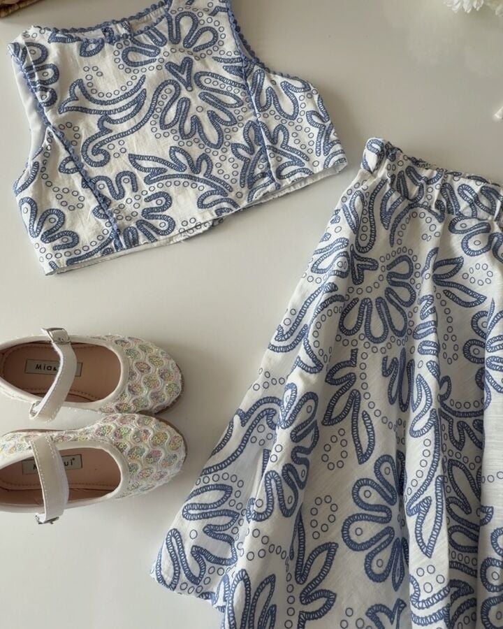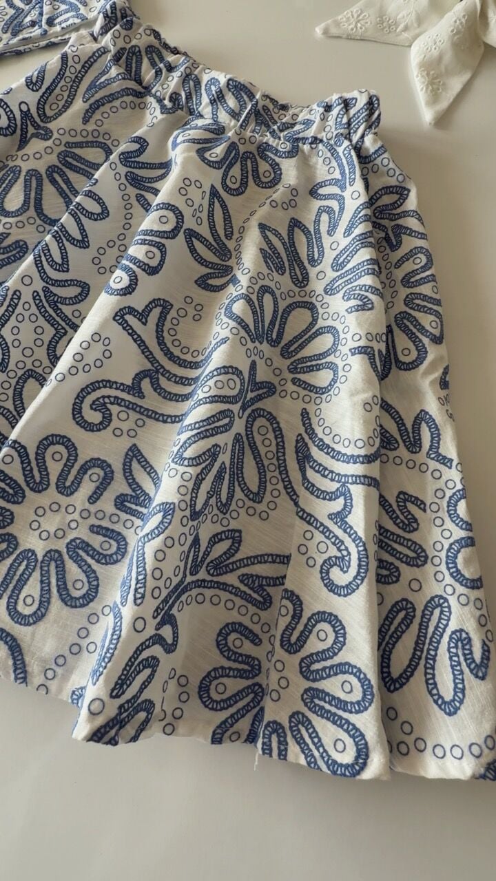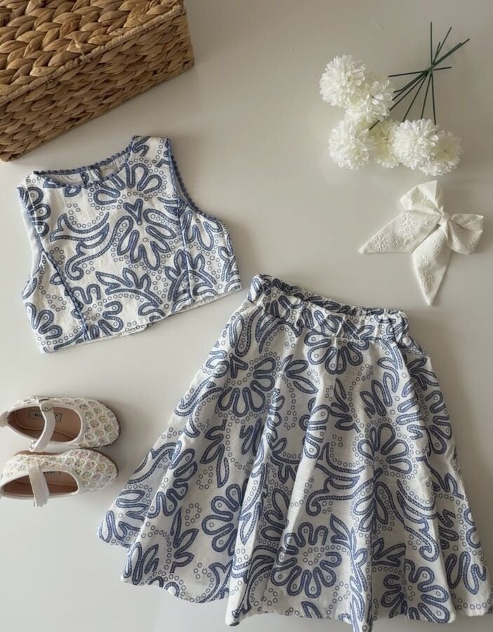 Asarkids Fistolu Etek Bluz 2'li Takım - Alaçatı Mavi Beyaz