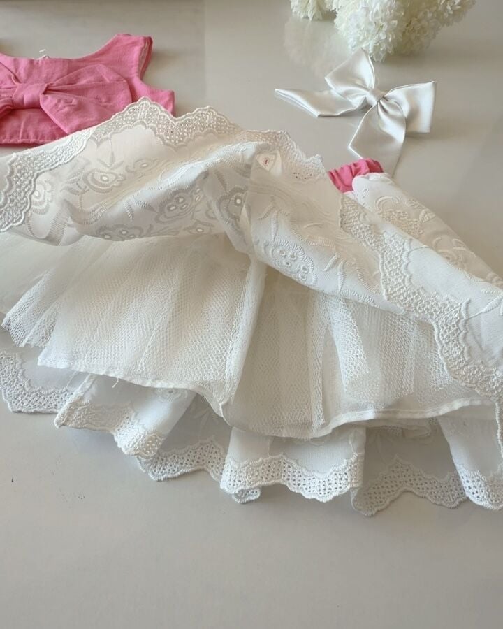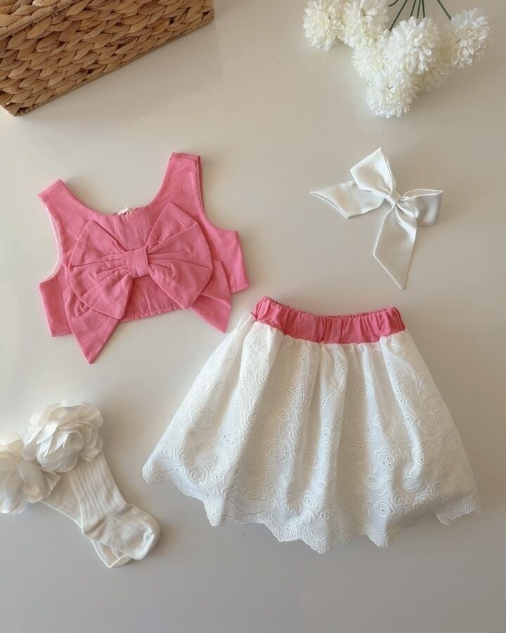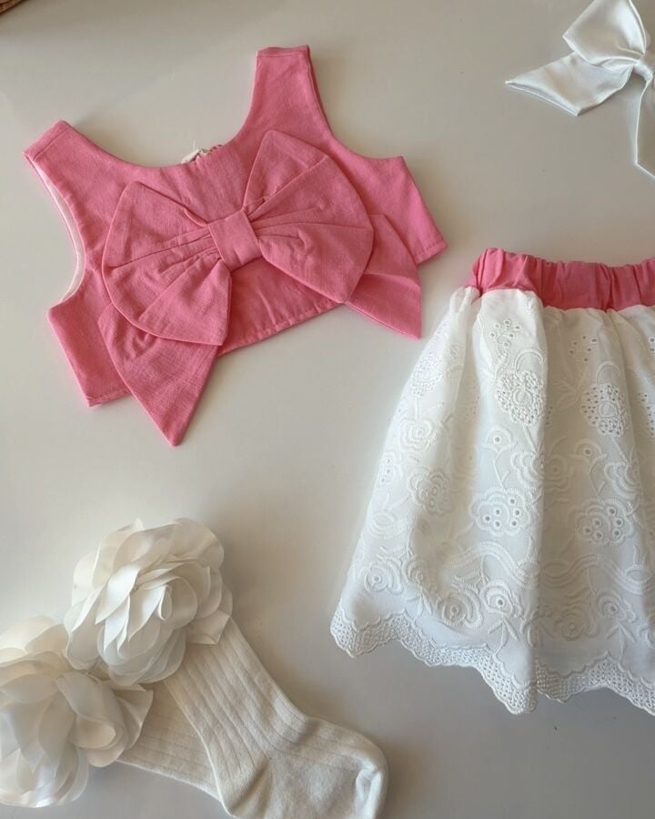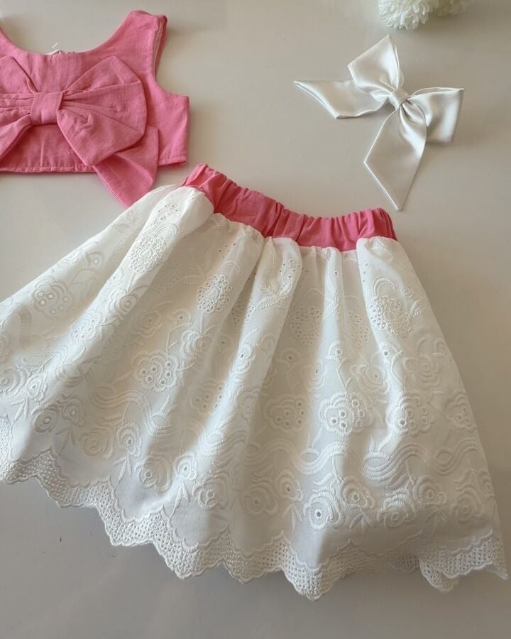 Asarkids Fiyonklu Fisto Astarlı Etek 2'li Takım - Koyu Pembe