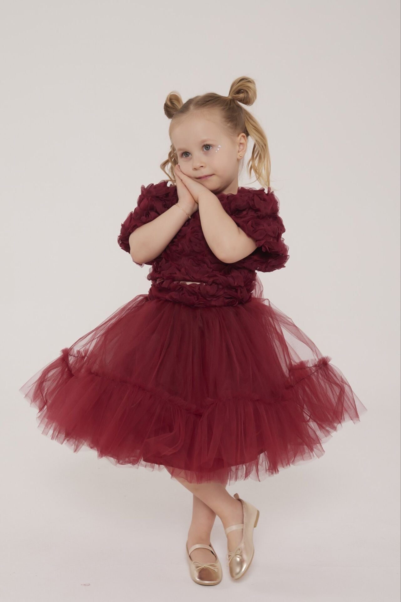 Asarkids Güllü Midi Boy Tütü Etekli 2'li Takım - Bordo