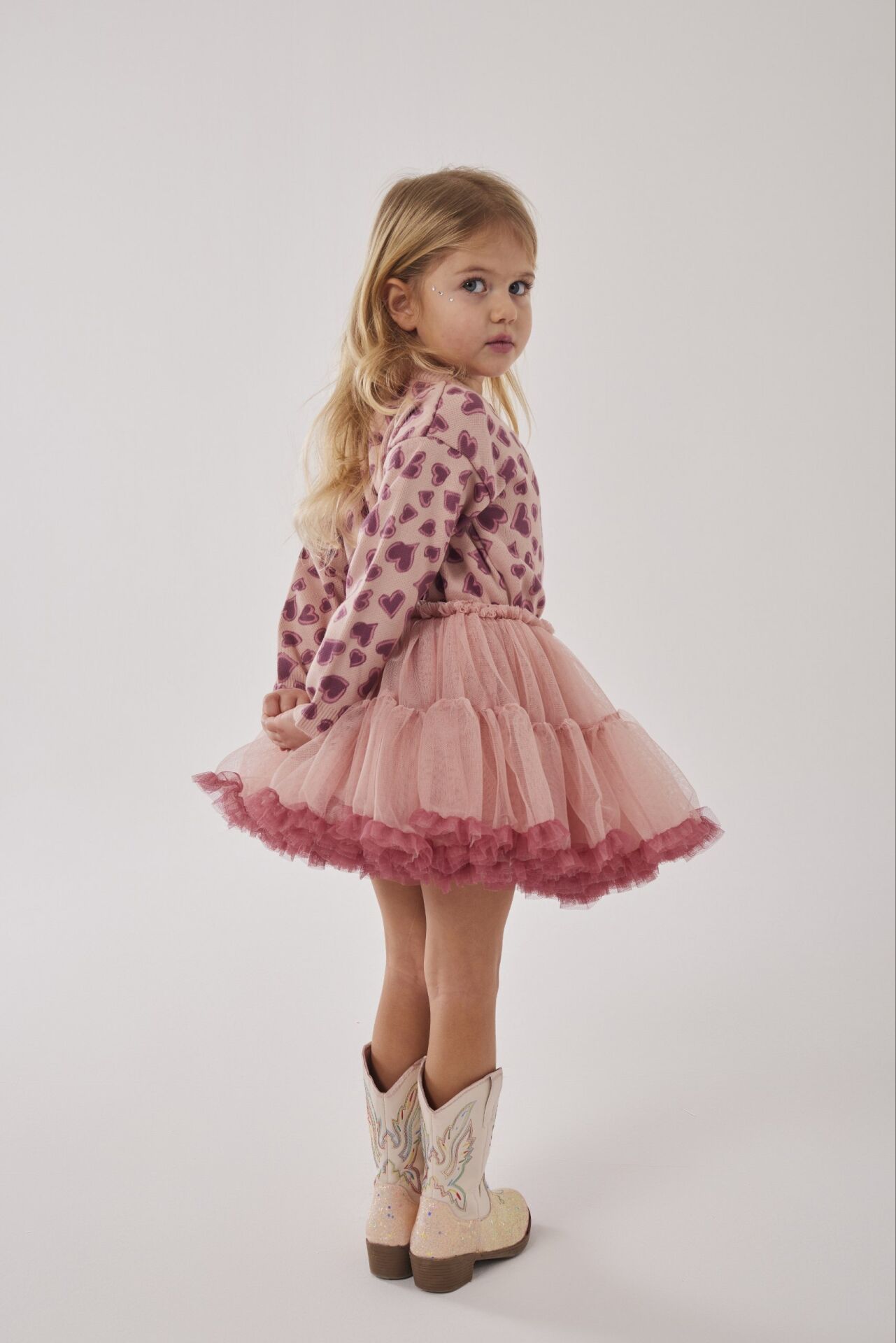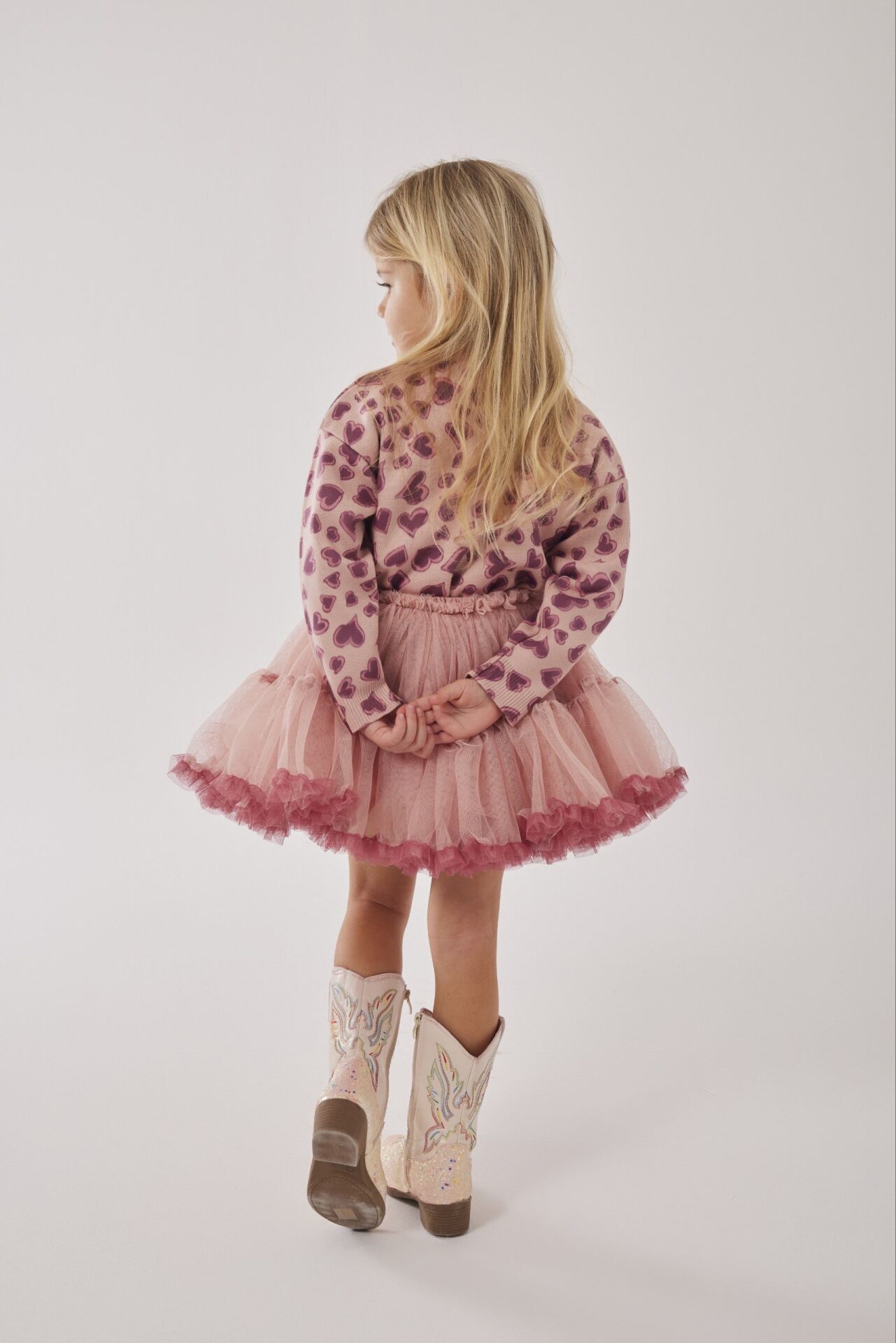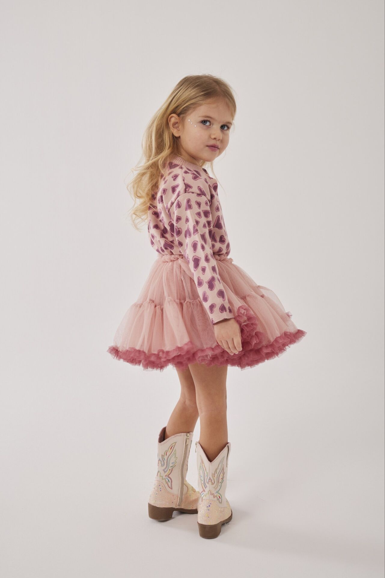 Asarkids Kalp Baskılı Triko Hırkalı Tütü Karnaval Etek 2'li Takım - Gül Kurusu