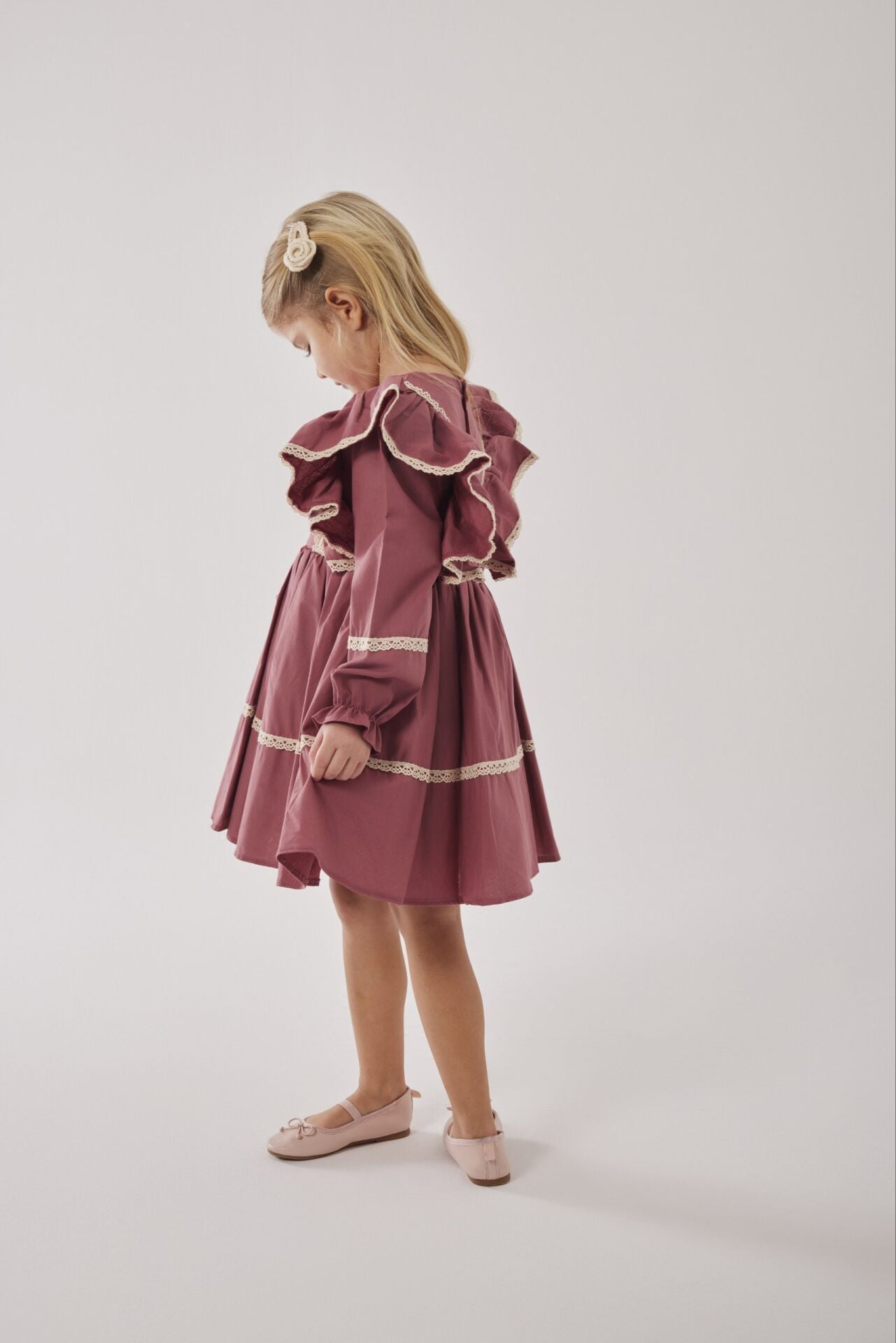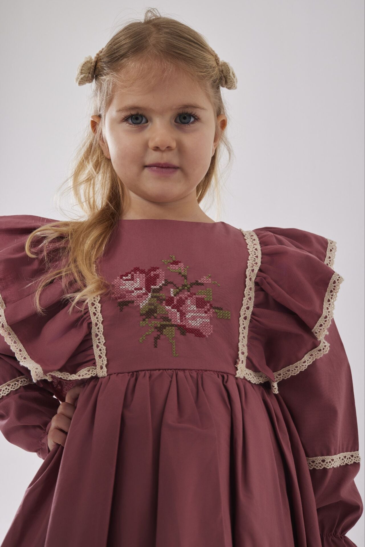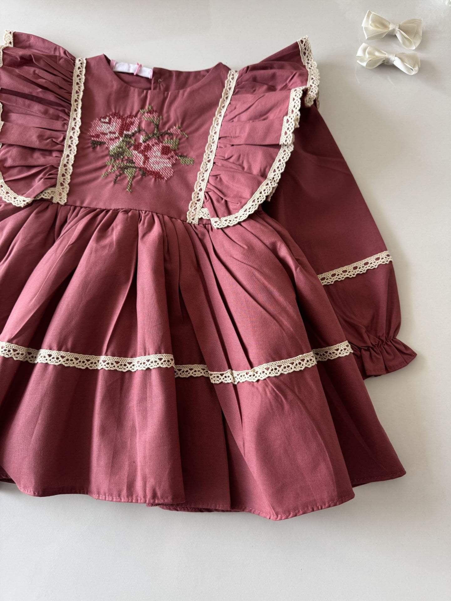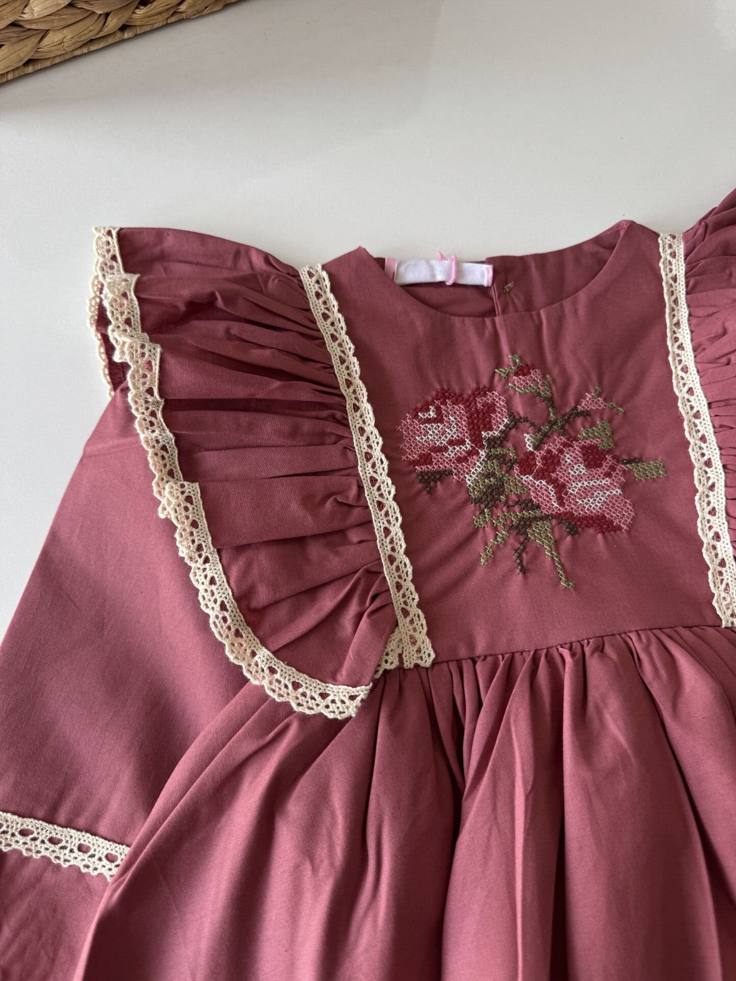 Asarkids Kanaviçe Nakışlı Retro Elbise - Gül Kurusu