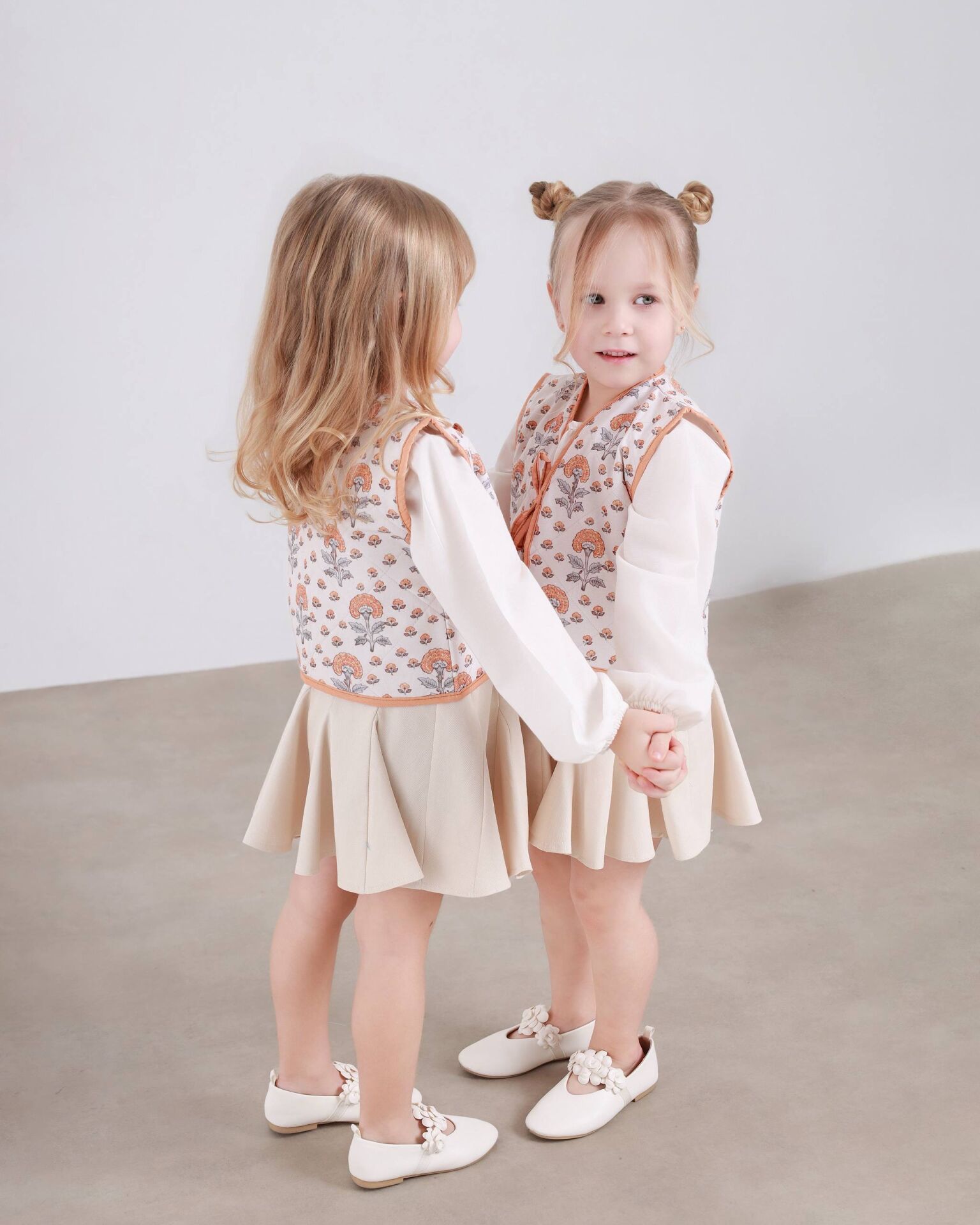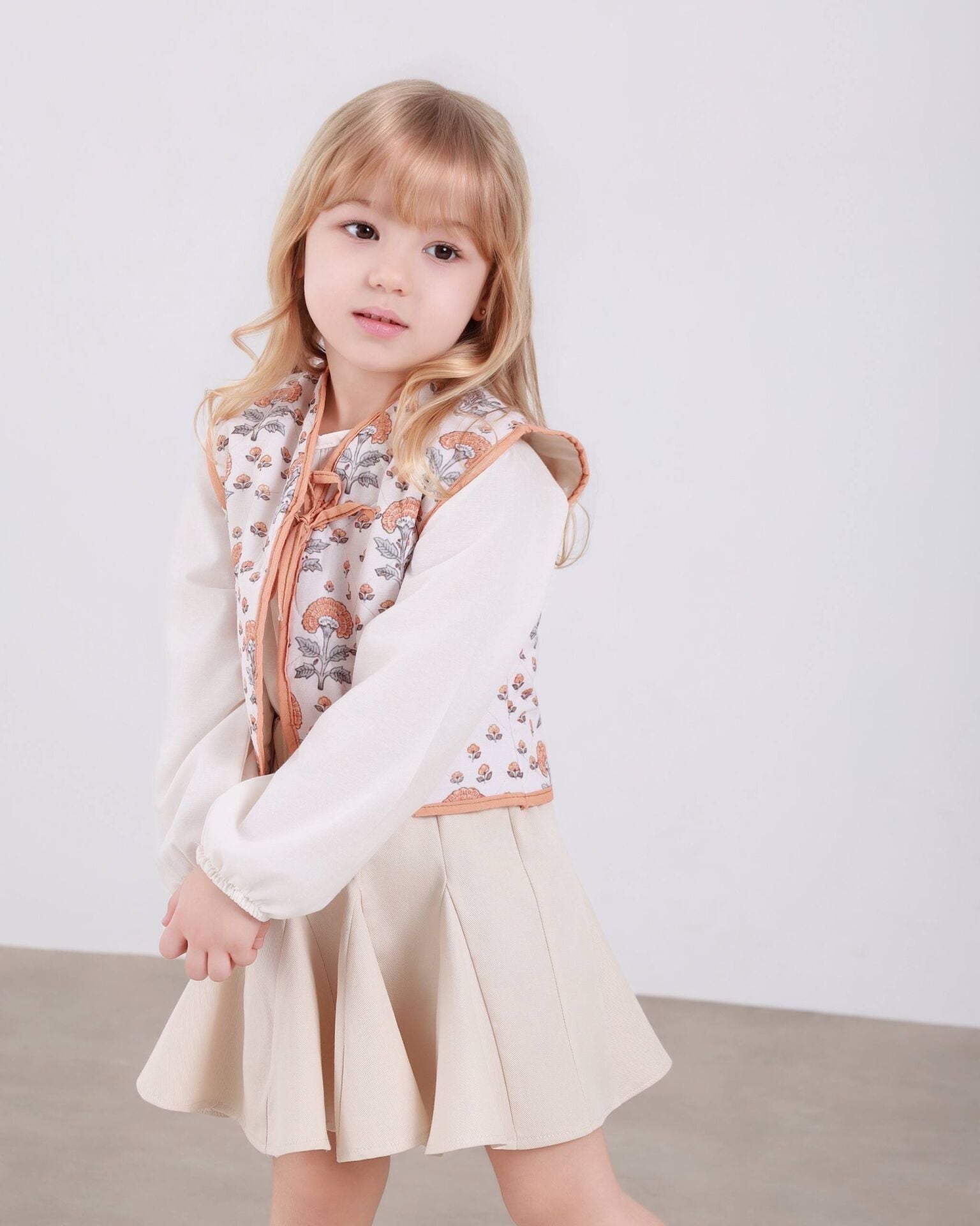 Asarkids Kapitone Yelekli Etekli 3’lü Takım - Krem