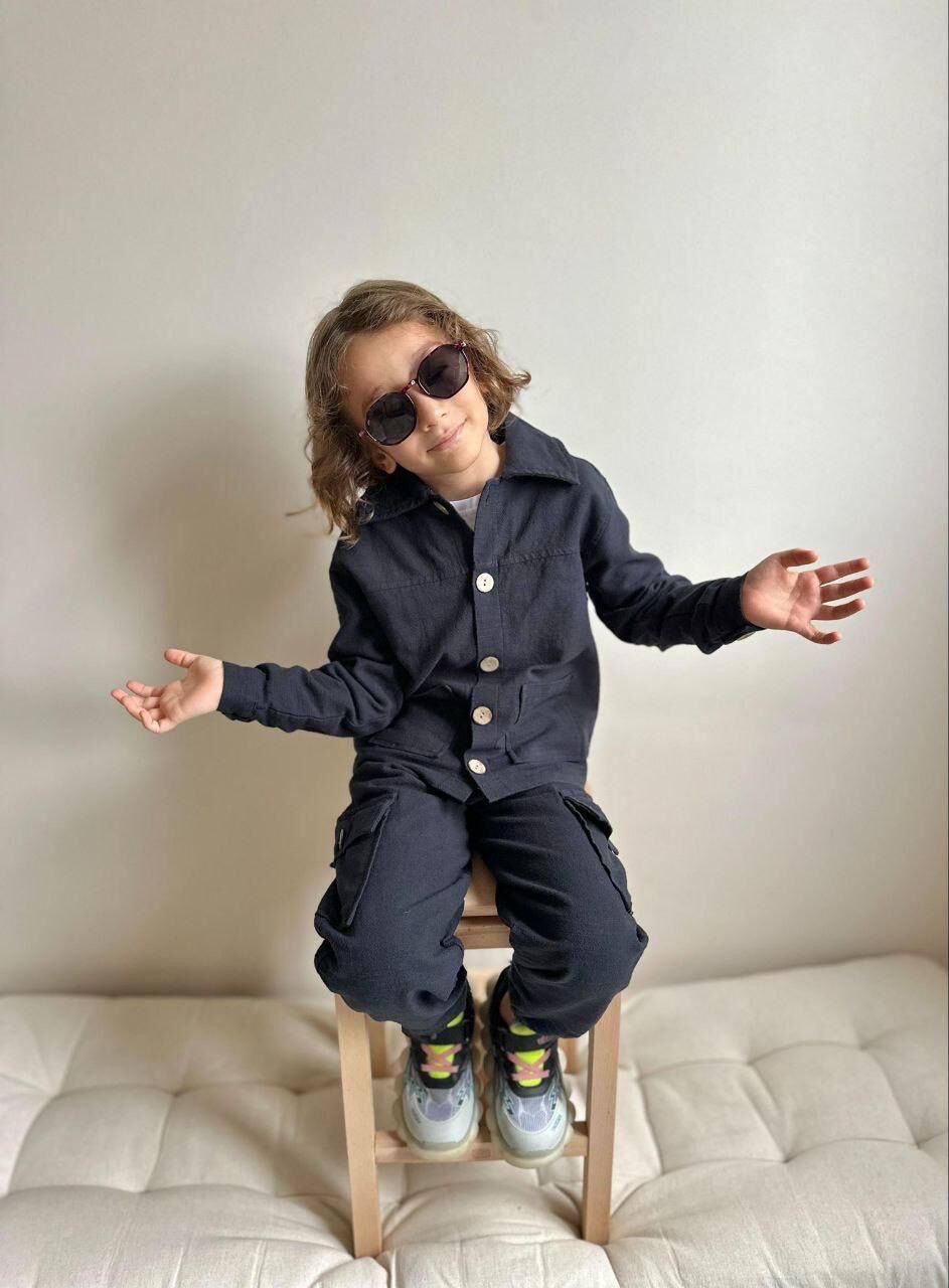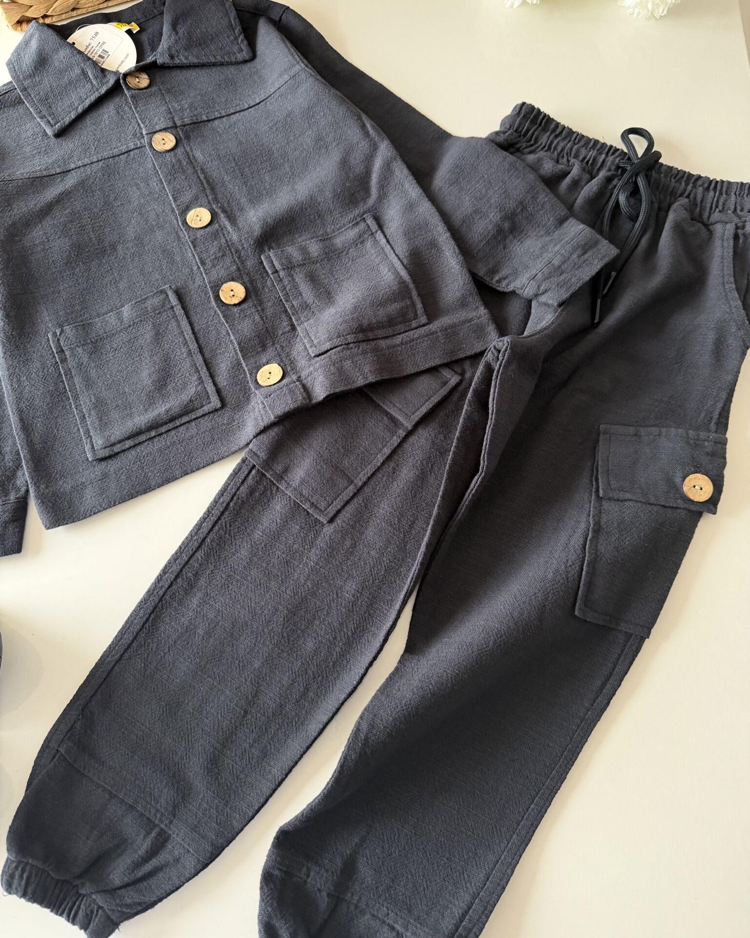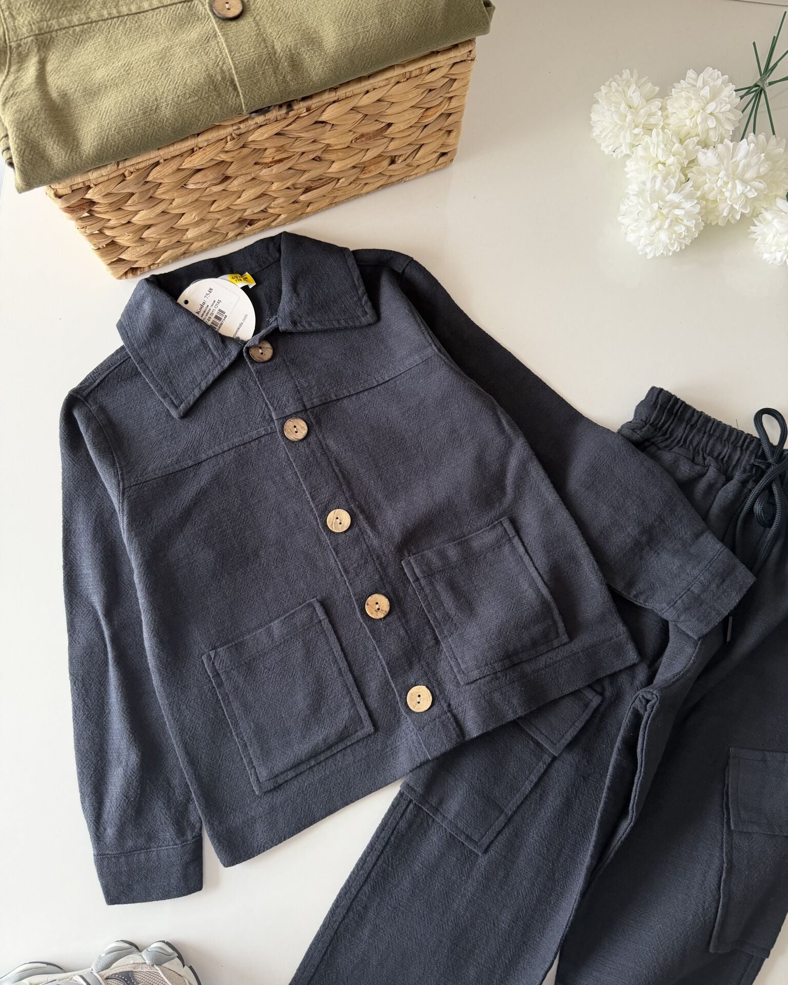 Asarkids Keten Ceket Pantolon Takım -Füme