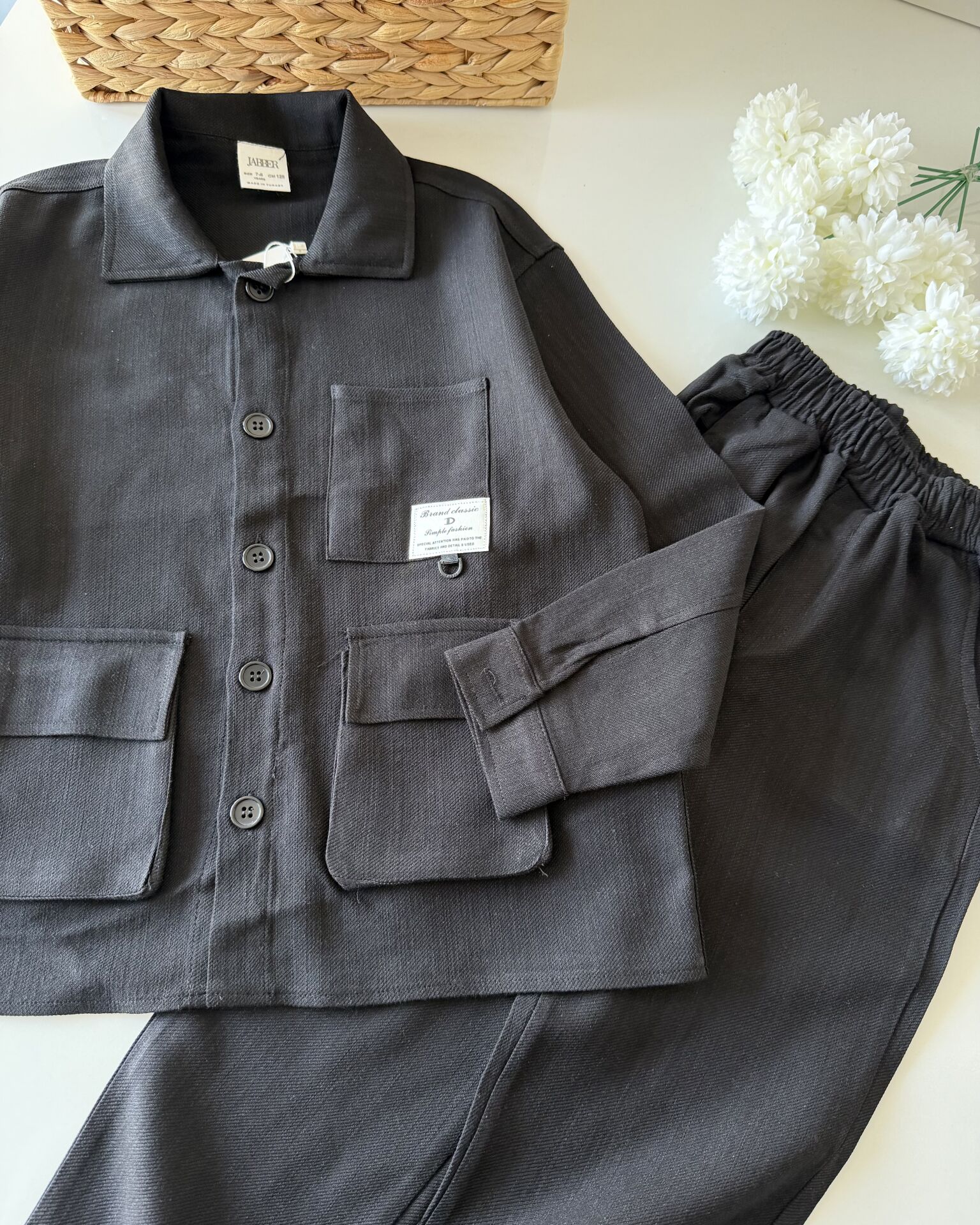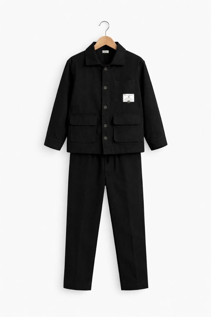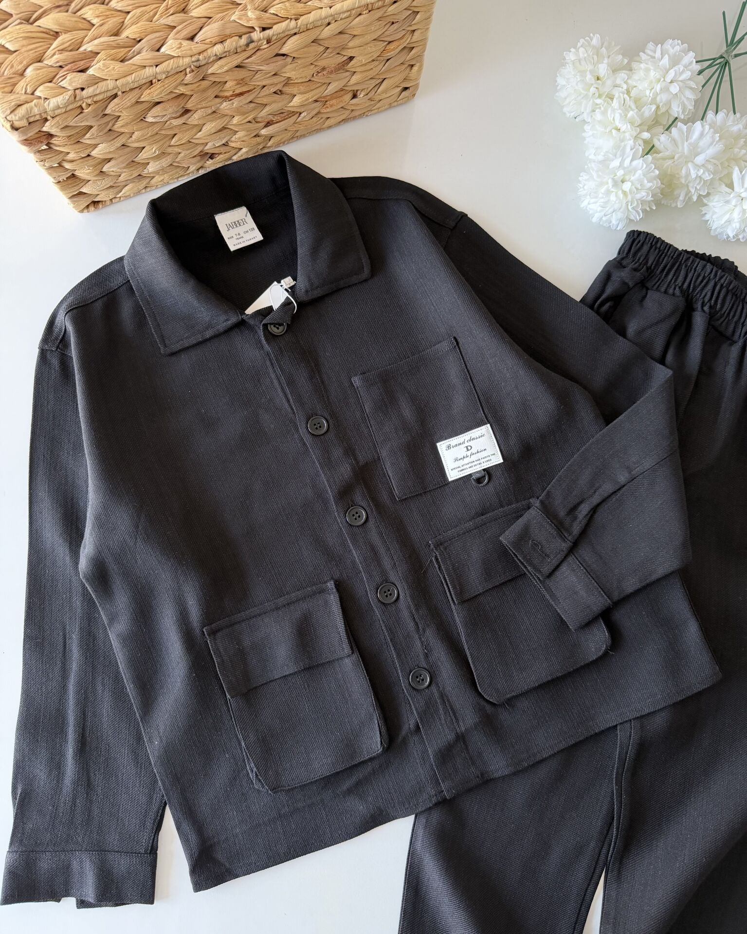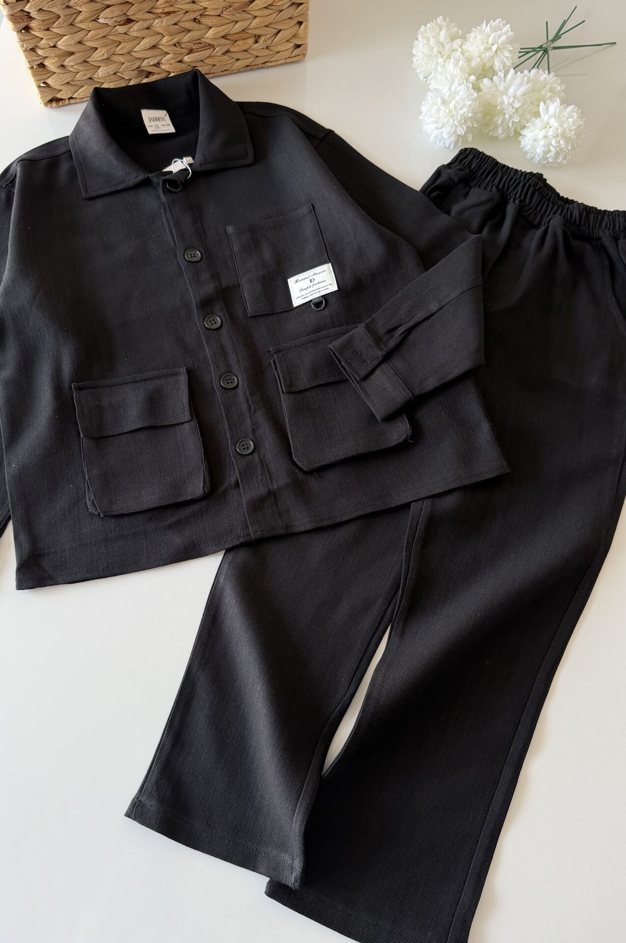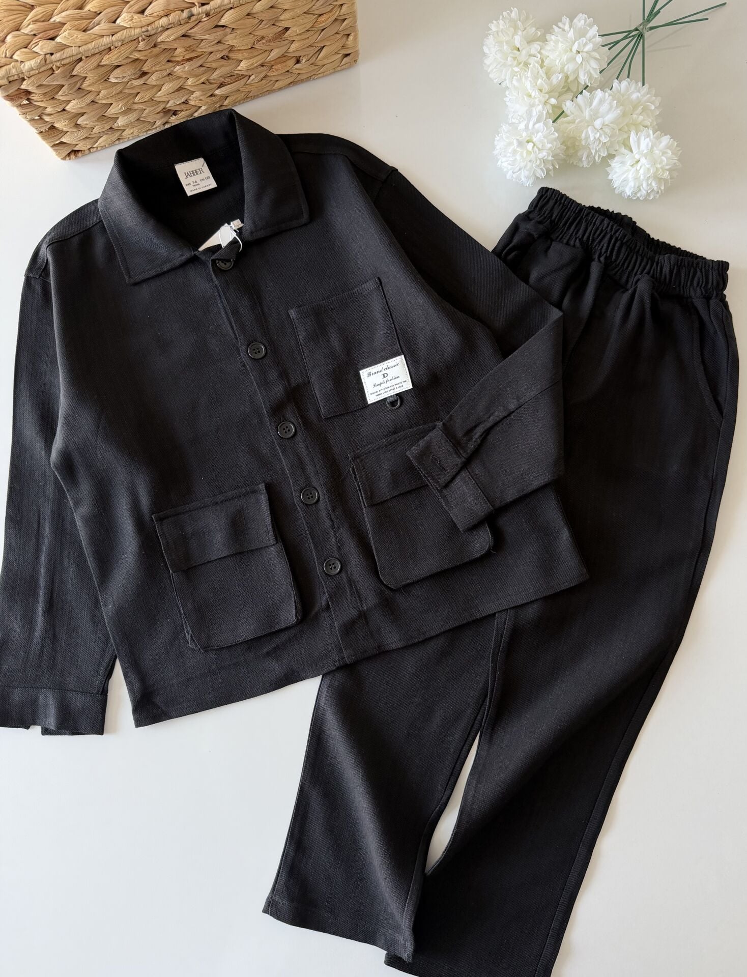 Asarkids Keten Ceketli Takım 2'li Takım - Siyah