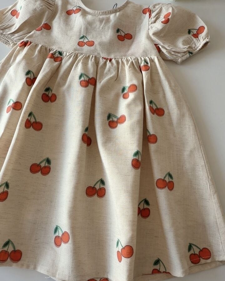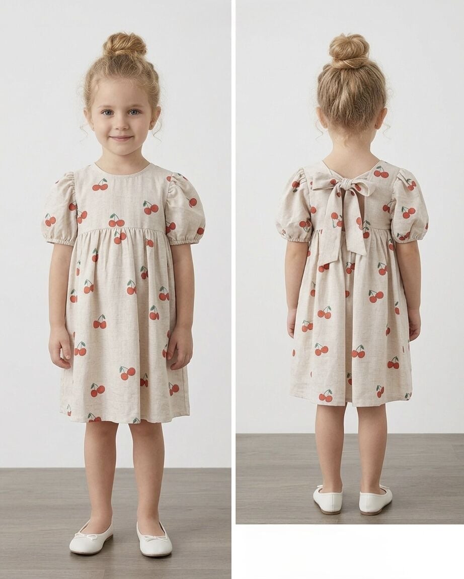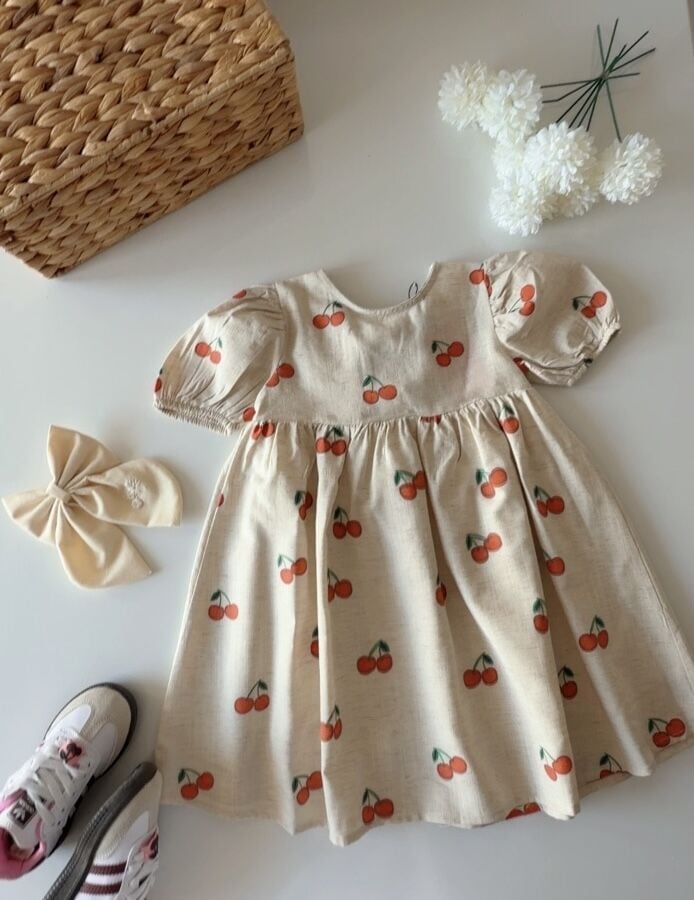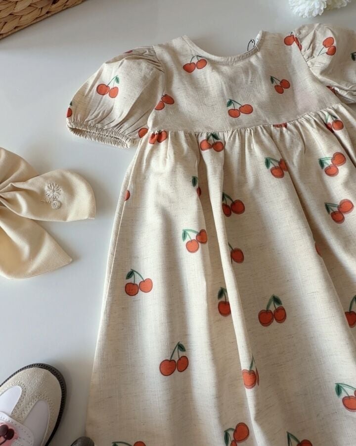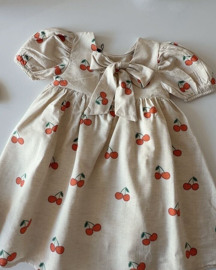 Asarkids Kiraz Baskılı Arkadan Bağlamalı Elbise - Krem