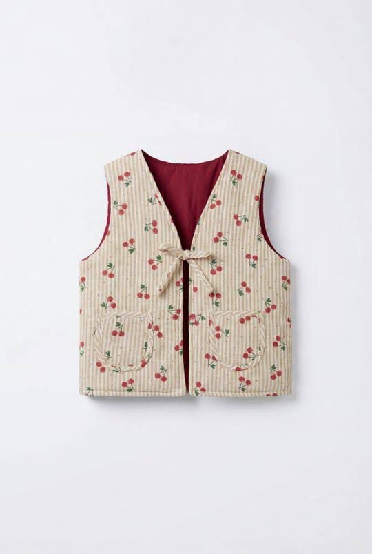 Asarkids Kiraz Baskılı Astarlı Yelek - Krem