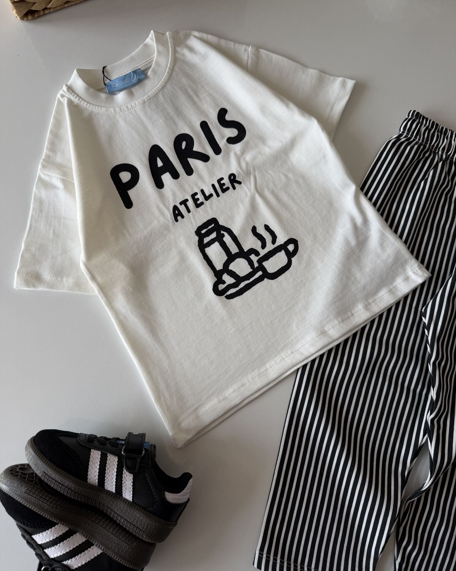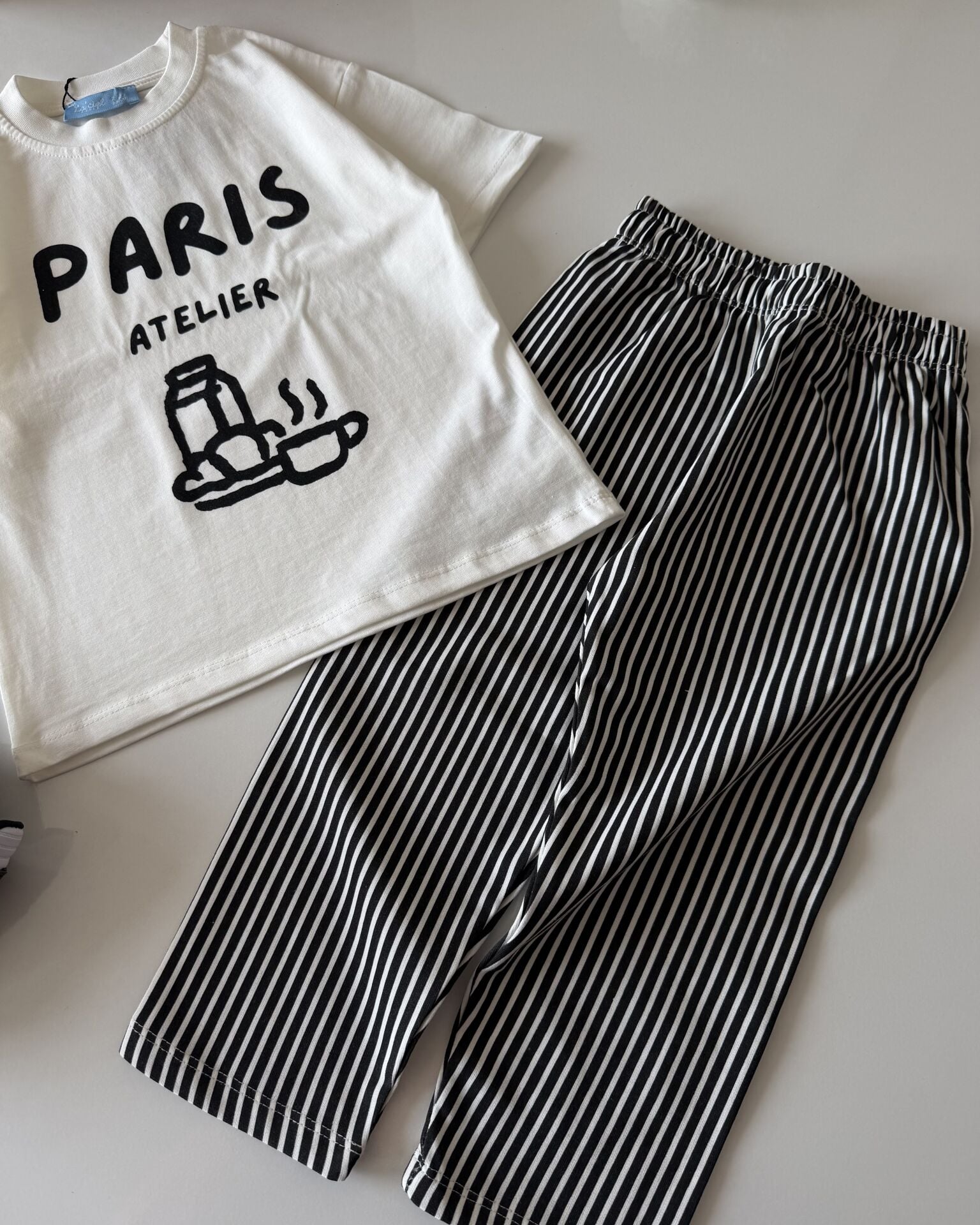 Asarkids La'ciel Paris Çizgili Atelier 2'li Set - Beyaz Siyah