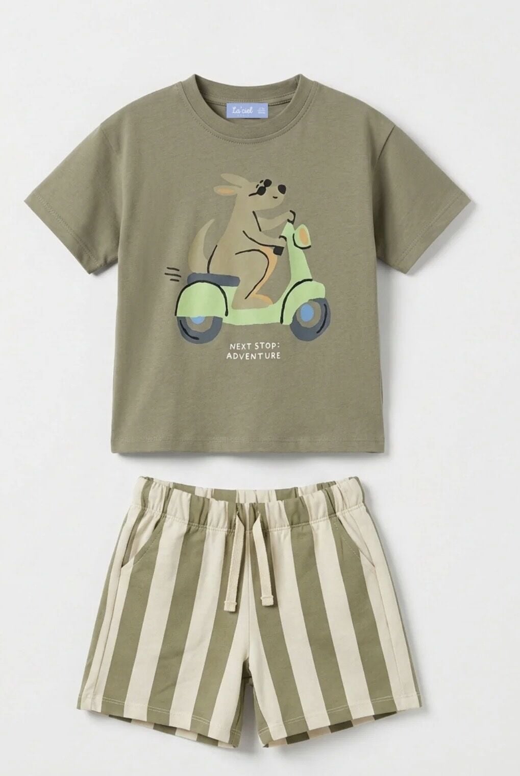 Asarkids La'ciel Paris Tavşan Motor Baskılı Çizgili Takım - Yeşil