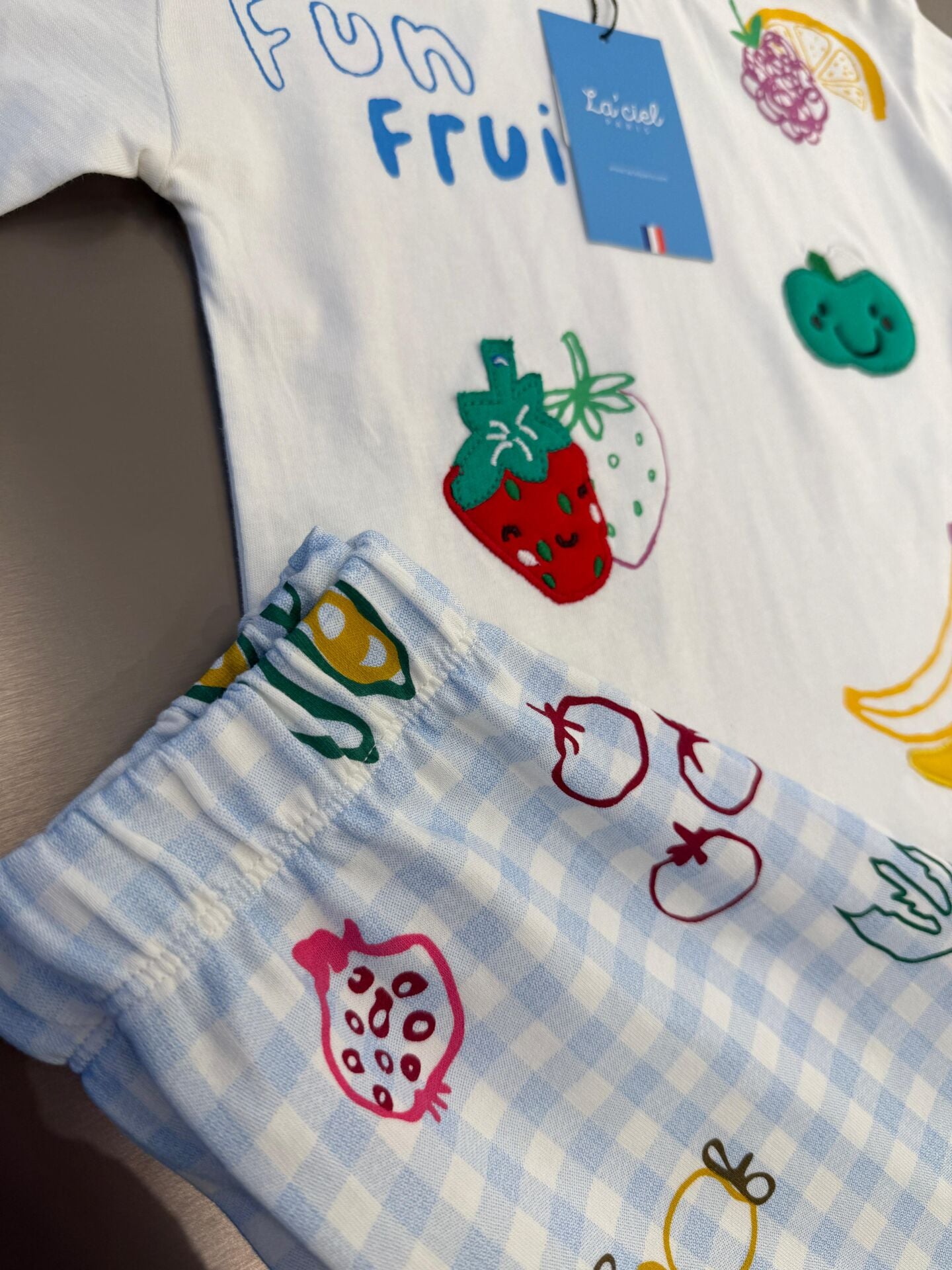 Asarkids La'ciel Paris Meyve Baskılı 2'li Takım - Mavi Beyaz