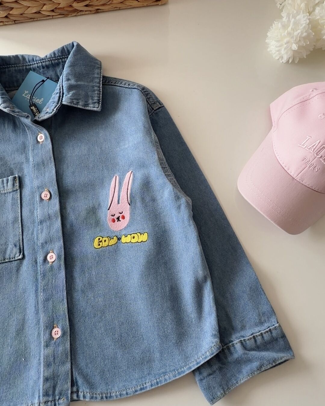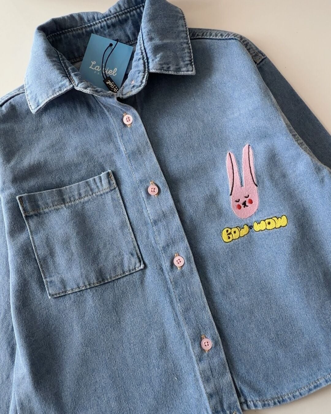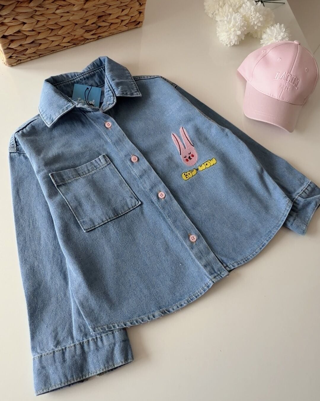 Asarkids La'ciel Paris Tavşan Nakışlı Denim Gömlek - Mavi