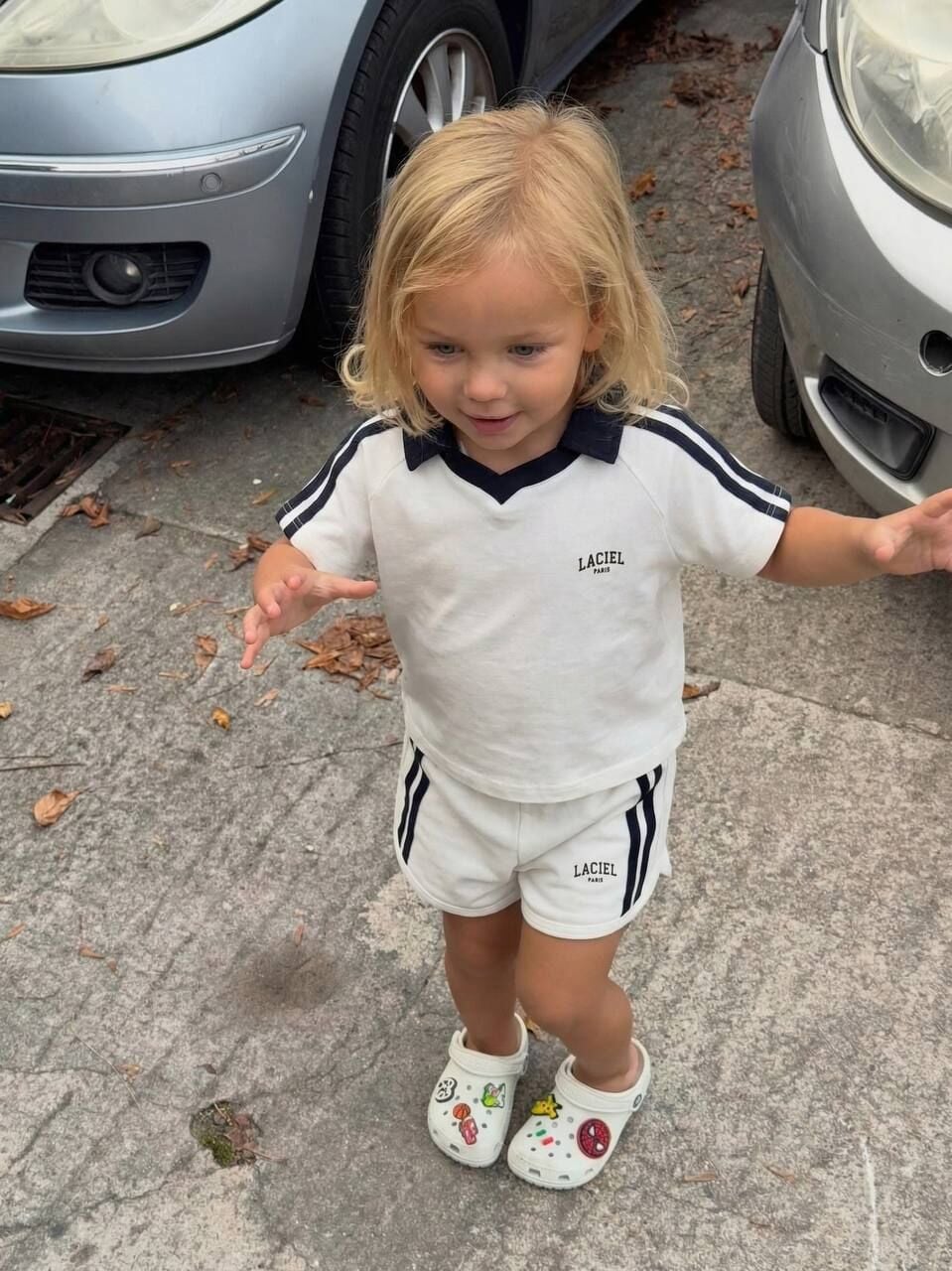 Asarkids La'ciel Paris Yakalı Şeritli Şortlu 2'li Takım - Beyaz