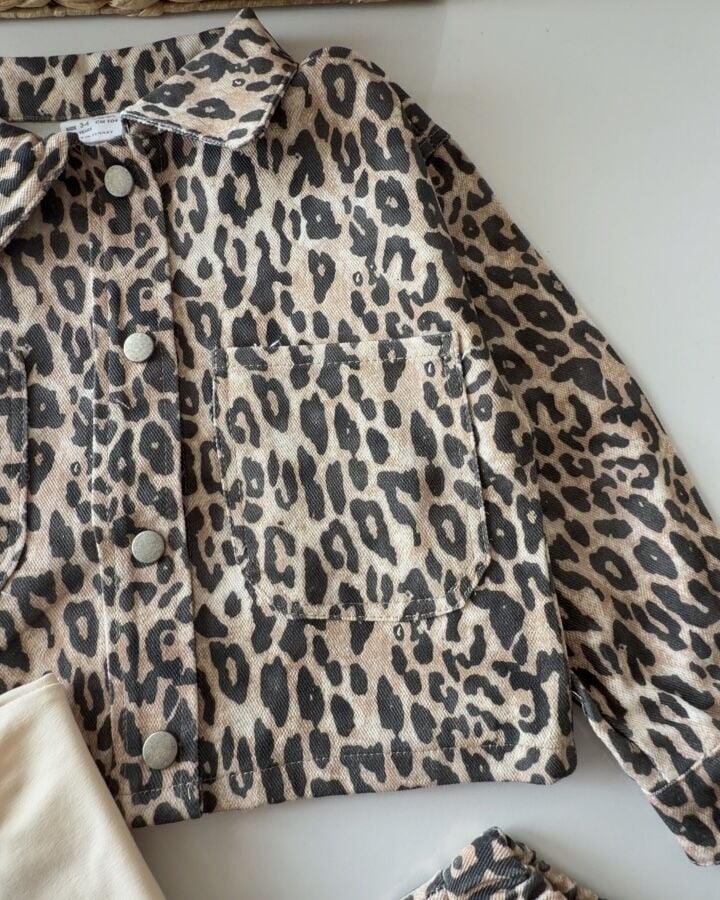 Asarkids Leopar Desenli Şort Etekli Takım - Leopar Kahve