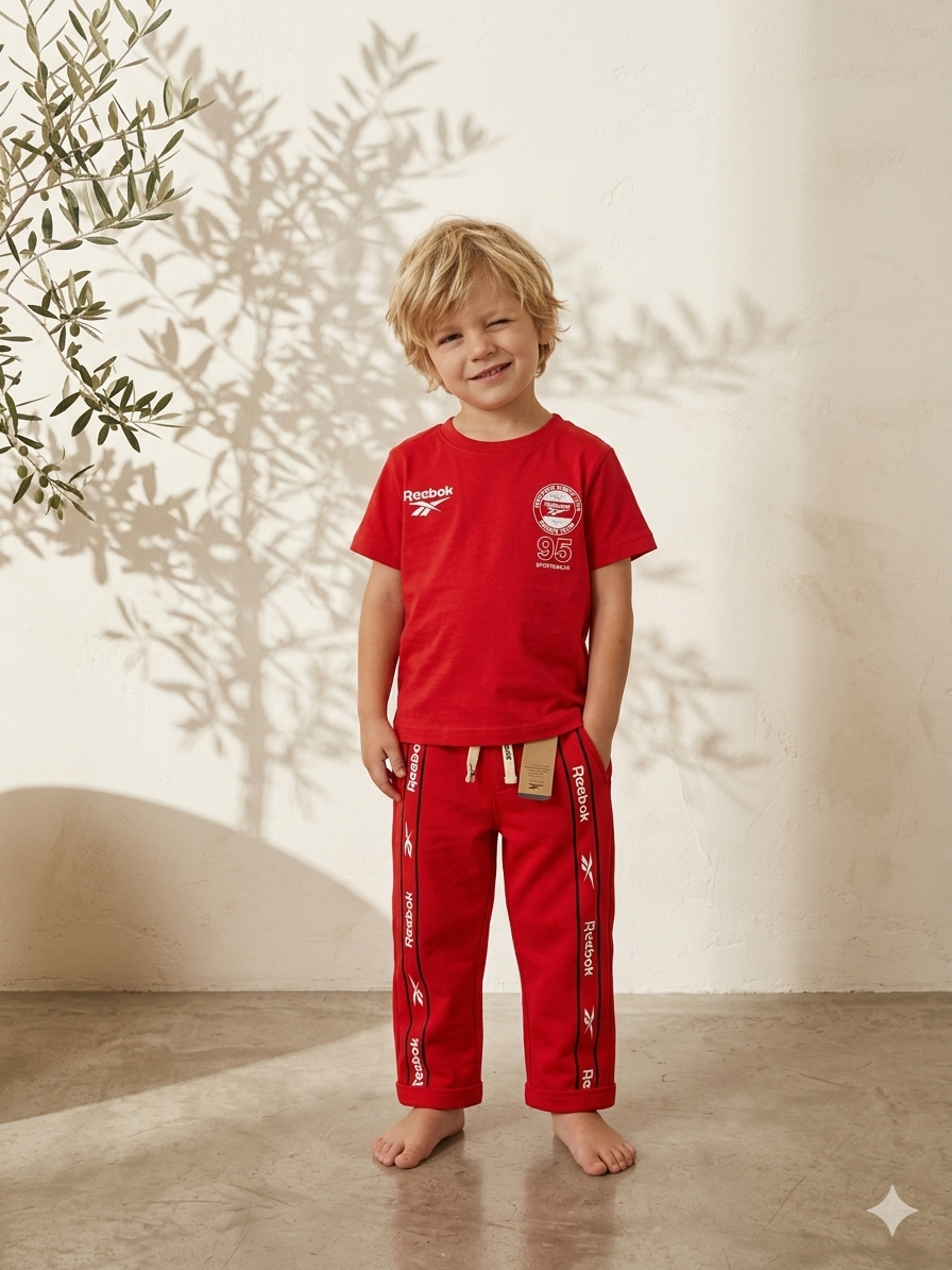 Asarkids Logolu Şeritli 2'li Eşofman Takımı - Kırmızı