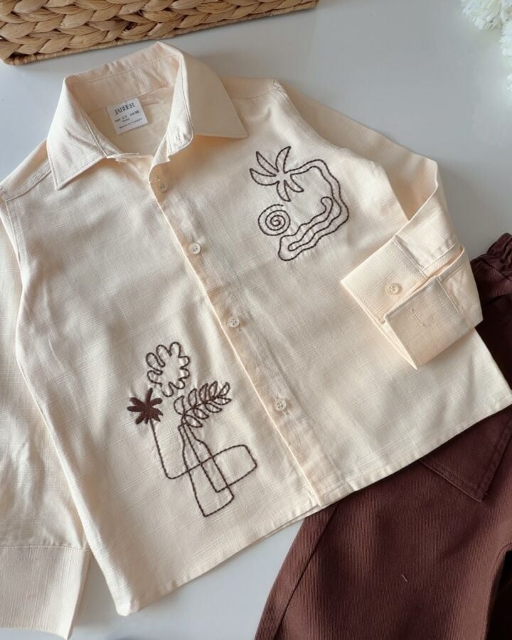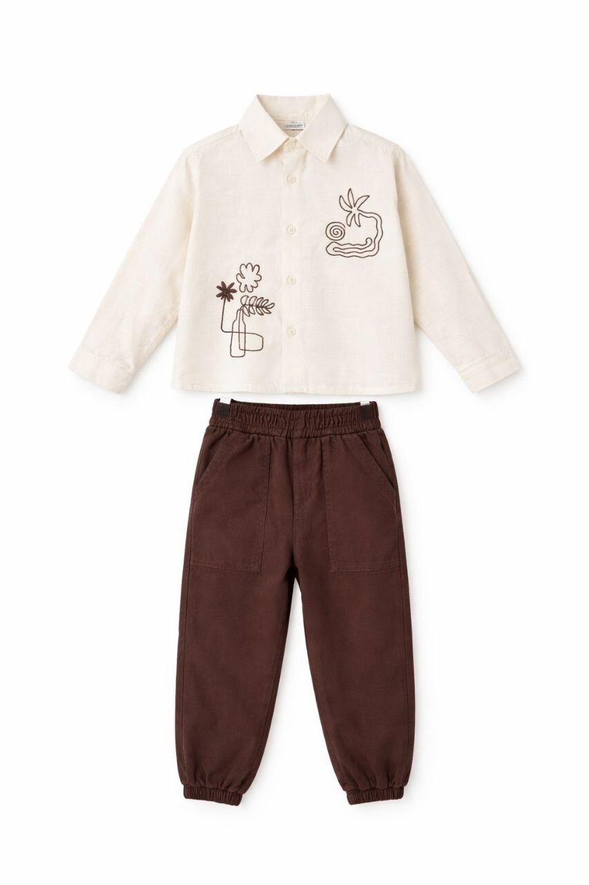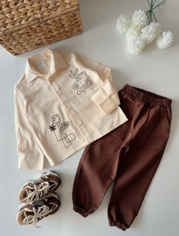Asarkids Nakış Detaylı Bohem Takım - Krem Kahve