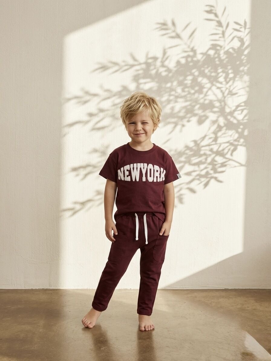 Asarkids New York Punch Nakışlı 2'li Takım - Mürdüm