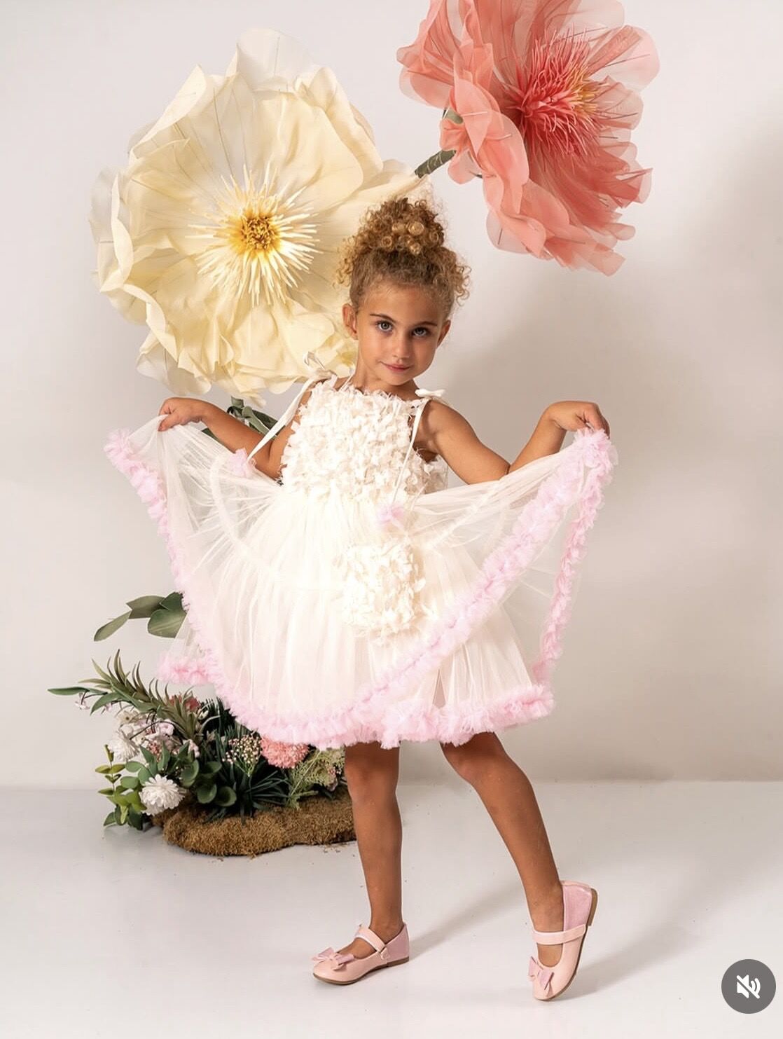 Asarkids Parçalı Çantalı Karnaval Elbise - Ekru Pembe
