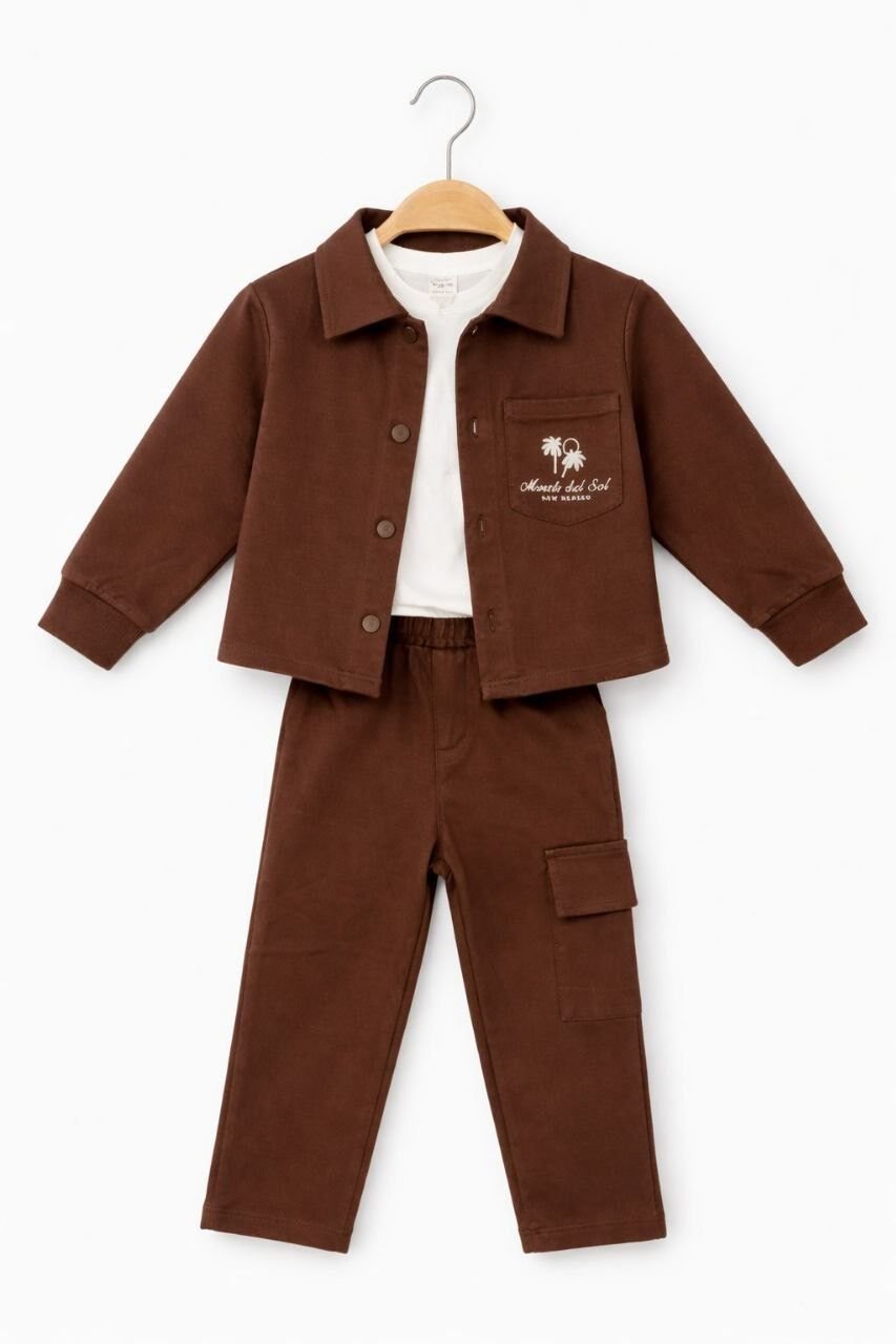 Asarkids Petek Dokulu Diagonel 3'lü Takım - Kahverengi