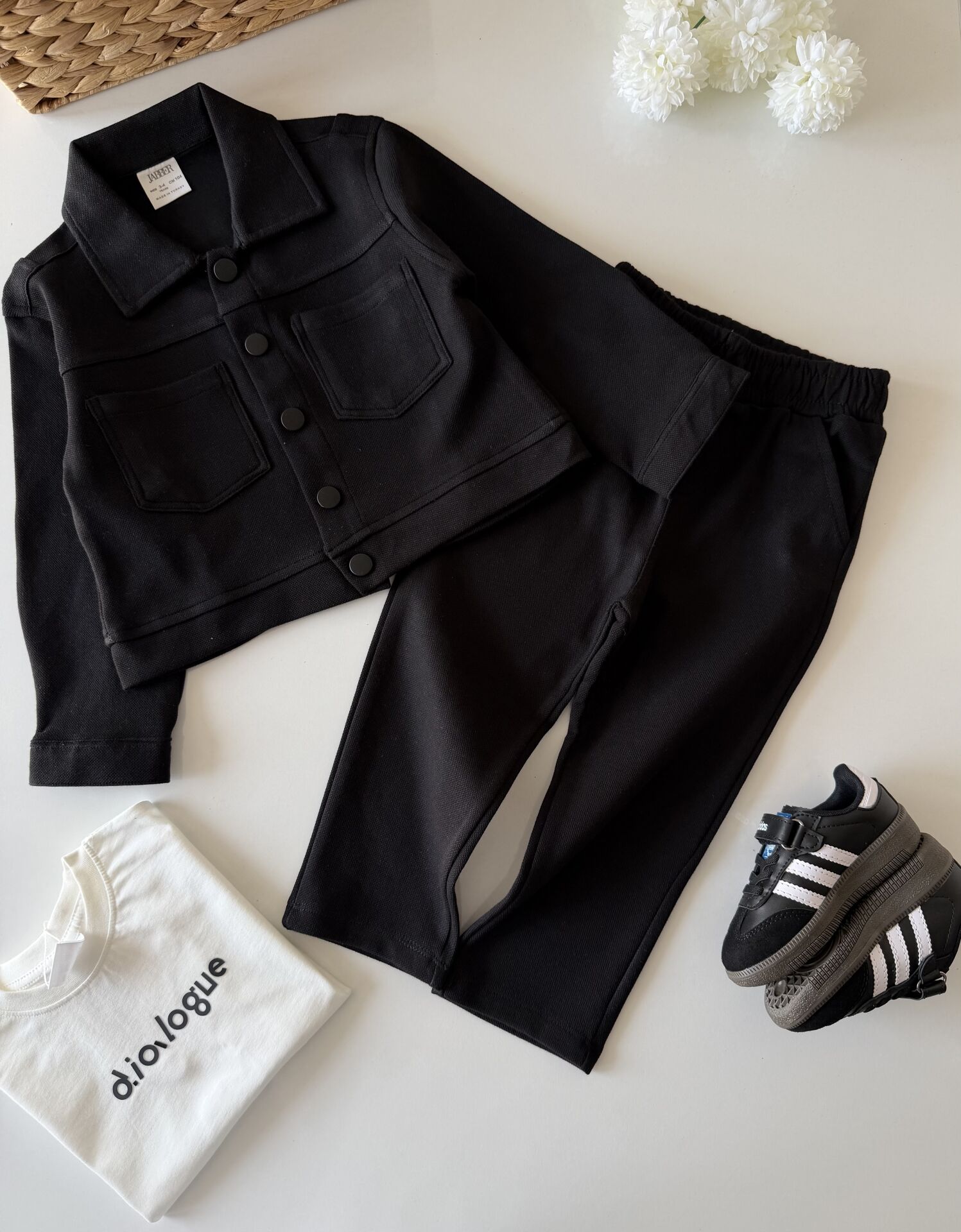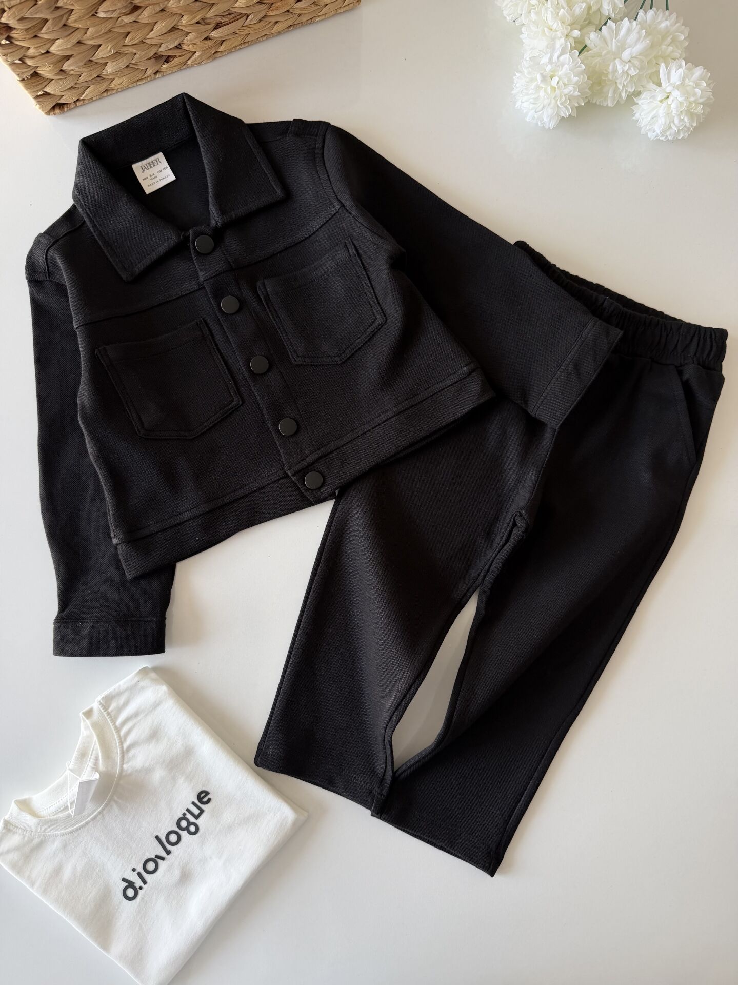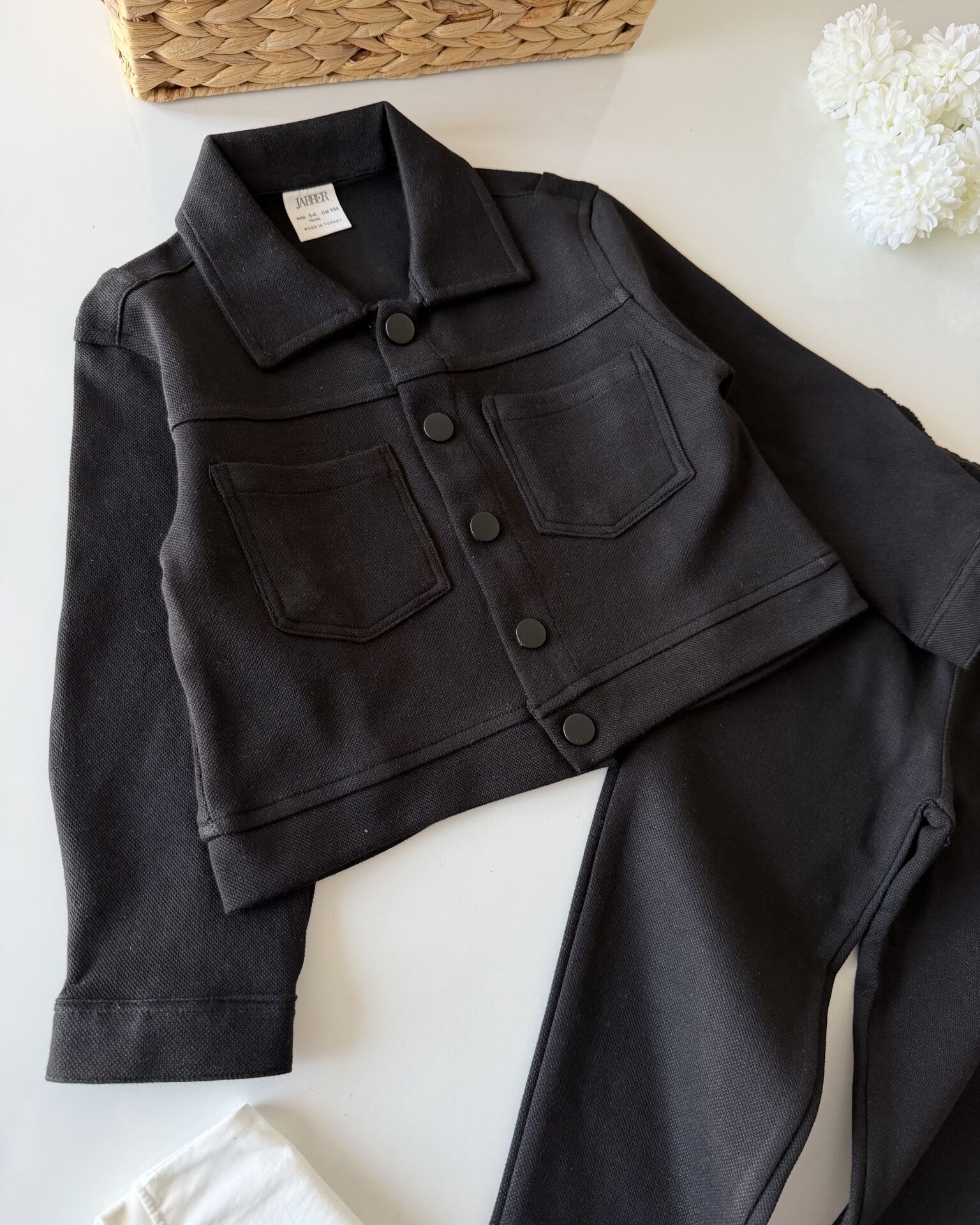 Asarkids Petekli Ceketli 3'lü Takım - Siyah