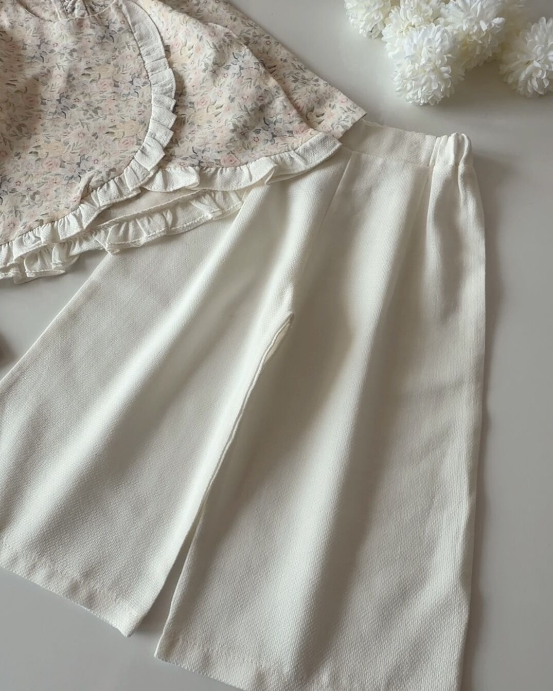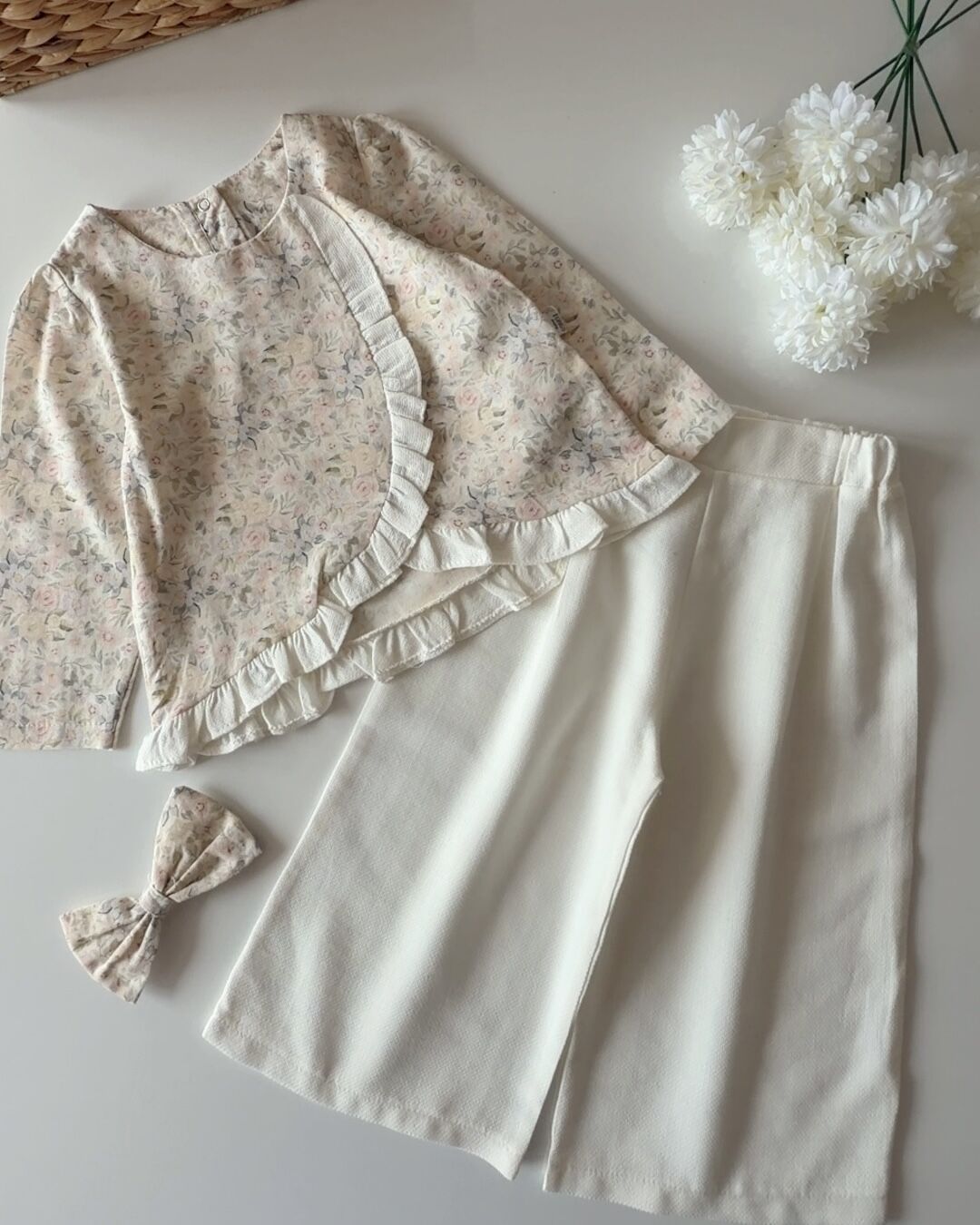 Asarkids Retro Çiçek Desenli 2'li Takım - Beyaz