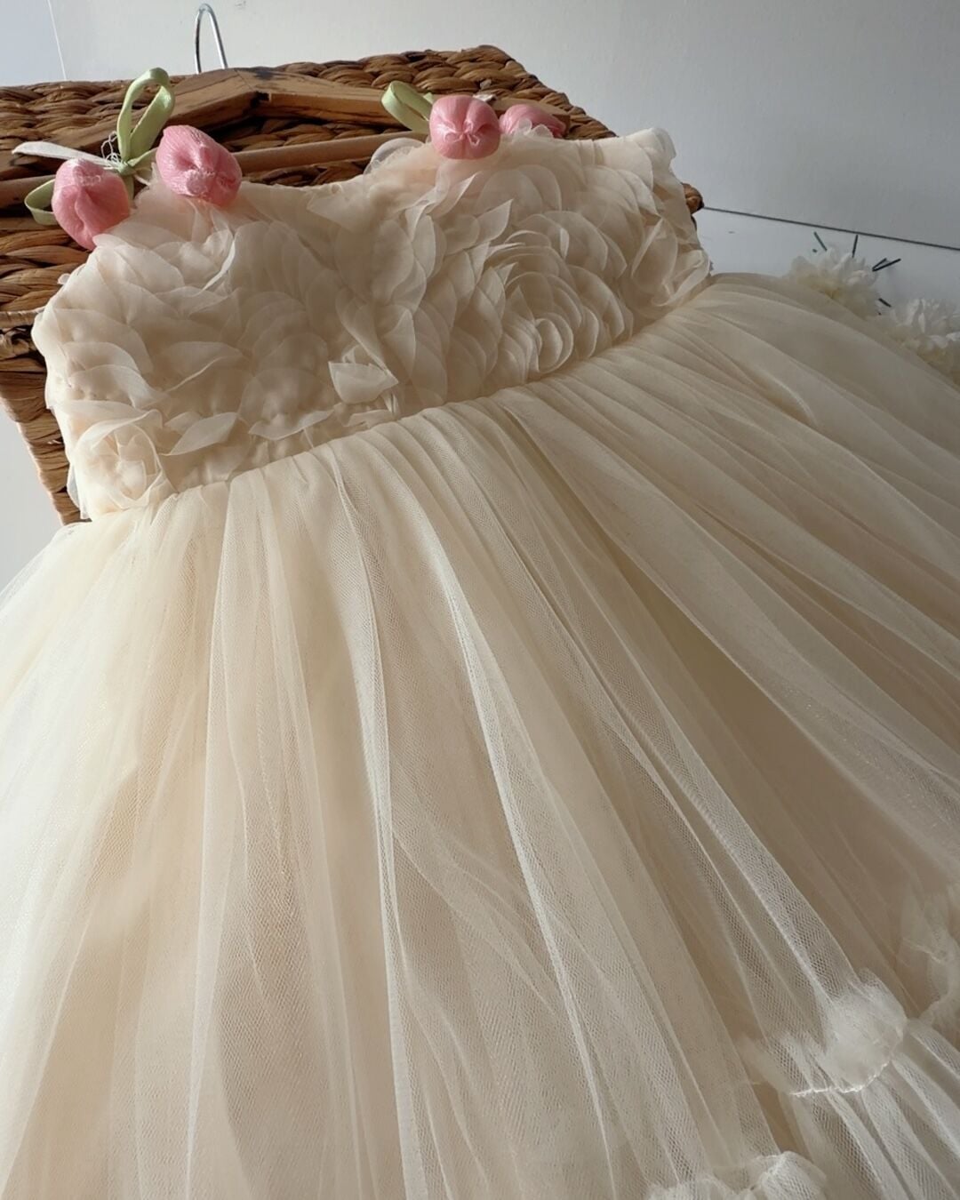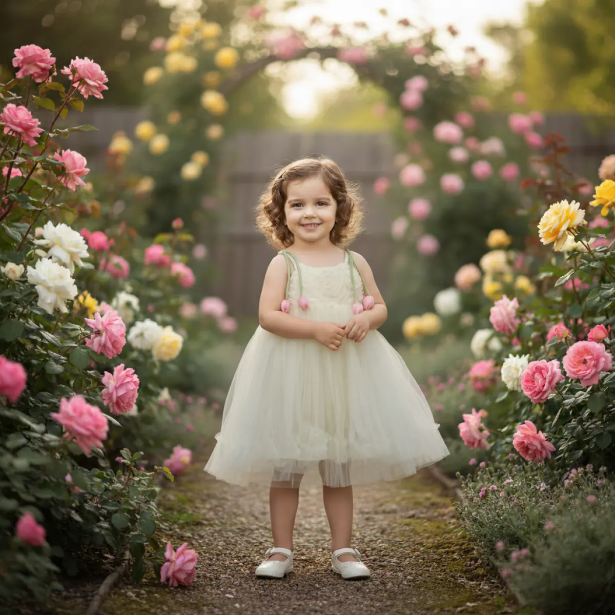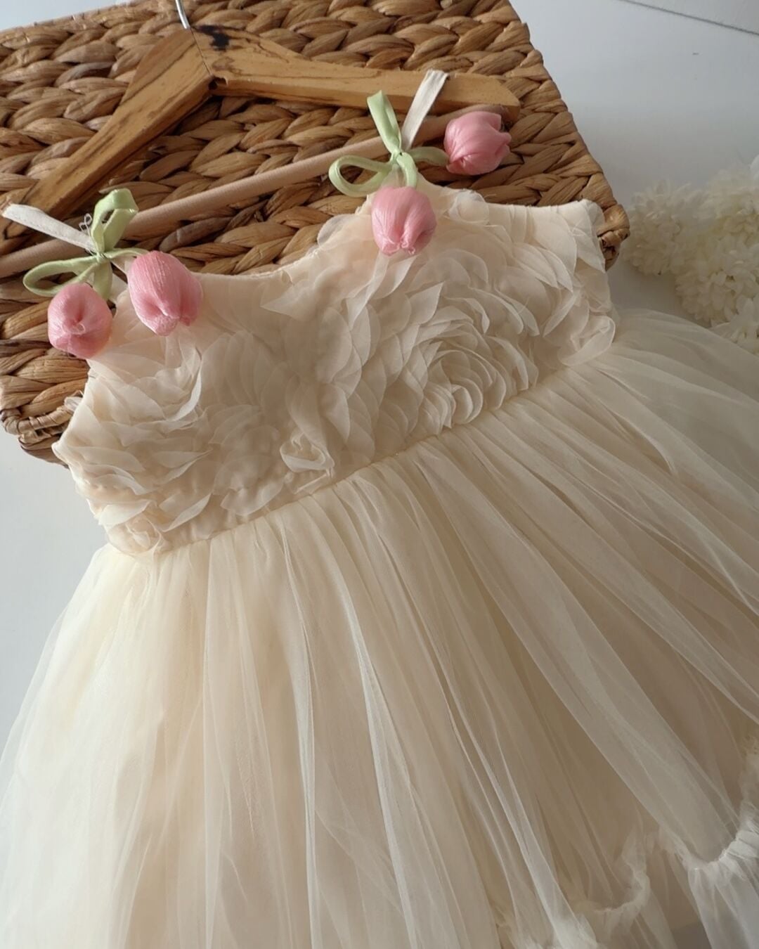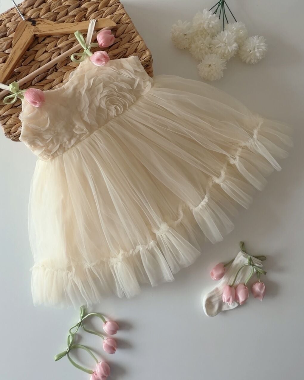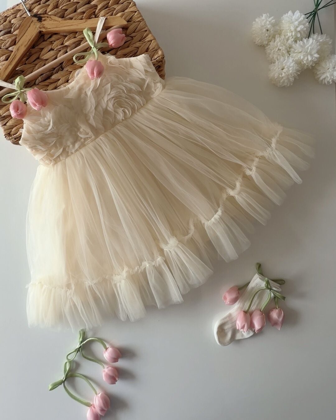Asarkids Lale Aplikeli Güllü Elbise - Ekru