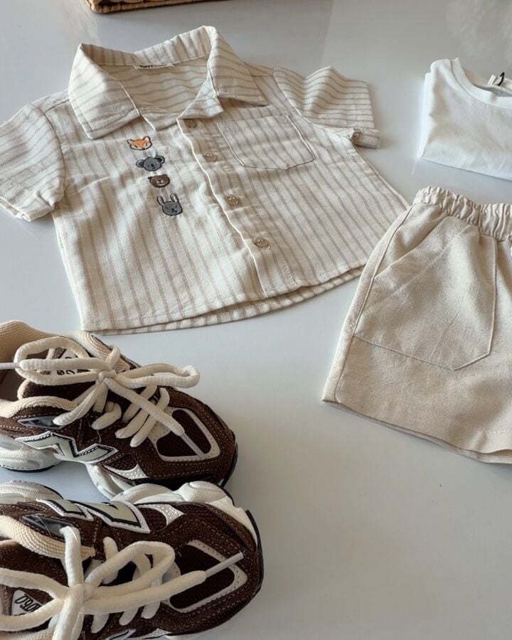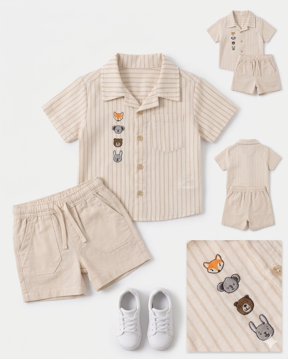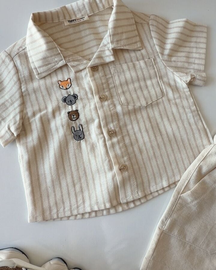 Asarkids Sevimli Tilki Nakışlı Erkek Bebek 3'lü Set - Krem