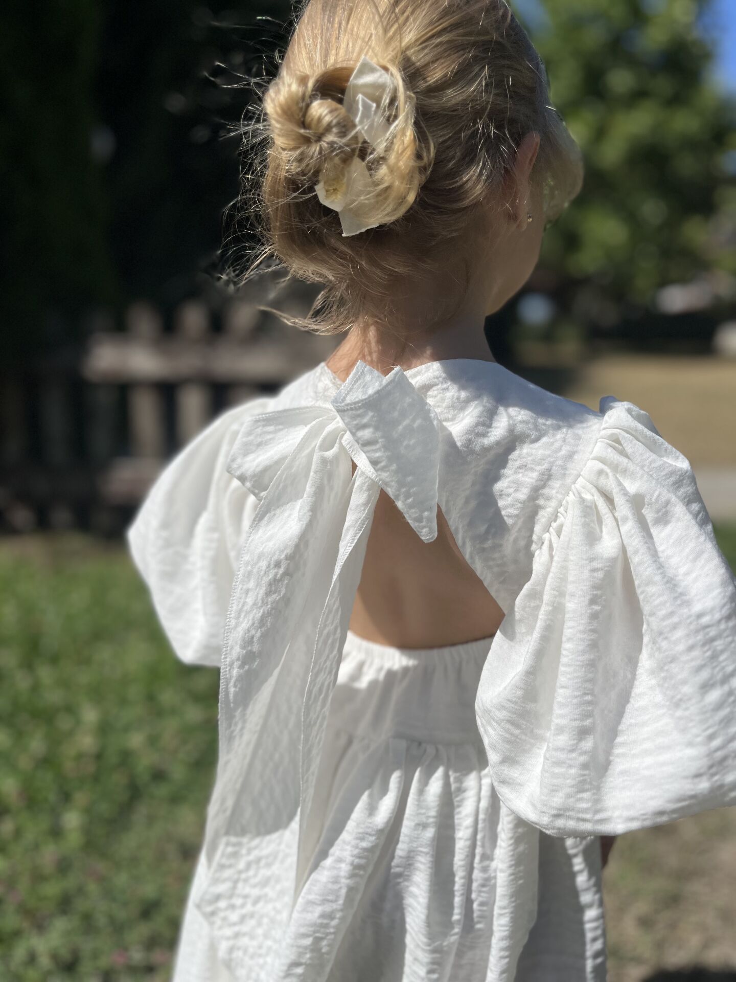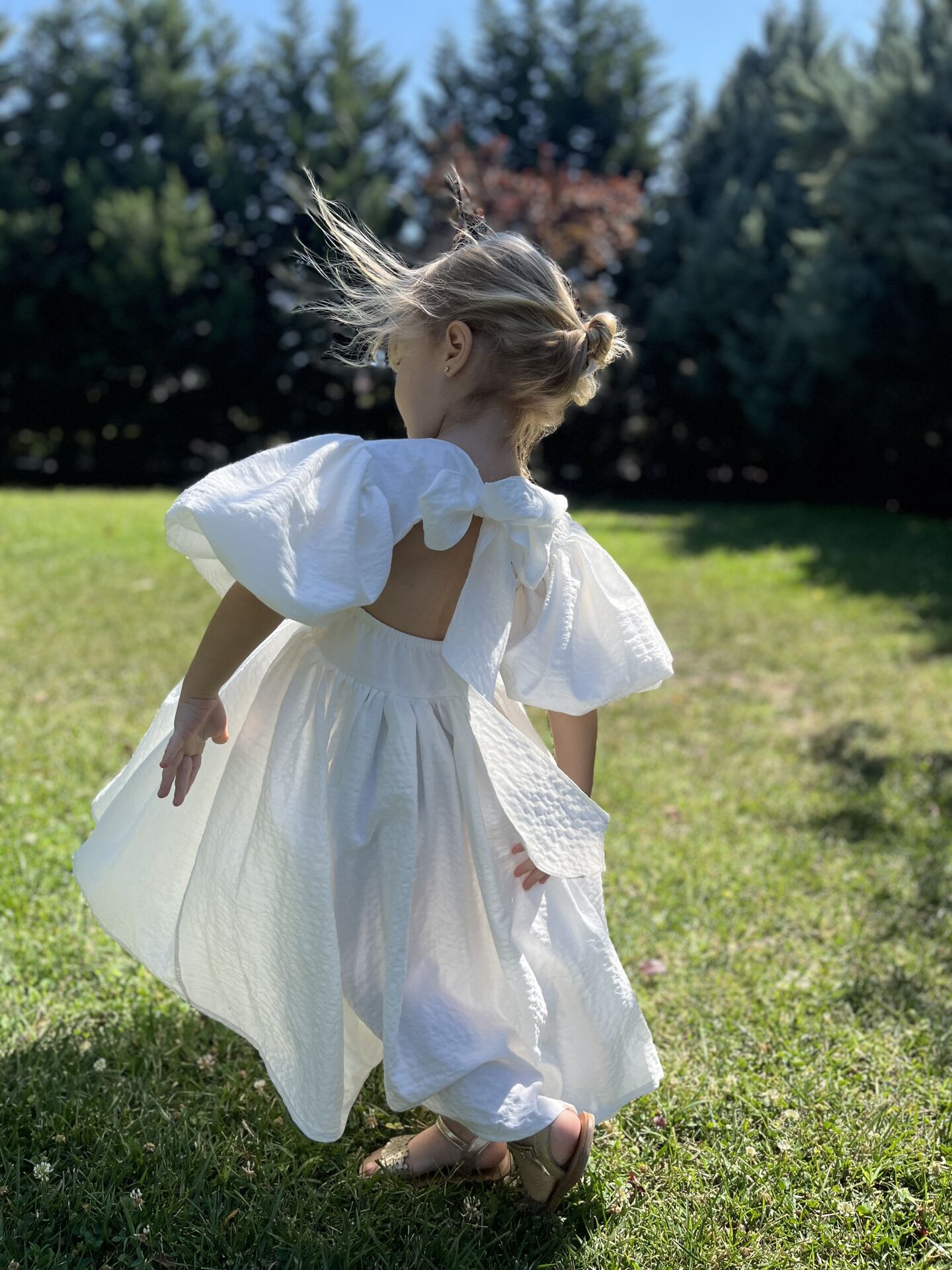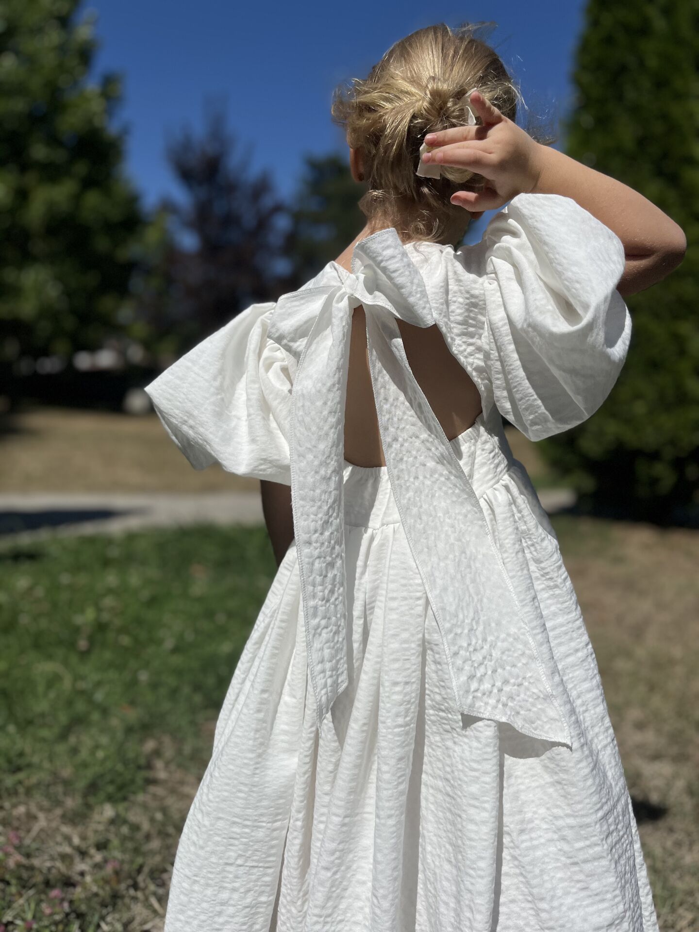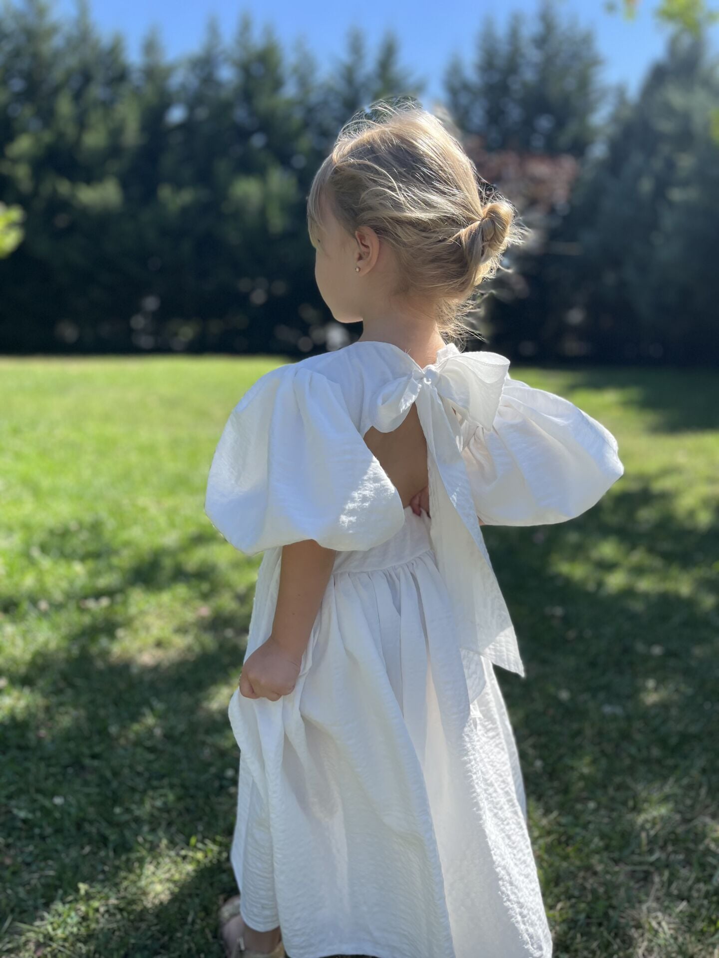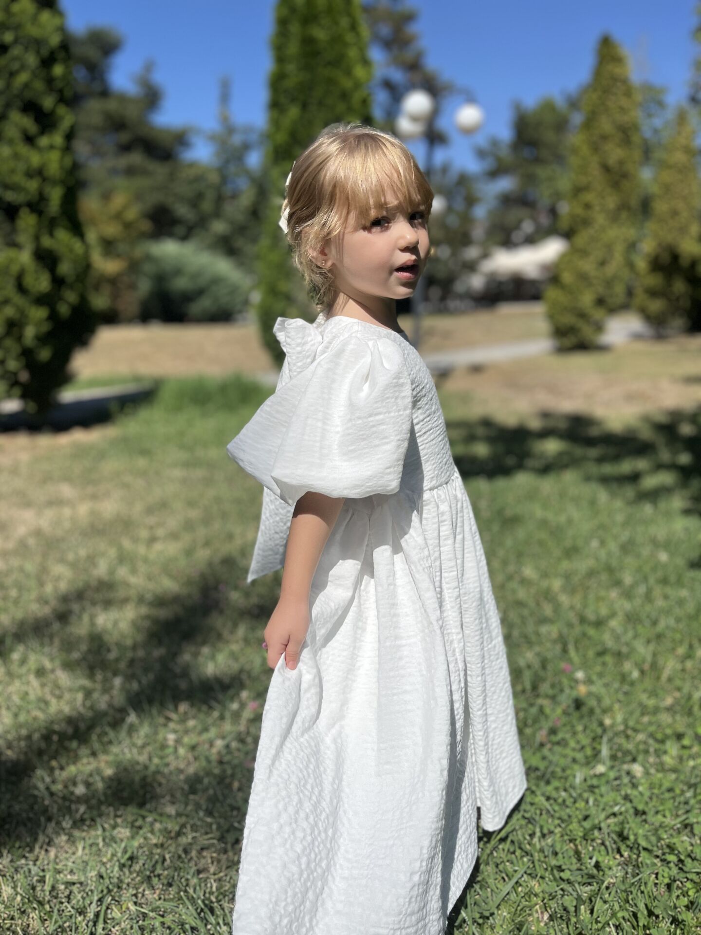 Asarkids Sırttan Fiyonk Bağlamalı Gofre Elbise - Beyaz